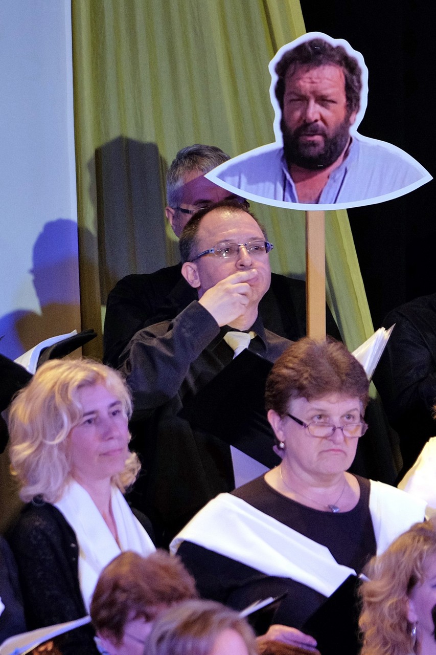 Az izgalmas és minden pillanatban fülbemászó megszólalás az est karnagyának, Perlaki Attilának volt köszönhető, aki a gyulai Erkel Ferenc Vegyes Kart 2003-tól, a Békéscsabai Bartók Béla Vegyes Kart pedig 2006-tól kiemelkedő, színvonalas szakmai munkával vezeti. Ő álmodta meg ezt a szép programot, mint ahogyan a zenekari kíséret kottáit is ő készítette el, és a műveket a két kórusnak szintén ő tanította be.