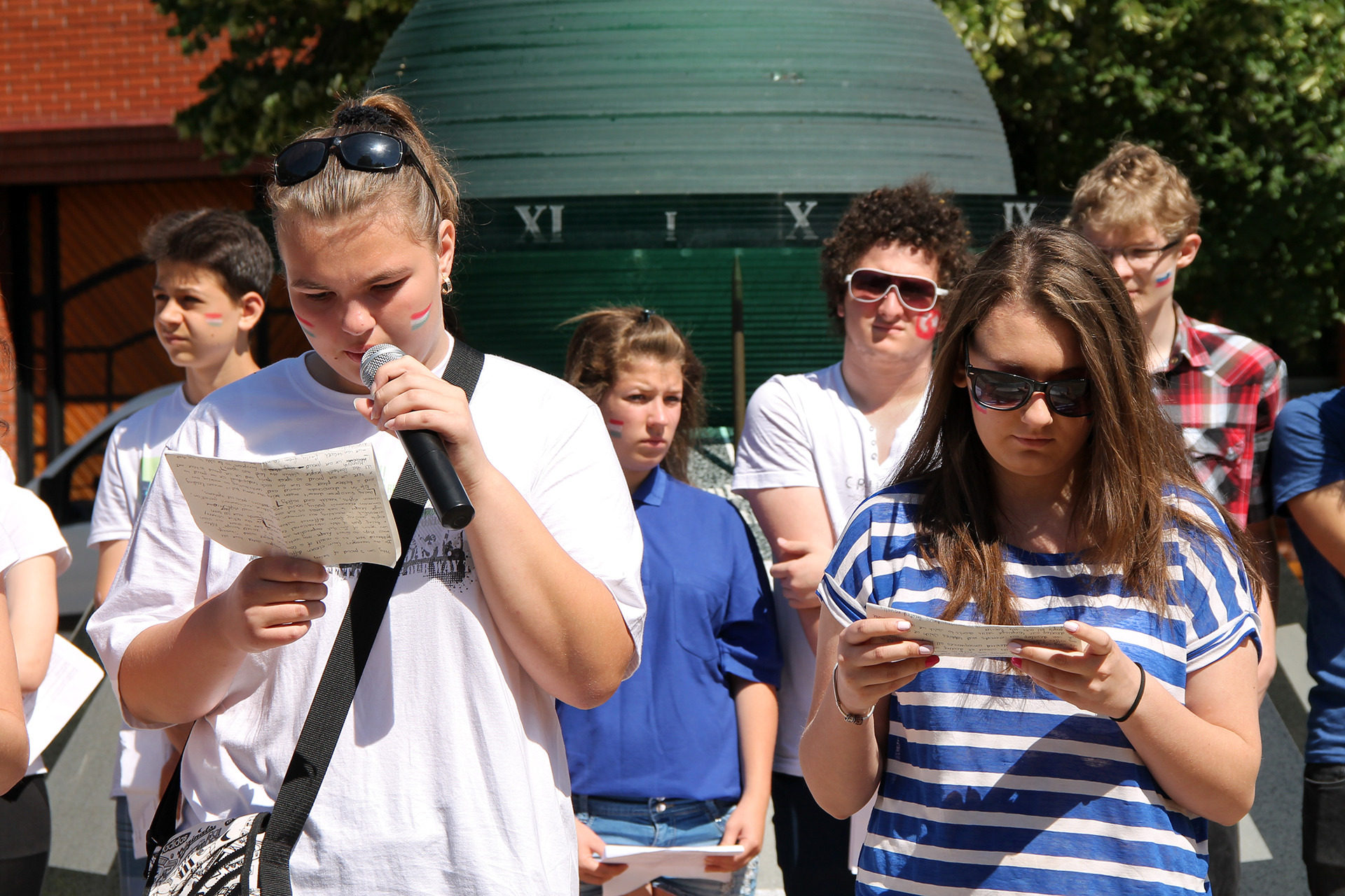 Tizenegy nemzet ifjúi vették birtokba a gyulai Világóra környékét június 5-én, a Comenius-program zárótalálkozóján. A két éves nemzetközi projekt keretében május 31. és június 5. között a Gyulai Dürer Albert Általános Iskola Bay Zoltán Általános Iskola Tagintézménye látta vendégül a külföldi diákokat és pedagógusokat. A Comenius-program utolsó akkordjaként a fiatalok látványos műsort mutattak be a sétáló utcán összegyűlt nézősereg számára.
