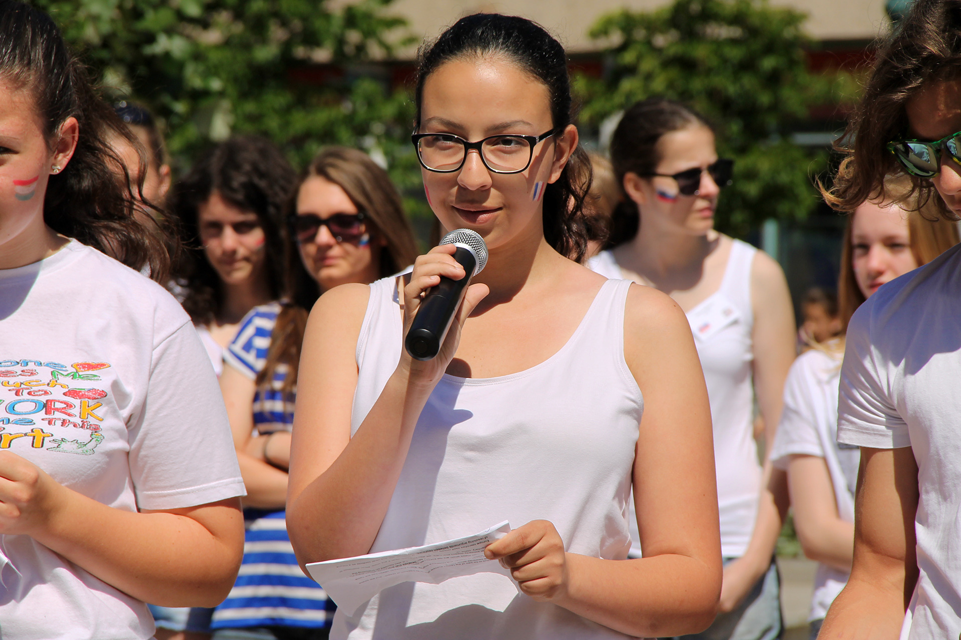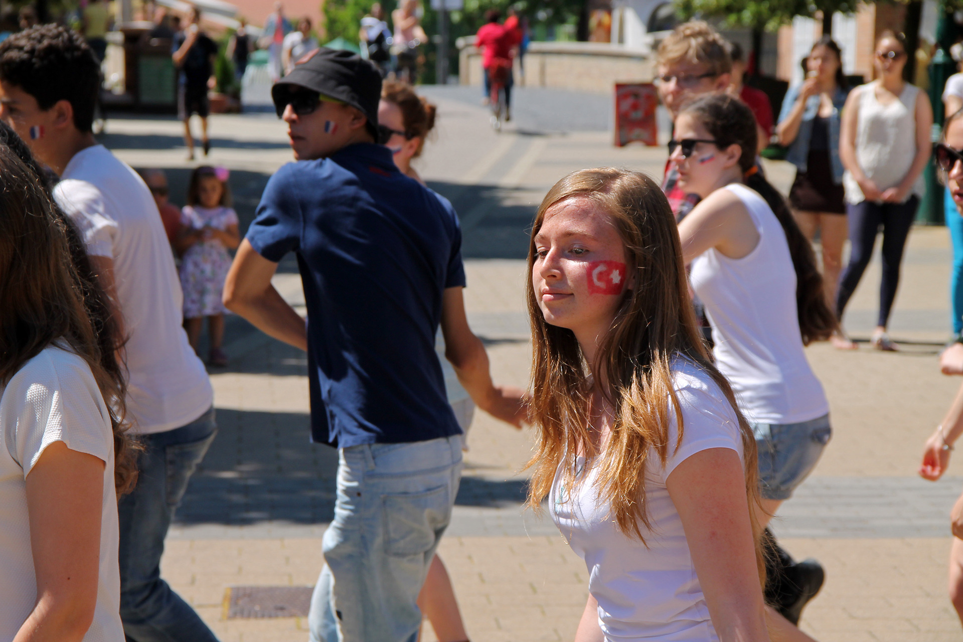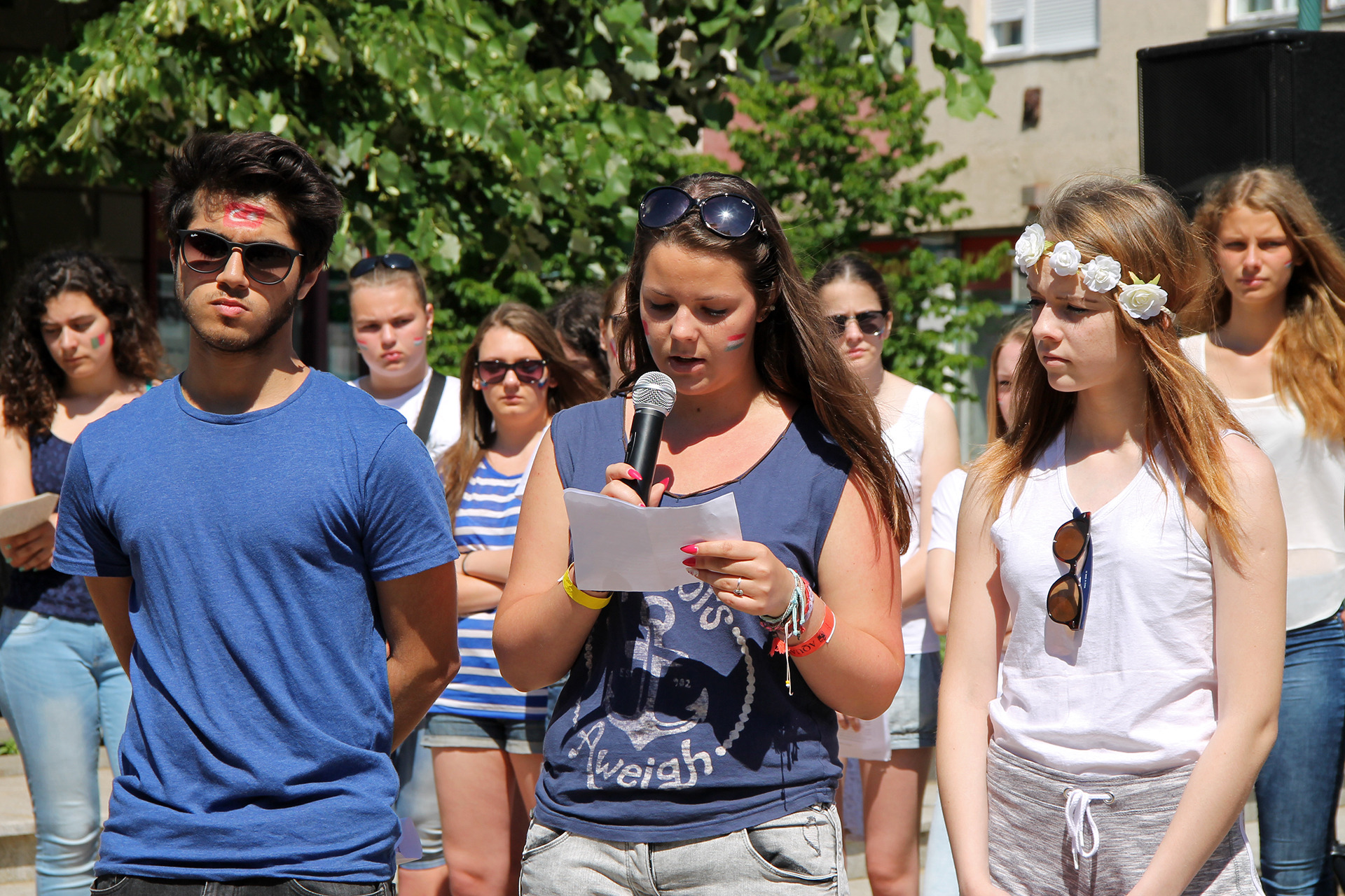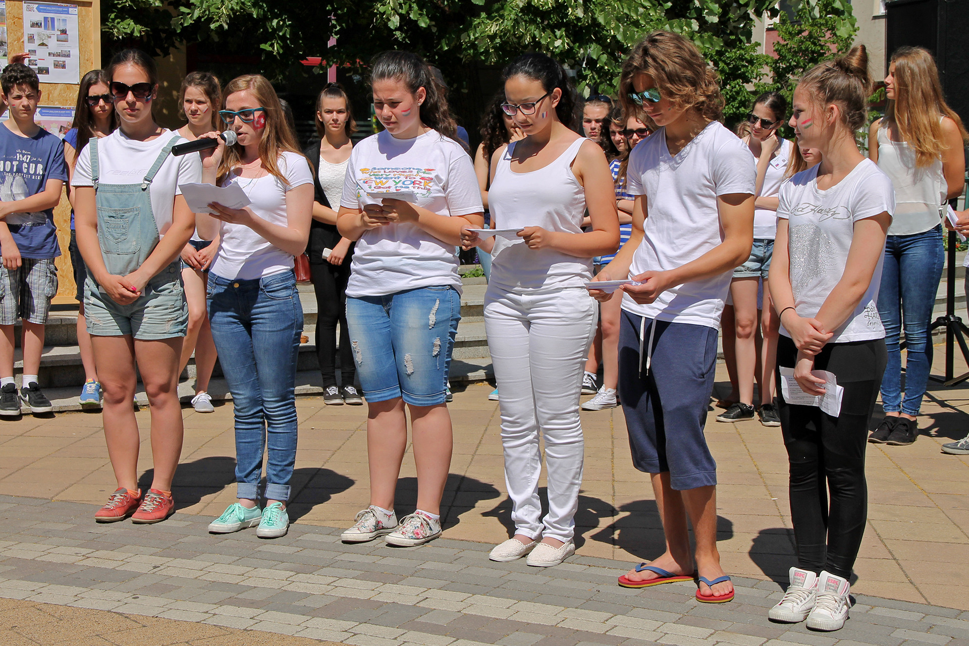 A produkció első felében az ifjak angol nyelven osztották meg gondolataikat, mely során az elmúlt két esztendőben végzett munkáról, a projektről és az európaiságról is beszéltek. A diákok mögött felállított paravánokon, valamint a beszédek után szétosztott szórólapokon ugyancsak erről olvashattunk. A performance és a projekt megkoronázásaként a diákok flashmobbal pörgették fel a hangulatot. Az attrakció végére, úgy ahogyan kell, minden fiatal táncra perdült.