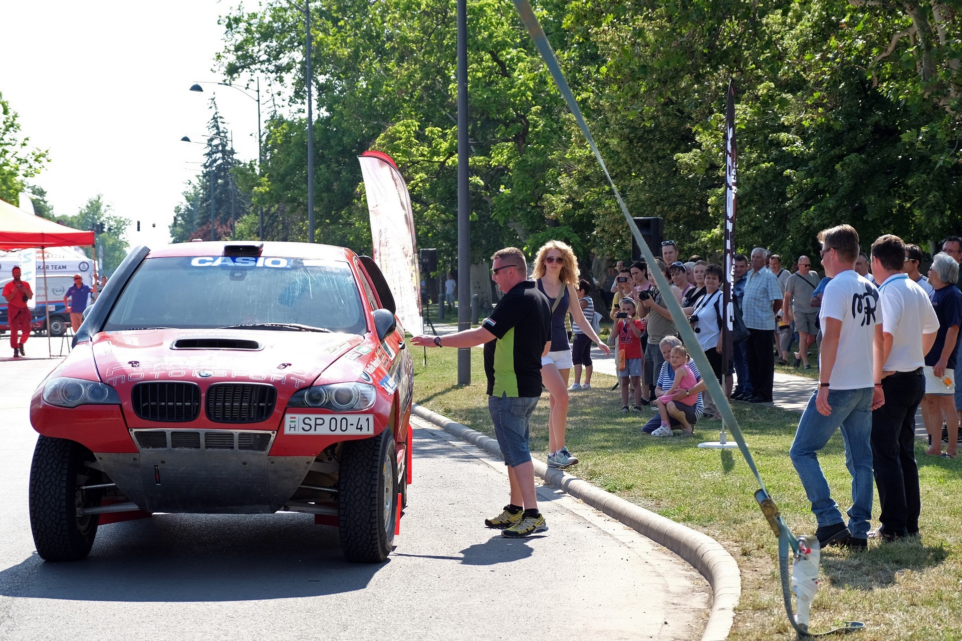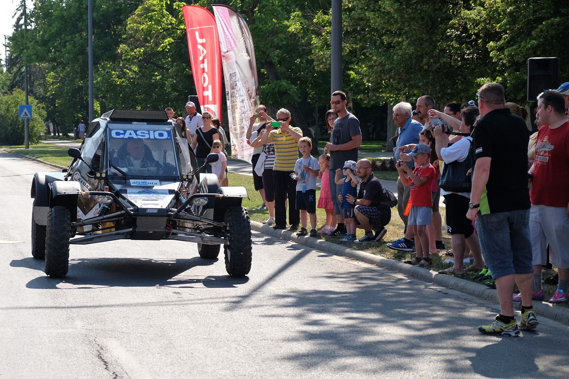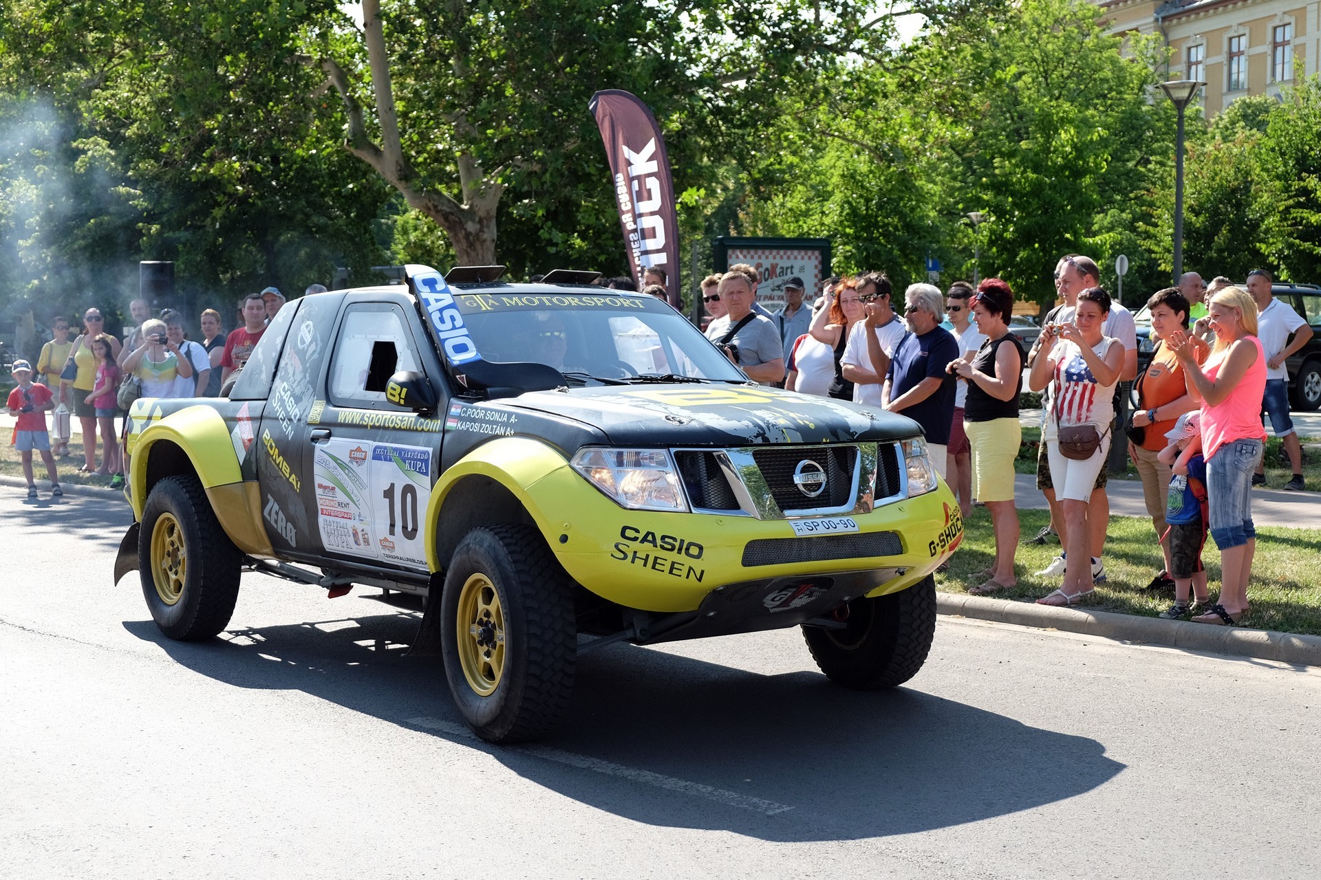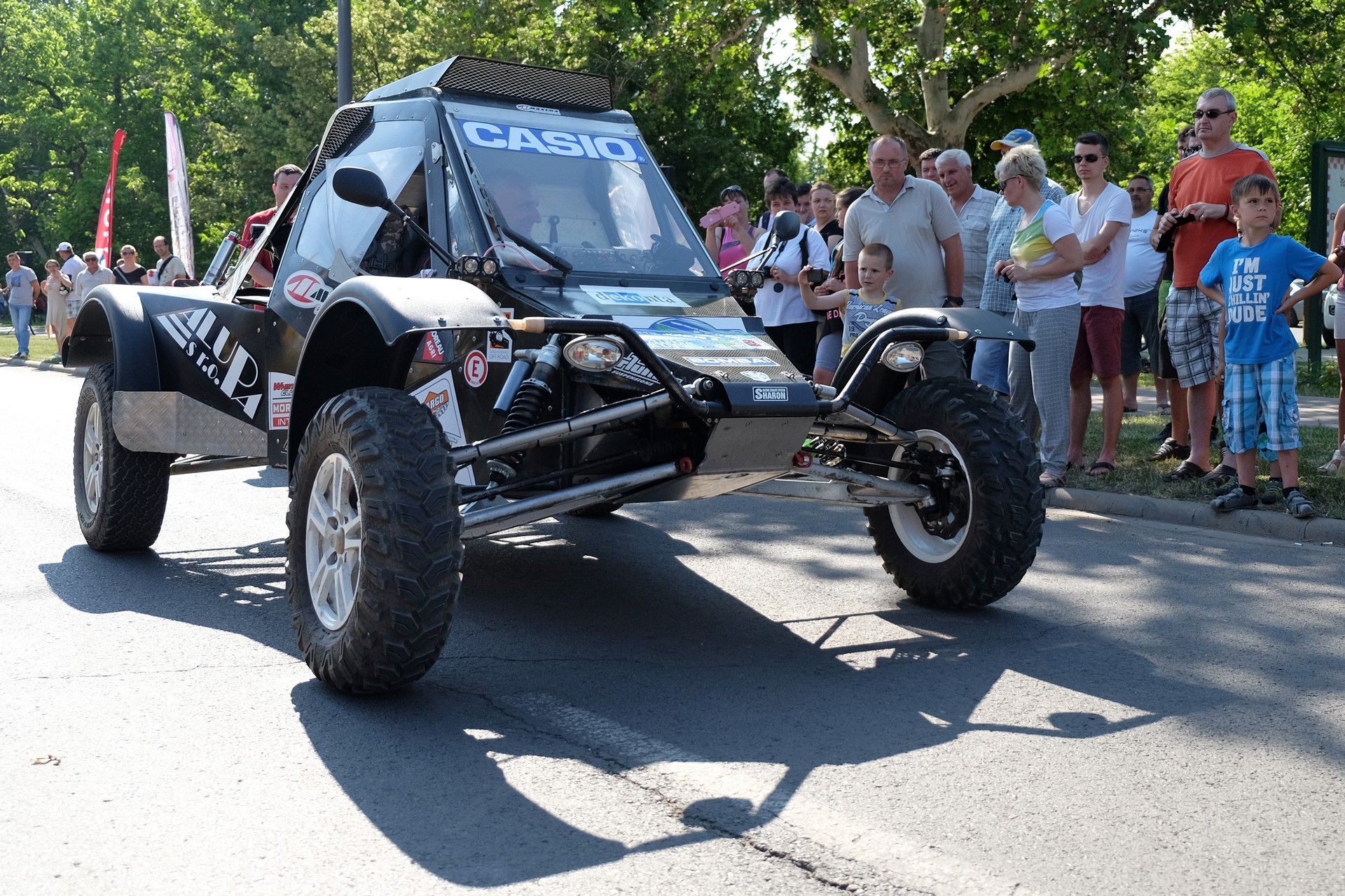A Toyota Hilux Overdrive fedélzetén Fekete Antalt és Tóth Györgyöt, a 2014. év magyar bajnokpárosát köszönthették a nézők. A címvédők után nem sokkal Szalay Balázs, az Opel Dakar Team pilótája "röffent" a rajthoz, aki az elmúlt években már hazánkban csakis a gyulai futamokon szántotta a pályákat. A versenyző ezúttal egy helyi navigátorral Vörös Ferenccel az oldalán indul a megmérettetésen, az pedig hamarosan kiderül, hogy sikerül-e előnyt kovácsolnia gyulai társa helyismeretéből.