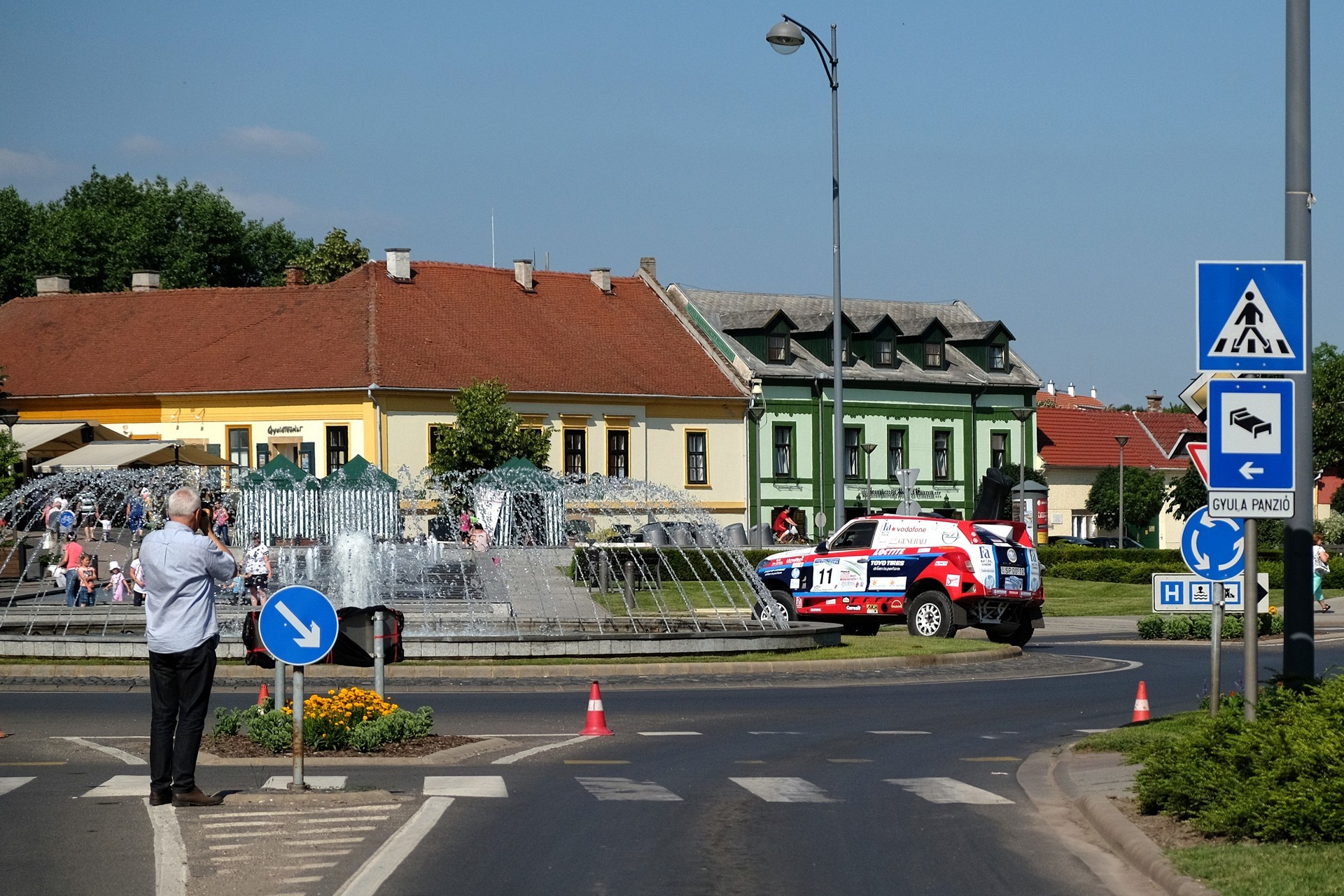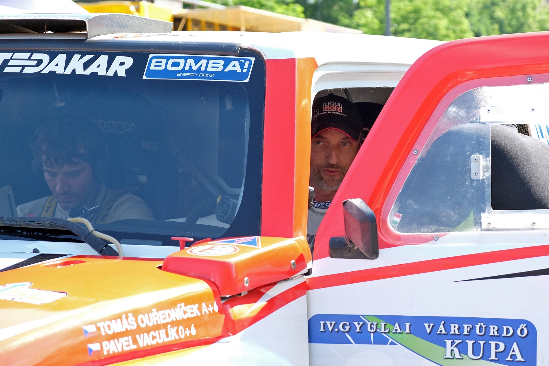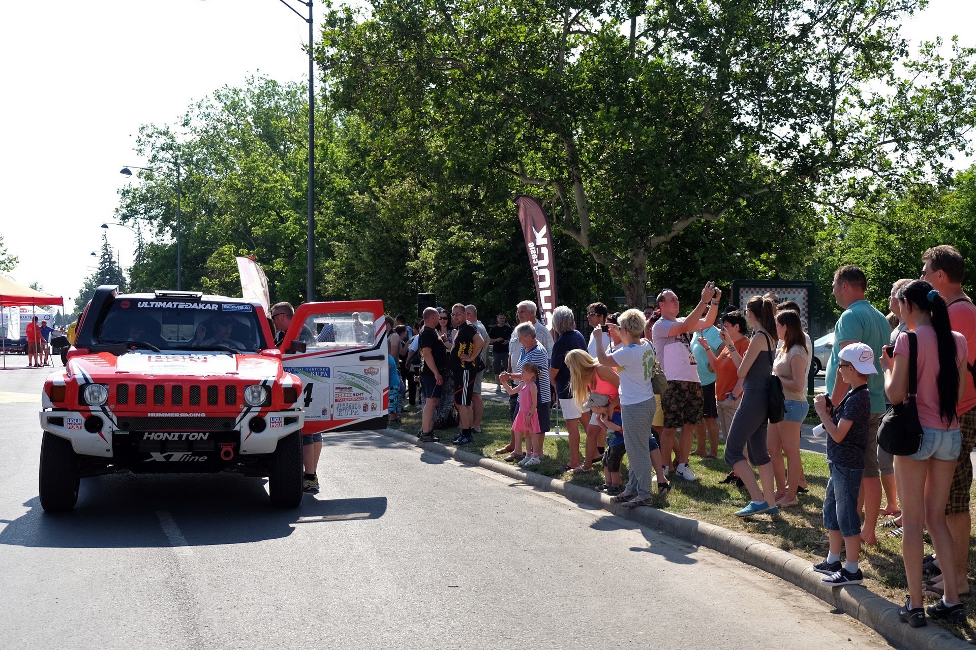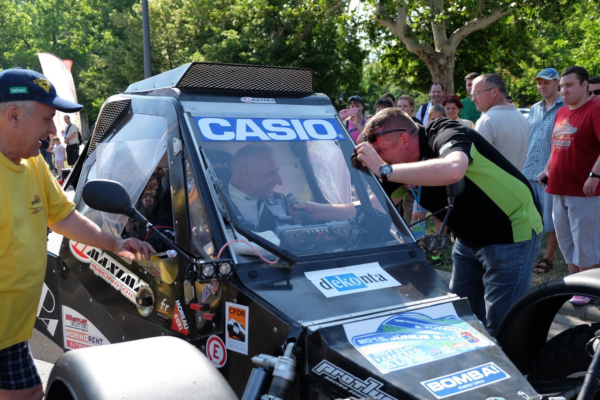 A Toyota Hilux Overdrive fedélzetén Fekete Antalt és Tóth Györgyöt, a 2014. év magyar bajnokpárosát köszönthették a nézők. A címvédők után nem sokkal Szalay Balázs, az Opel Dakar Team pilótája "röffent" a rajthoz, aki az elmúlt években már hazánkban csakis a gyulai futamokon szántotta a pályákat. A versenyző ezúttal egy helyi navigátorral Vörös Ferenccel az oldalán indul a megmérettetésen, az pedig hamarosan kiderül, hogy sikerül-e előnyt kovácsolnia gyulai társa helyismeretéből.