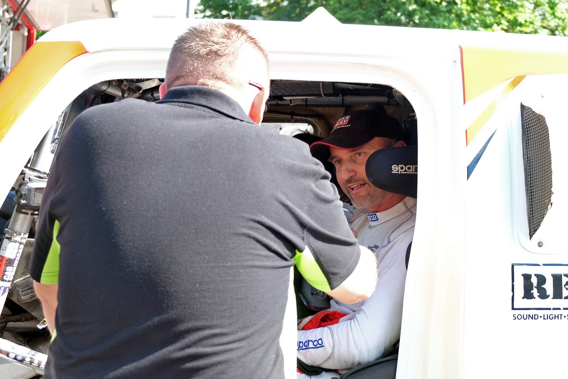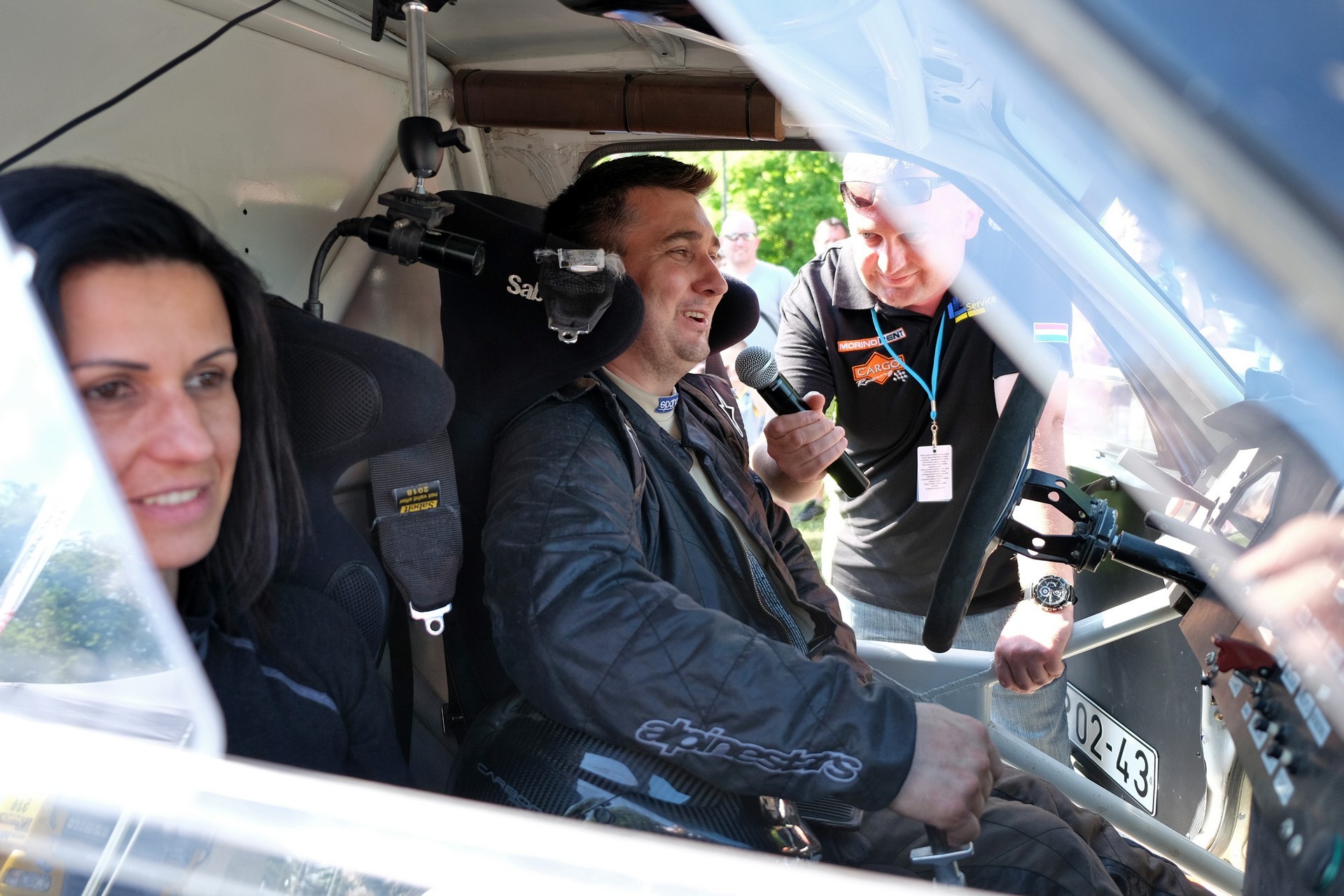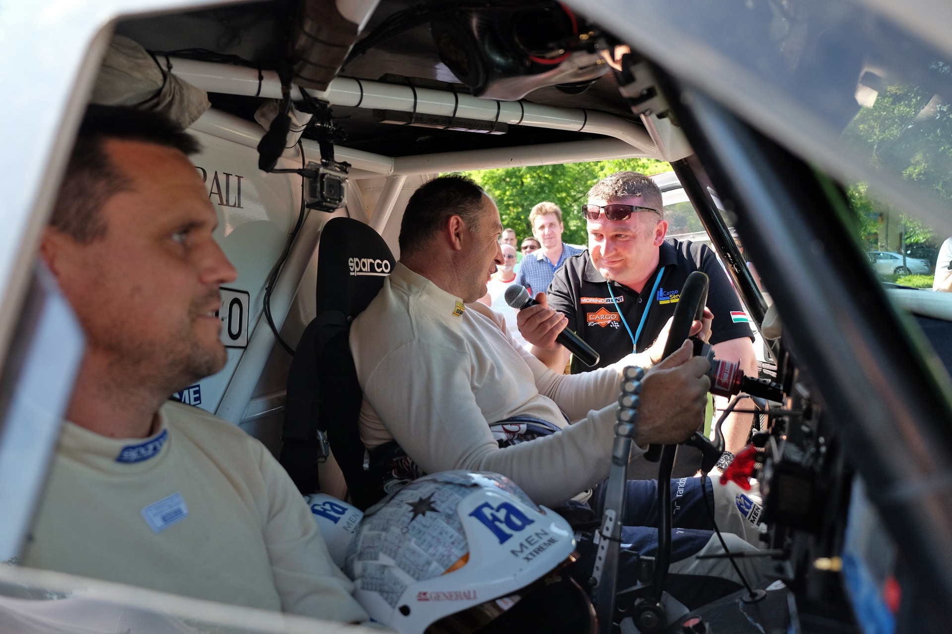 A nyitóceremónia alatt Mészáros Sándor sajtófőnök igyekezett szóra bírni a rajthoz guruló autócsodák pilótáit. Elsők között 2011 és 2012 magyar bajnoka, Fazekas Károly és navigátora, Szenáki László érkezett a starthoz, akik egy bivalyerős X6-os BMW-el vágnak neki a viharsarki pusztaságnak. Balatonfüred száguldó nagykövete tavaly mártózással zárta a futamot, ám idén a győzelemért hajtanak.