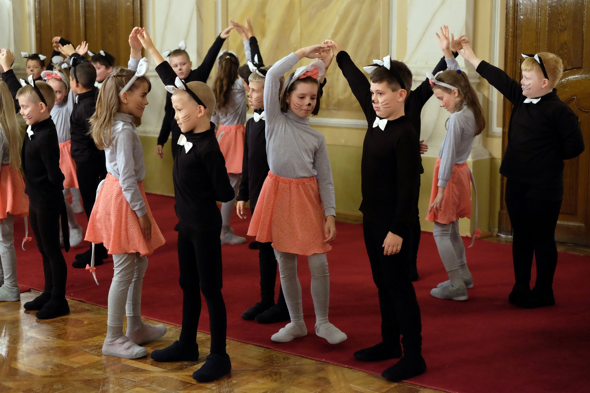 A Karácsonyi János Katolikus Általános Iskola énekkara a Barátság dal című saját szerzeményével és a Nézz most rám című keresztény ifjúsági énekkel lepte meg az ünneplőket. Kedves műsoruk után a Dürer Albert Általános Iskola 2.a osztályos tanulói következtek, akik a Macskák és egerek táncát járták el.