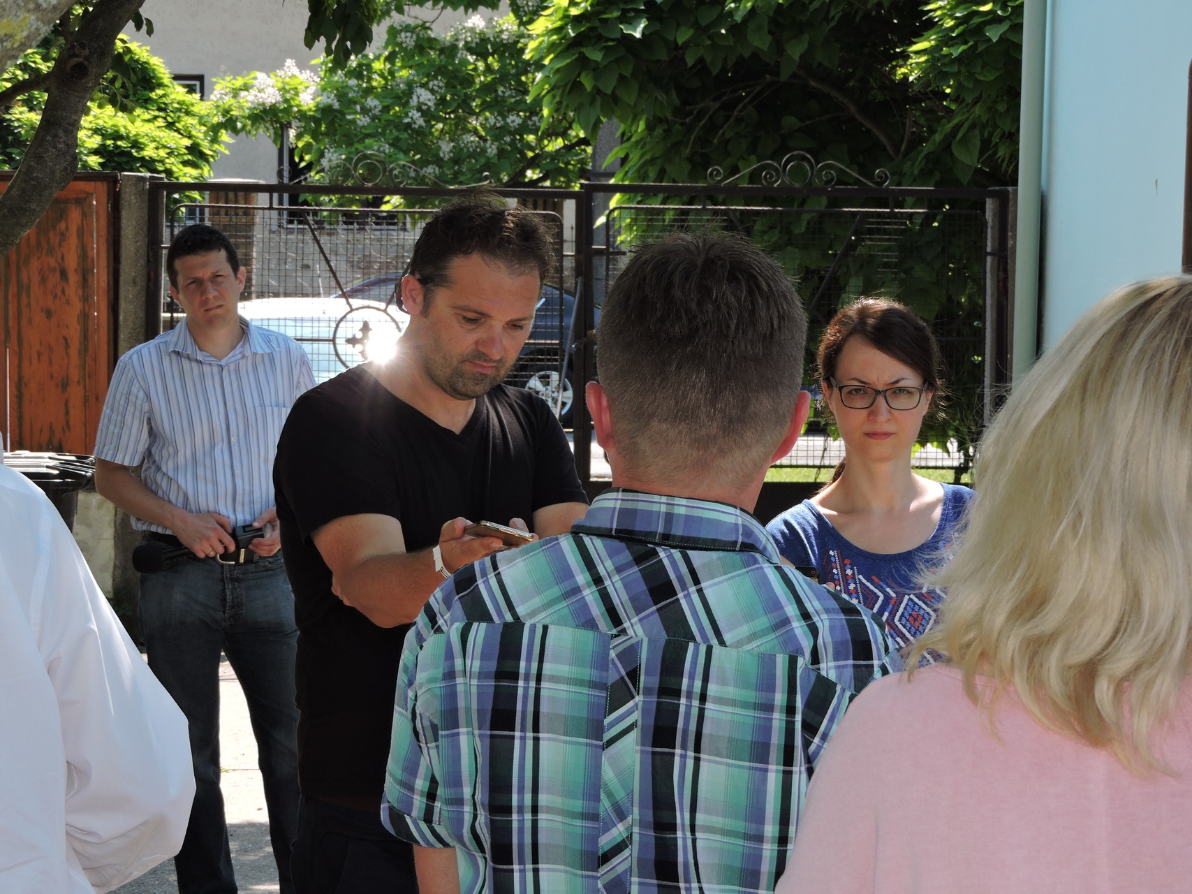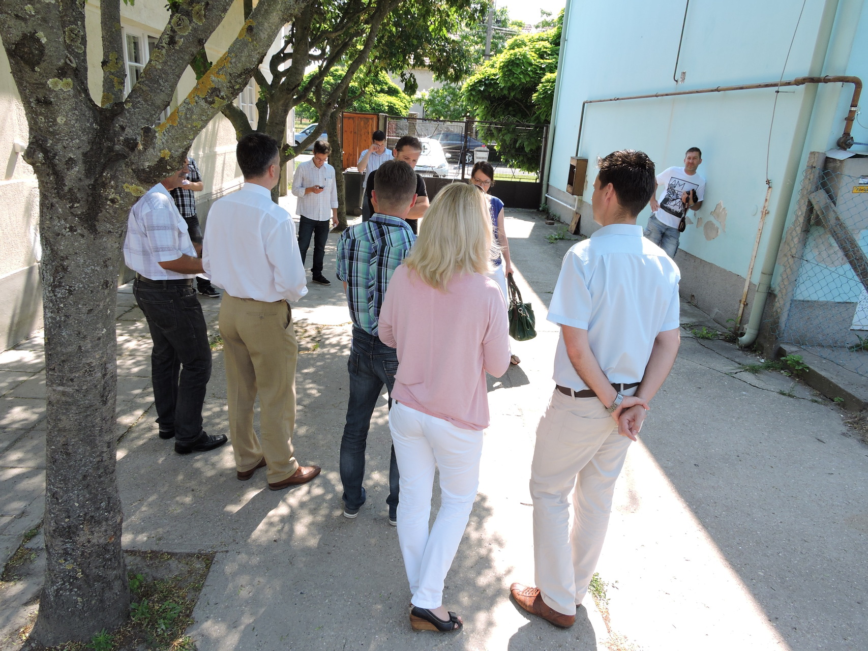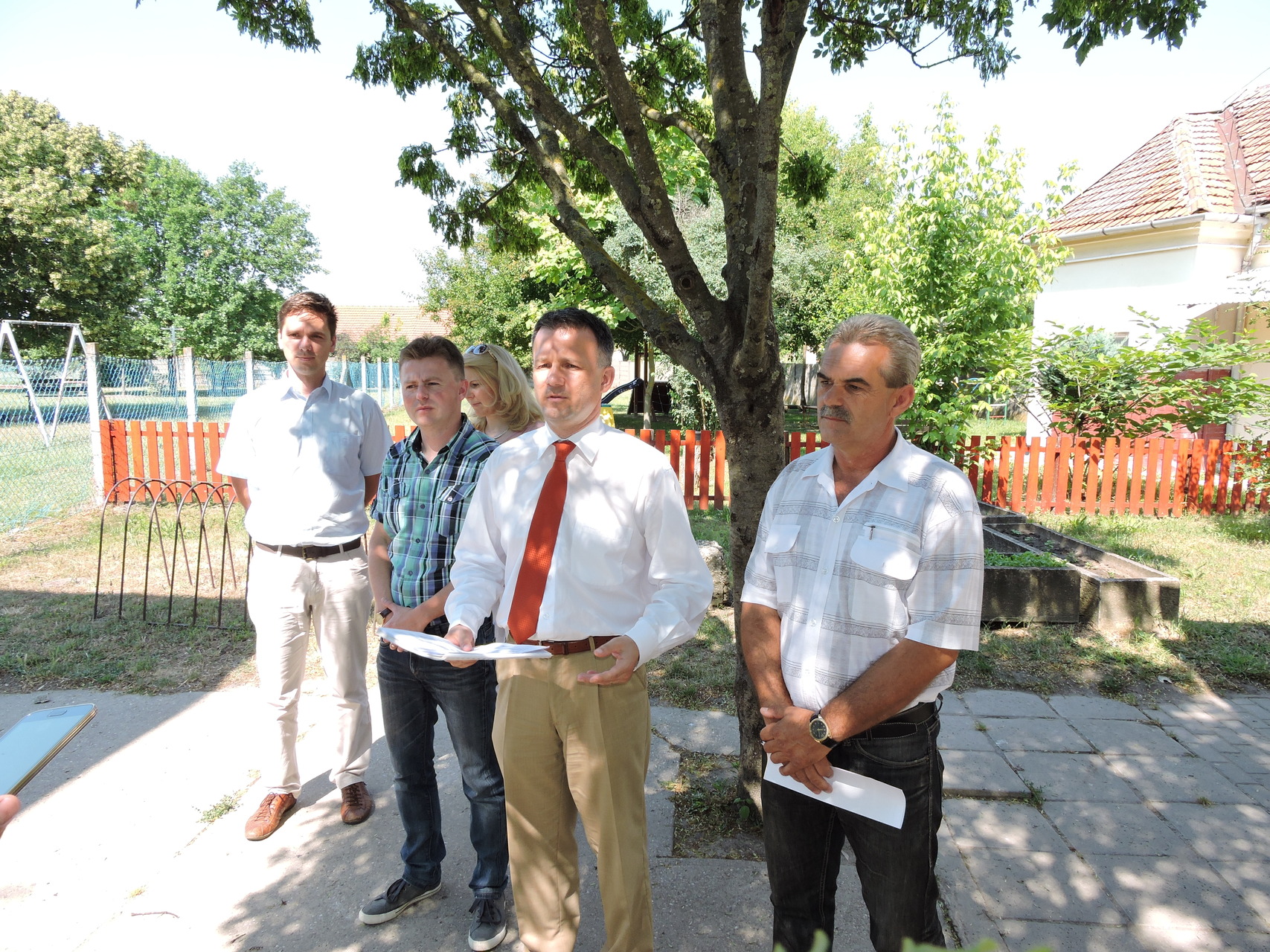 A gyulai városvezetés a gyulavári szakigazgatási kirendeltség épülete előtt tartott sajtótájékoztatót