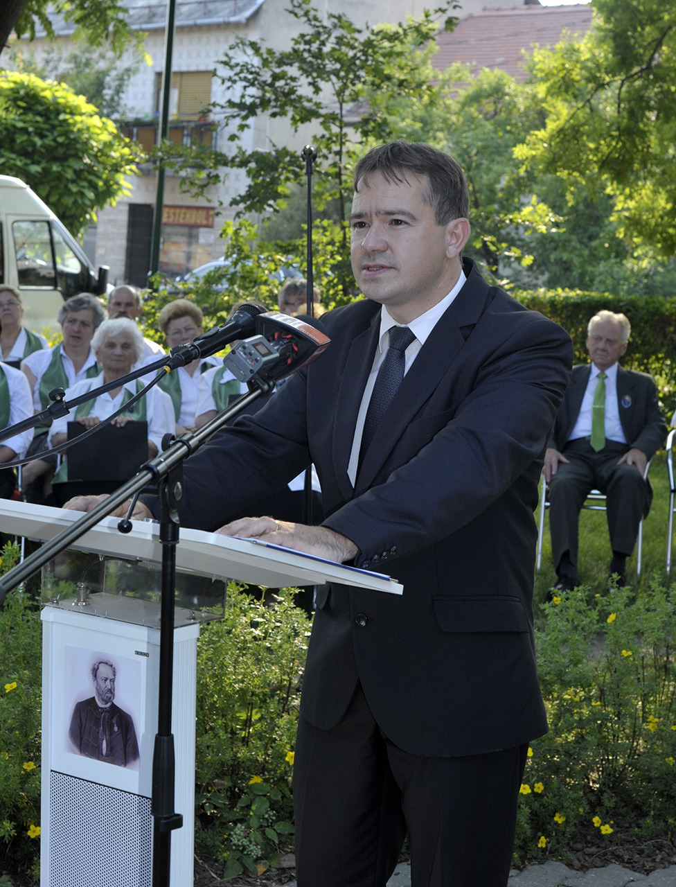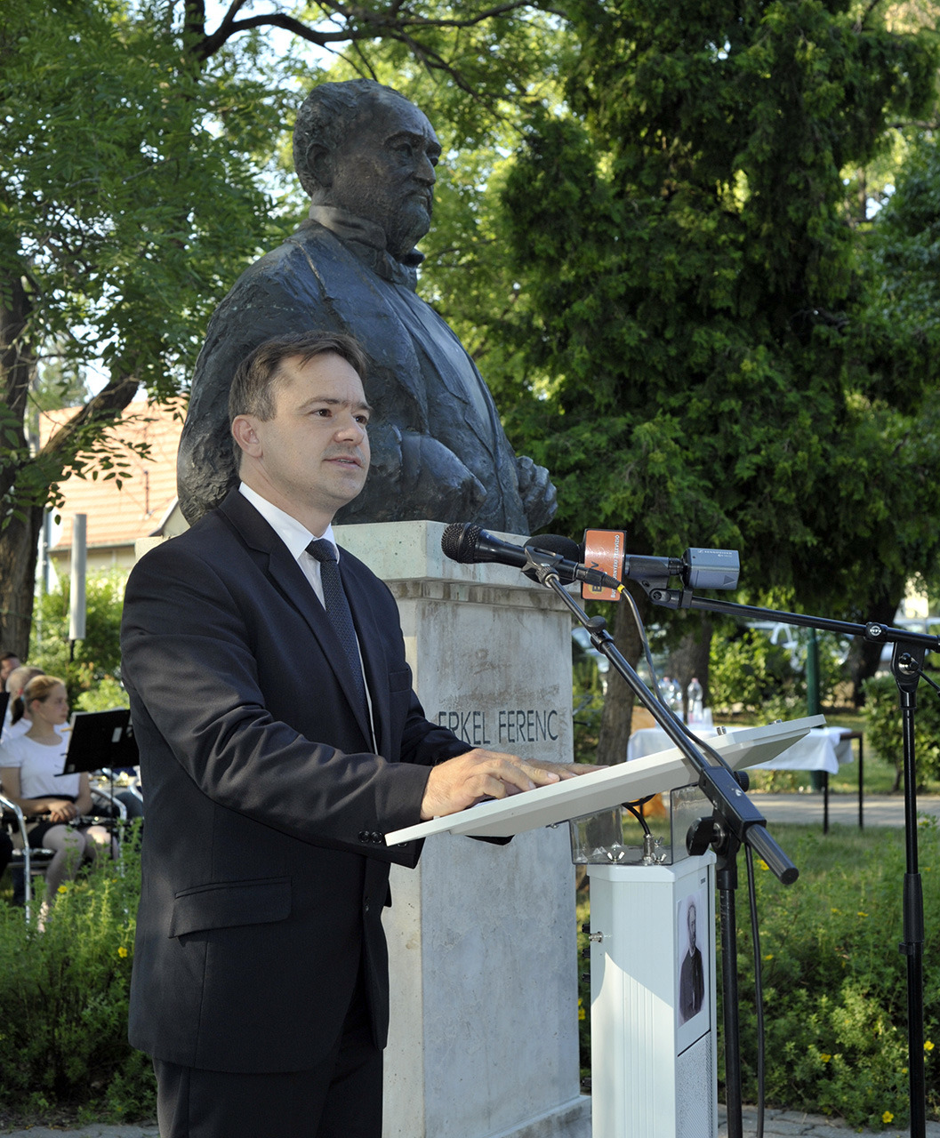 - Megtiszteltetés számomra, hogy városaink közös találkozásának újabb eseményén a nagy nemzeti zeneköltő, Erkel Ferenc bronzszobránál róhatjuk le tiszteletünket művészi nagyságát méltatva. Mert való igaz, hogy országunk több zeneköltővel büszkélkedhet, de a legnagyobb, legkedvesebb nekünk, aki egészen a mienk, aki hazájának, e kis hazának szentelte életét, a magyar klasszikus zene megteremtője, s a kor utolérhetetlen mestere Erkel Ferenc volt. Ha a kárpát-medencei magyarság és szűkebb hazánk, a benne lakó hazánkfiai büszkék nemzeti imádságunk megzenésítőjére, akkor azt gondolom és hiszem, hogy városaink közösségei még inkább magukénak érzik a mestert és annak életművét, valamint életének két legmeghatározóbb helyszíneit: szülővárosát, Gyulát – ahol útjára indult zenei pályája – és kedves időtöltésének szeretett helyszínét, Budakeszit – mondta Kónya István.