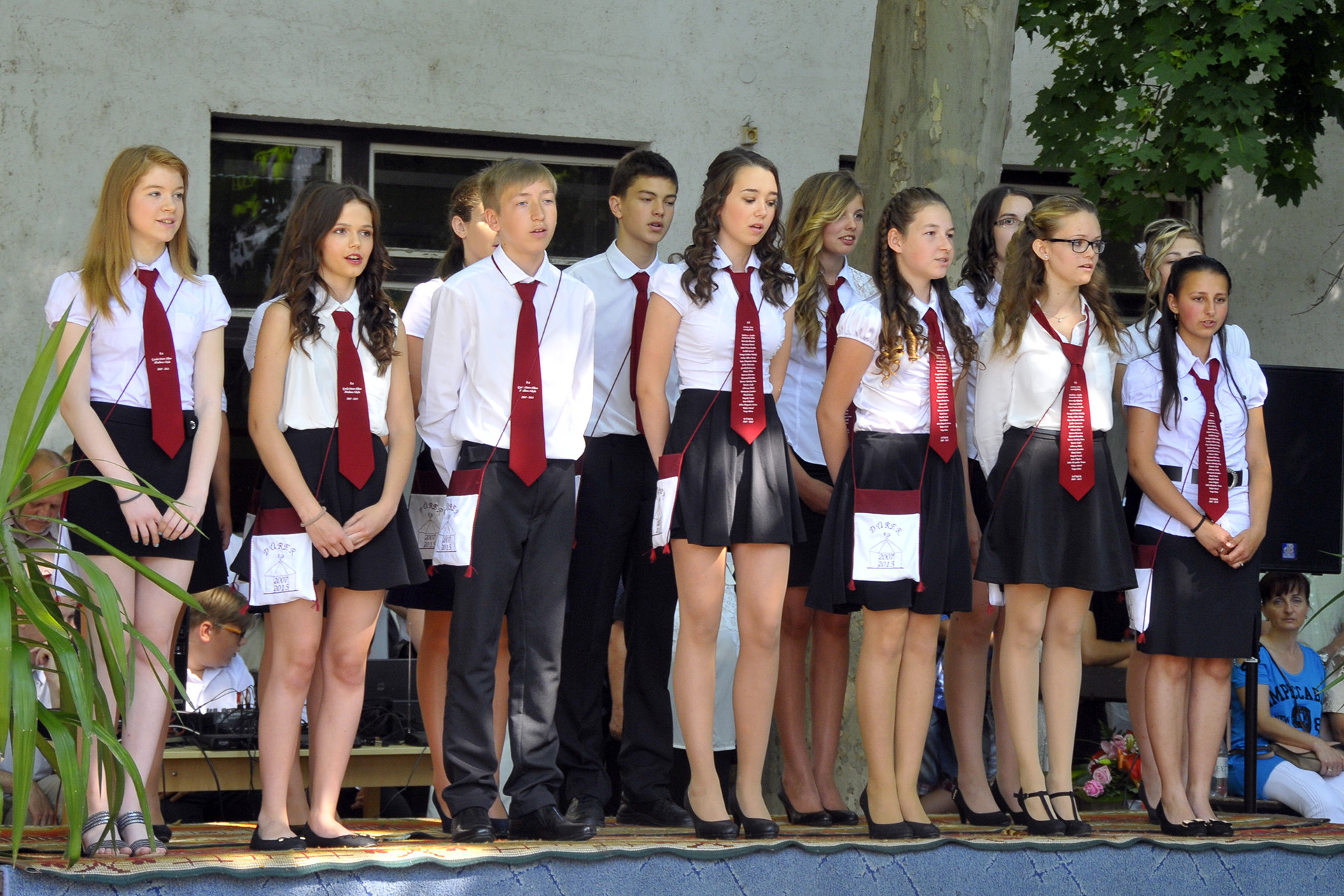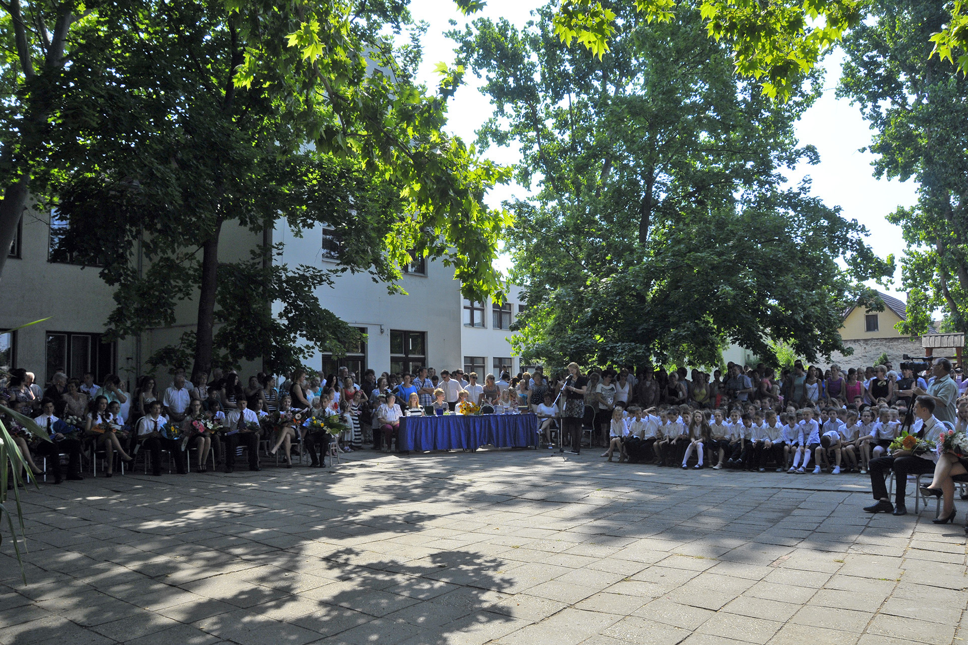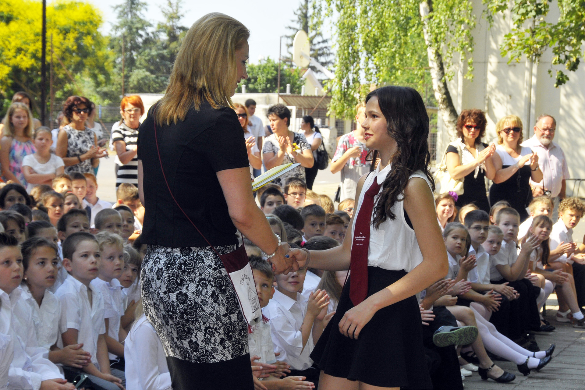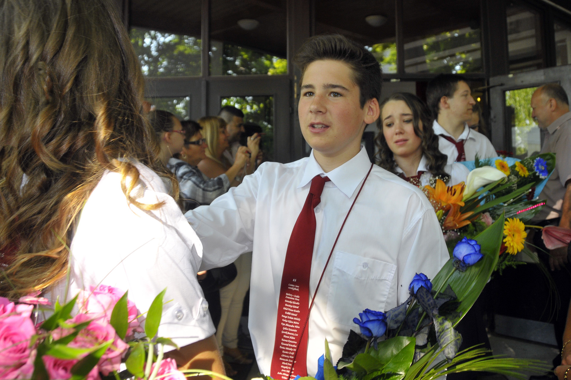 - Örömteli ez a mai nap. Mégis meghatódottak vagyunk. Ti is, én is. Nehéz belegondolni abba, hogy az a 8 év, amit az iskola falai között töltöttetek, hirtelen véget ér. Minden teremhez, tanárokhoz, diáktársakhoz egy-egy emlék fűződik. Az itt töltött évek összekötnek bennünket. Annyi minden történt a nyolc év alatt: jó felidézni a kezdeteket, amikor elsősként megilletődötten ültetek a tanévnyitón, ismerkedtetek az ABC betűivel, a számolás, írás rejtelmeivel. Majd a további évek során sok-sok új ismeretet kaptatok a felső tagozaton. Az eltöltött idő alatt sok minden változott. Mi nem változott? Az az aggodalom, gondoskodás, amit a jövőtök iránt érzünk. Ezeket az éveket nem lehet kitörölni, valamilyen nyomot hagy mindenkiben. Bennünk is. Nem fogunk, nem is akarunk elfelejteni benneteket. Kollégáimmal együtt örültünk minden sikereteknek, apró örömötöknek, átéreztük a kudarc okozta fájdalmat, bánatot. Ma véget értek az általános iskolás napok. Kedves lányok és fiúk! Pedagógusaitok felkészítettek benneteket a továbbtanulásra, mi több, az élethosszig történő tanulásra. Kit jobban, kit kevésbé jól sikerült. Kinek könnyebb, kinek nehezebb lesz a folytatás. Annak örülünk, hogy valamennyien továbbtanultok. Bízunk bennetek, hogy választott iskolátokban helyt álltok, és sok jót hallunk még felőletek. Ám tudnotok kell, hogy a felvétellel csak a lehetőséget kaptátok meg a középiskolától. A lehetőséget ahhoz, hogy újabb évek munkája, a tanulás révén közel jussatok életcélotokhoz, későbbi munkátokhoz. Az első naptól kezdve tanuljatok szorgalmasan, szerezzetek még több tudást még több ismeretet és dicsőséget magatoknak. Ezt várják tőletek szüleitek, ezt kérjük mi is. Ígérjük, gondolunk rátok – szólt a ballagókhoz az intézményvezető.