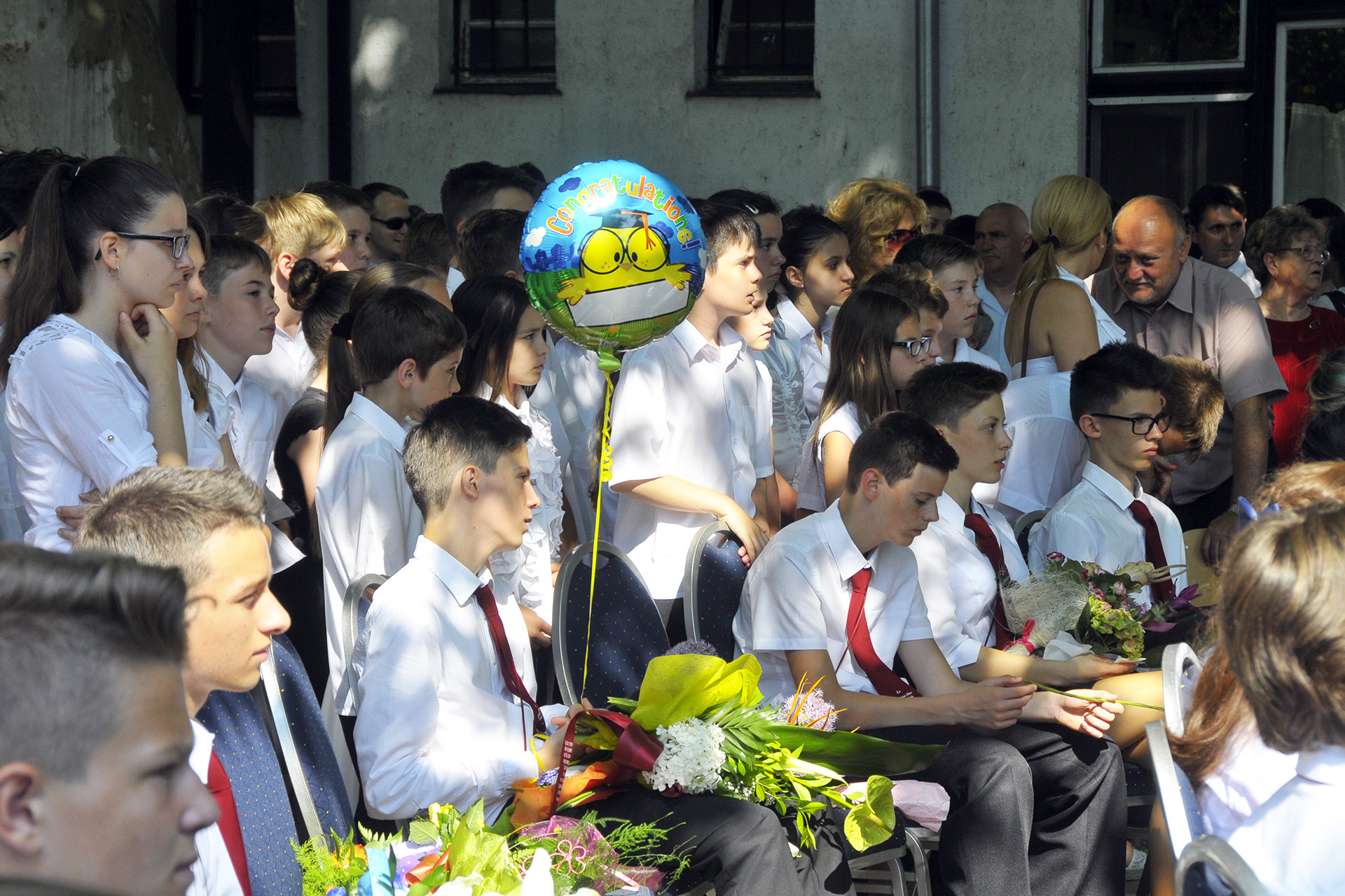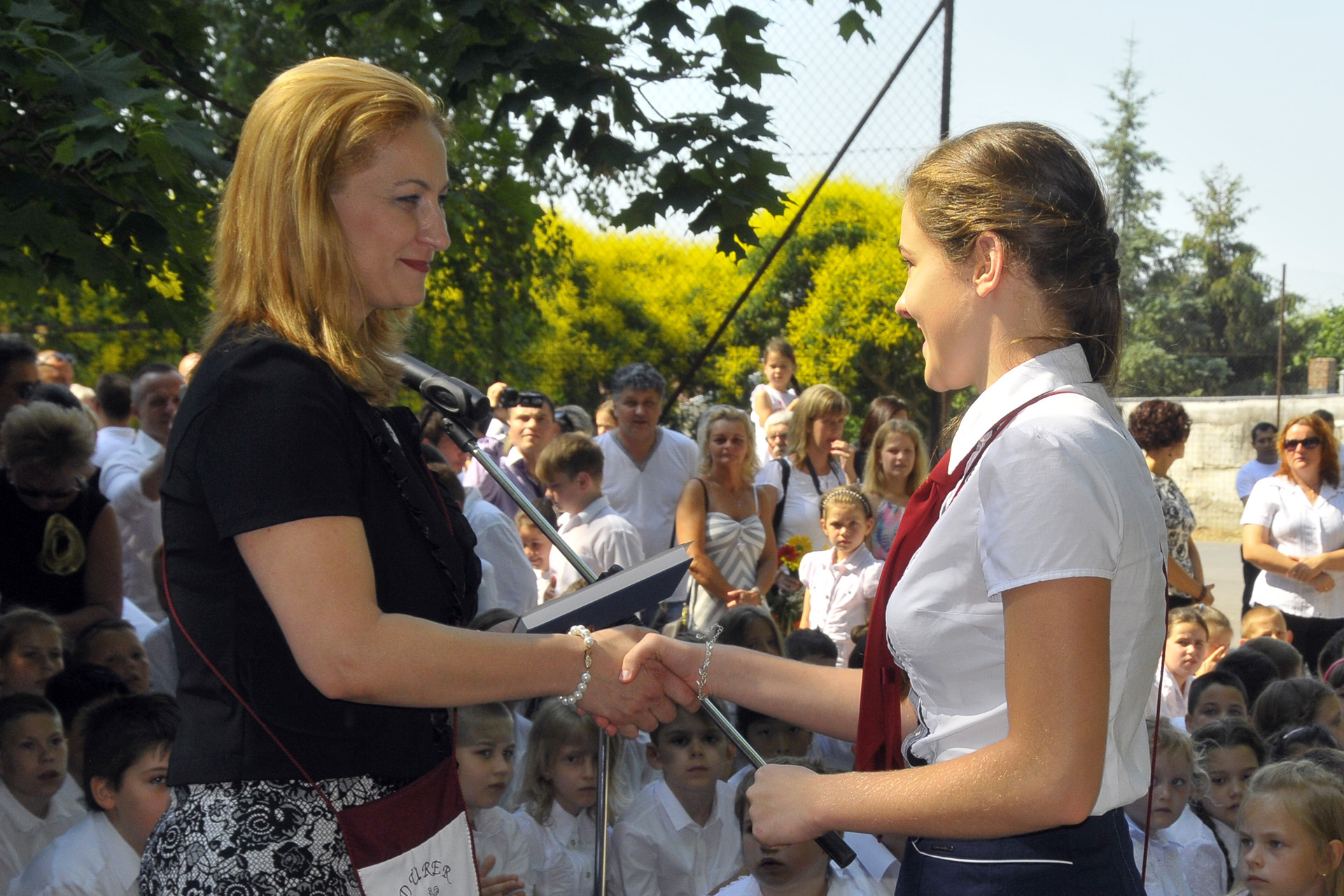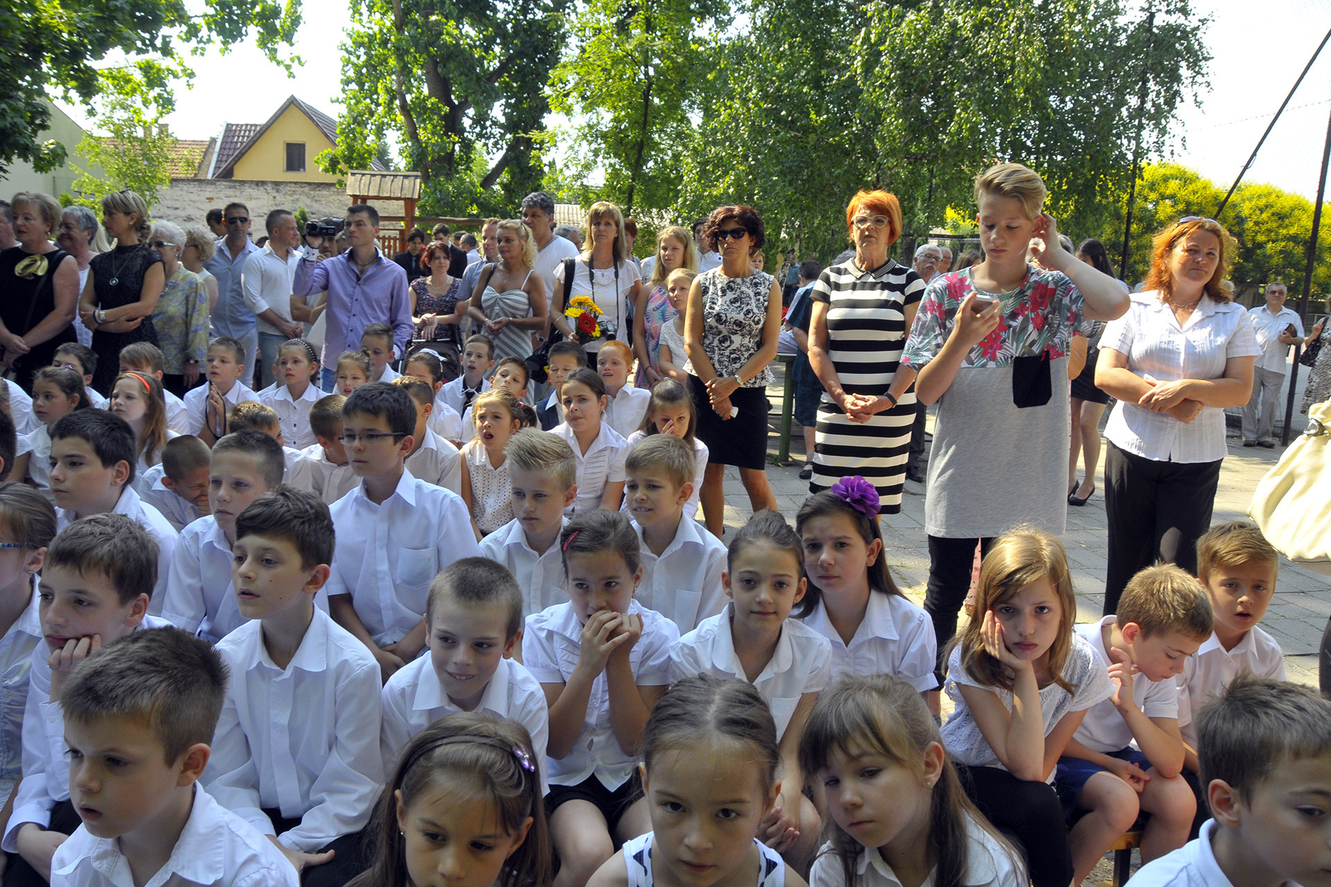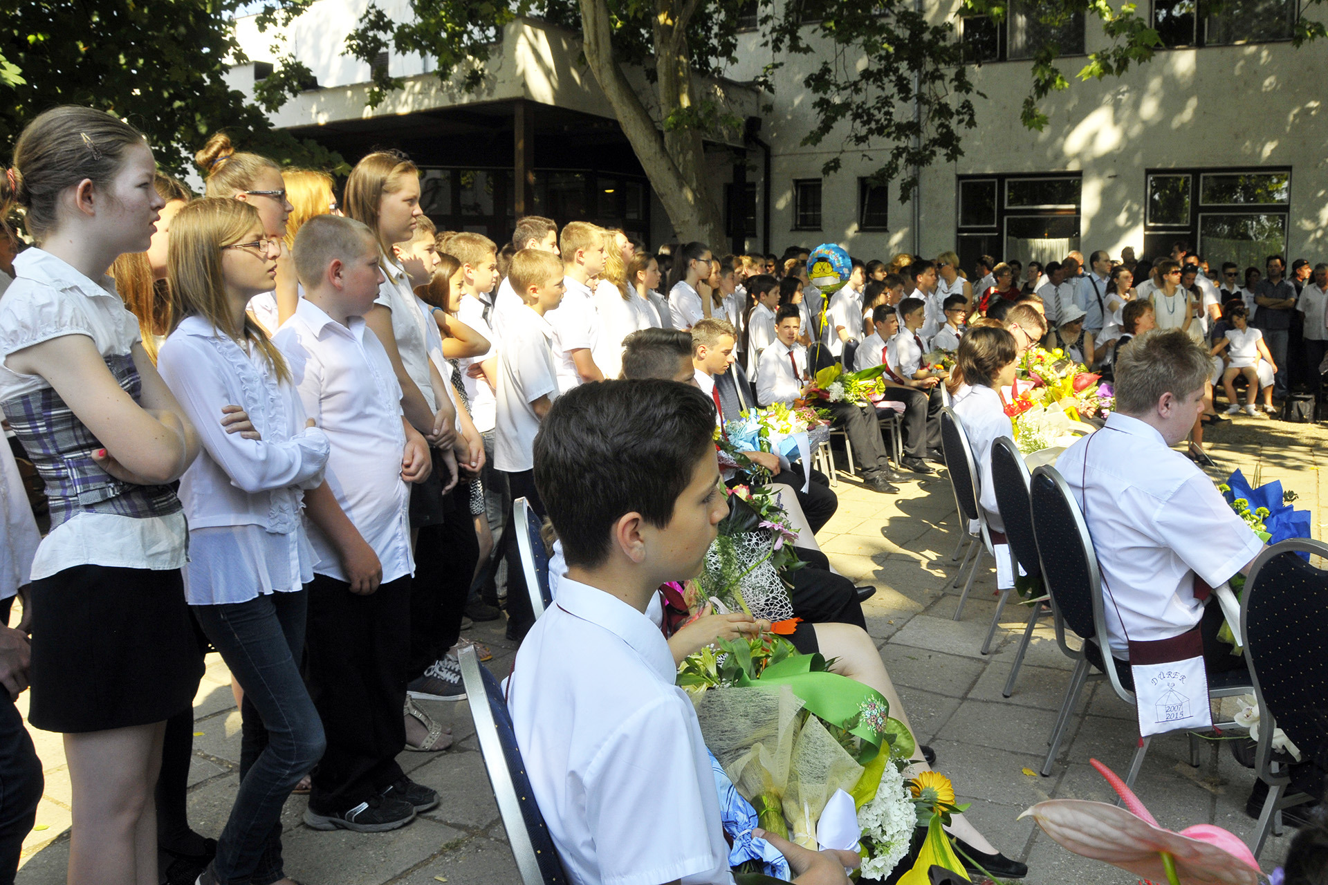 - Örömteli ez a mai nap. Mégis meghatódottak vagyunk. Ti is, én is. Nehéz belegondolni abba, hogy az a 8 év, amit az iskola falai között töltöttetek, hirtelen véget ér. Minden teremhez, tanárokhoz, diáktársakhoz egy-egy emlék fűződik. Az itt töltött évek összekötnek bennünket. Annyi minden történt a nyolc év alatt: jó felidézni a kezdeteket, amikor elsősként megilletődötten ültetek a tanévnyitón, ismerkedtetek az ABC betűivel, a számolás, írás rejtelmeivel. Majd a további évek során sok-sok új ismeretet kaptatok a felső tagozaton. Az eltöltött idő alatt sok minden változott. Mi nem változott? Az az aggodalom, gondoskodás, amit a jövőtök iránt érzünk. Ezeket az éveket nem lehet kitörölni, valamilyen nyomot hagy mindenkiben. Bennünk is. Nem fogunk, nem is akarunk elfelejteni benneteket. Kollégáimmal együtt örültünk minden sikereteknek, apró örömötöknek, átéreztük a kudarc okozta fájdalmat, bánatot. Ma véget értek az általános iskolás napok. Kedves lányok és fiúk! Pedagógusaitok felkészítettek benneteket a továbbtanulásra, mi több, az élethosszig történő tanulásra. Kit jobban, kit kevésbé jól sikerült. Kinek könnyebb, kinek nehezebb lesz a folytatás. Annak örülünk, hogy valamennyien továbbtanultok. Bízunk bennetek, hogy választott iskolátokban helyt álltok, és sok jót hallunk még felőletek. Ám tudnotok kell, hogy a felvétellel csak a lehetőséget kaptátok meg a középiskolától. A lehetőséget ahhoz, hogy újabb évek munkája, a tanulás révén közel jussatok életcélotokhoz, későbbi munkátokhoz. Az első naptól kezdve tanuljatok szorgalmasan, szerezzetek még több tudást még több ismeretet és dicsőséget magatoknak. Ezt várják tőletek szüleitek, ezt kérjük mi is. Ígérjük, gondolunk rátok – szólt a ballagókhoz az intézményvezető.