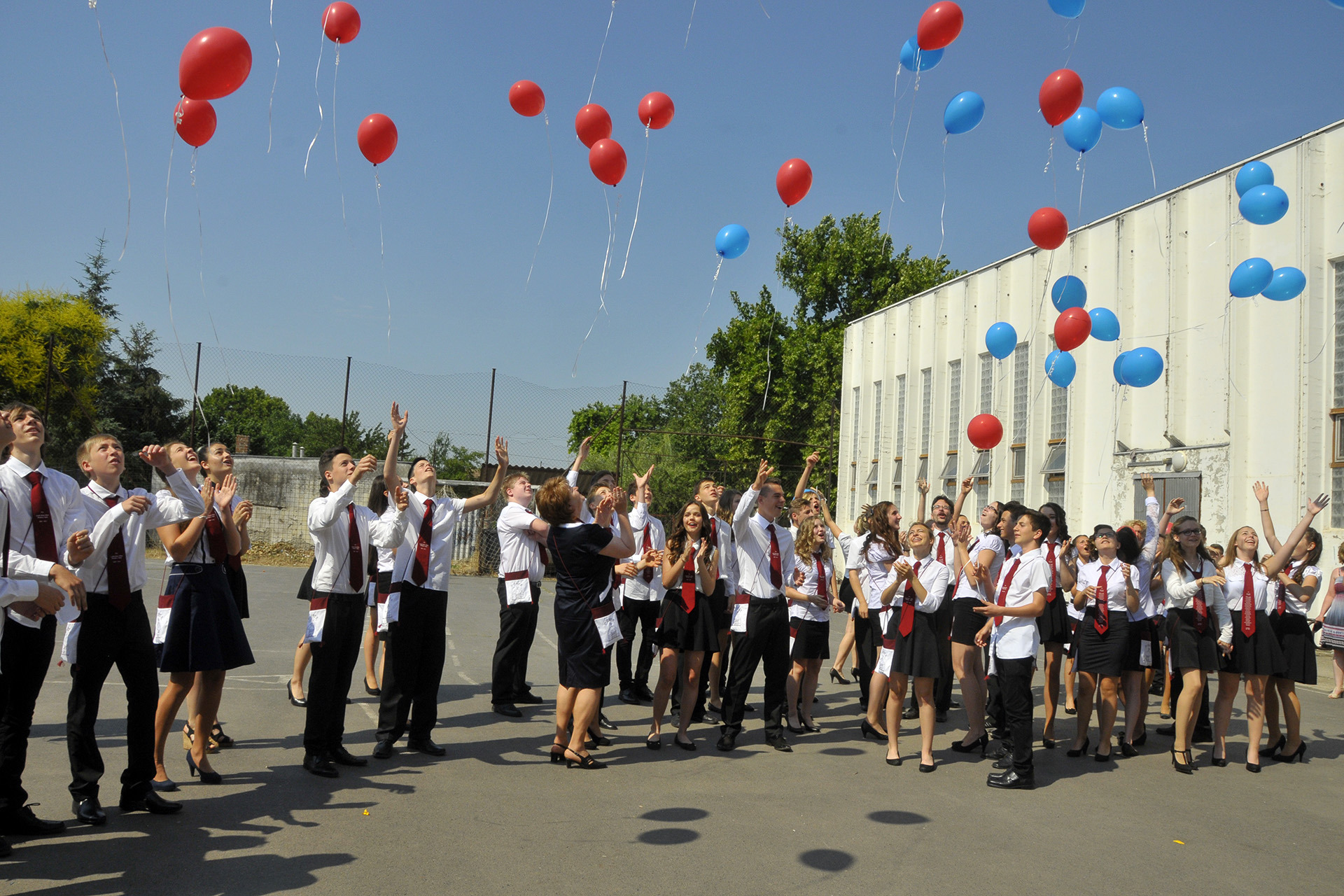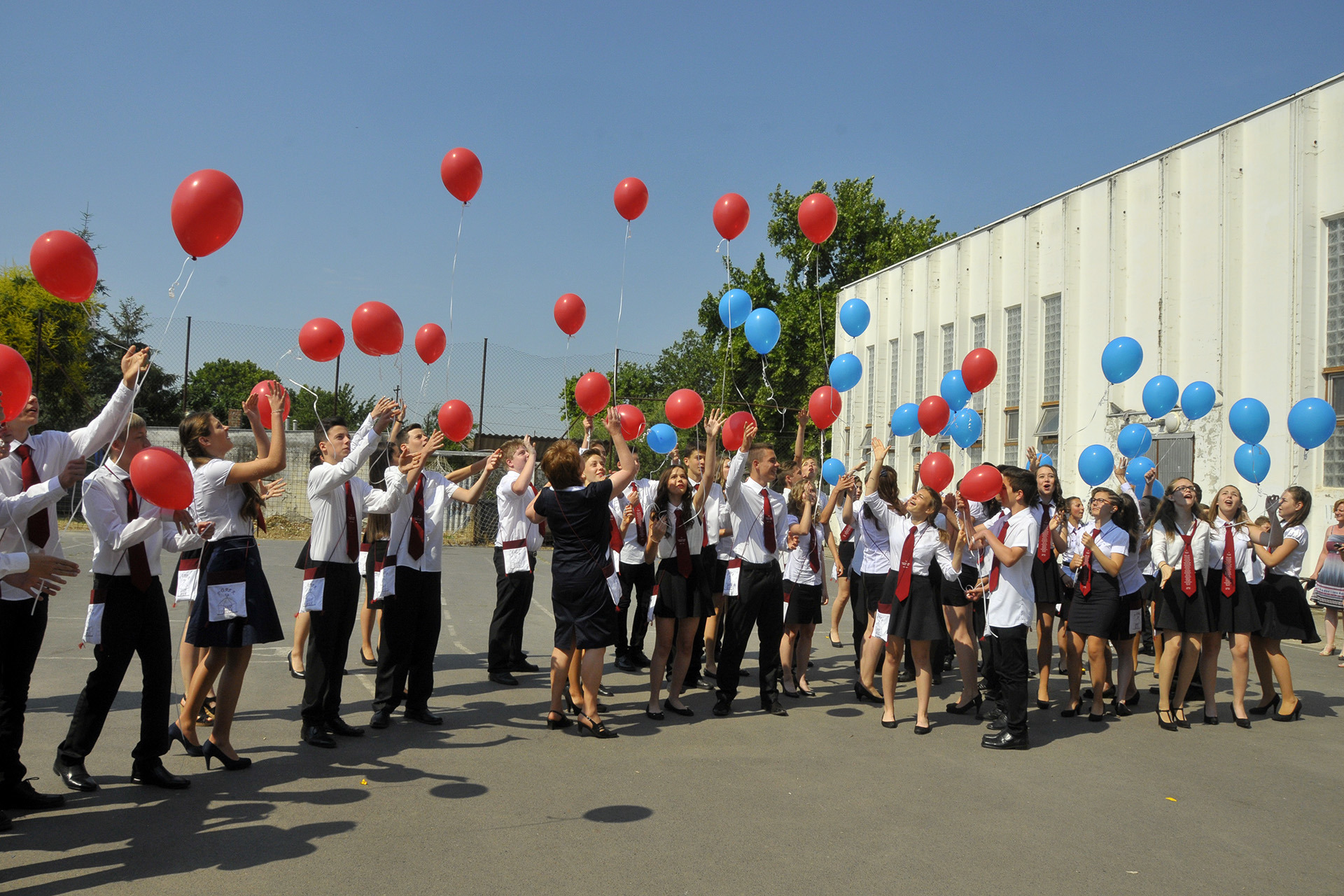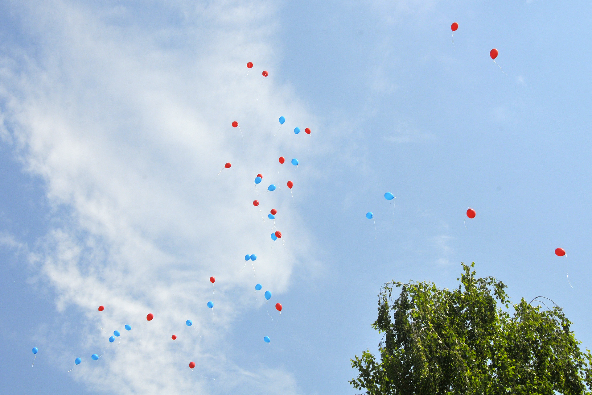 A ballagási ünnepség megkoronázásaként 48 színes léggömb szállt fel a gyulai Dürer Albert Általános Iskola udvaráról. A lufik rövid ideig még együtt bolyongtak, majd felfelé törekedve egyéni utat választottak maguknak. Ballagó gazdáik hamarosan követik példájukat.