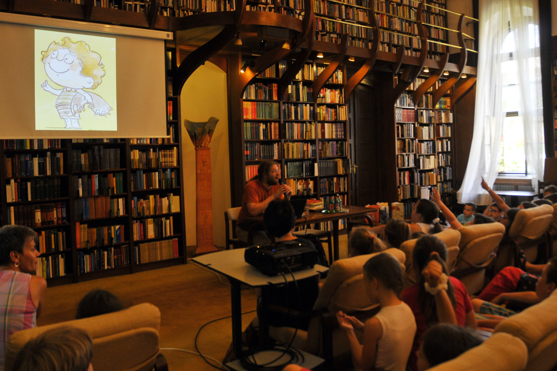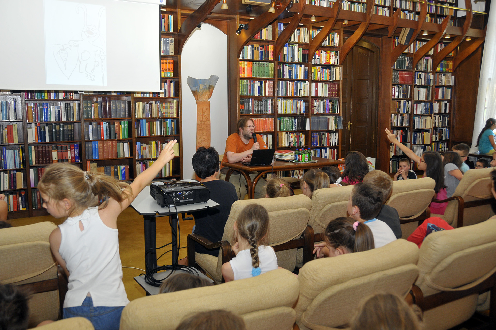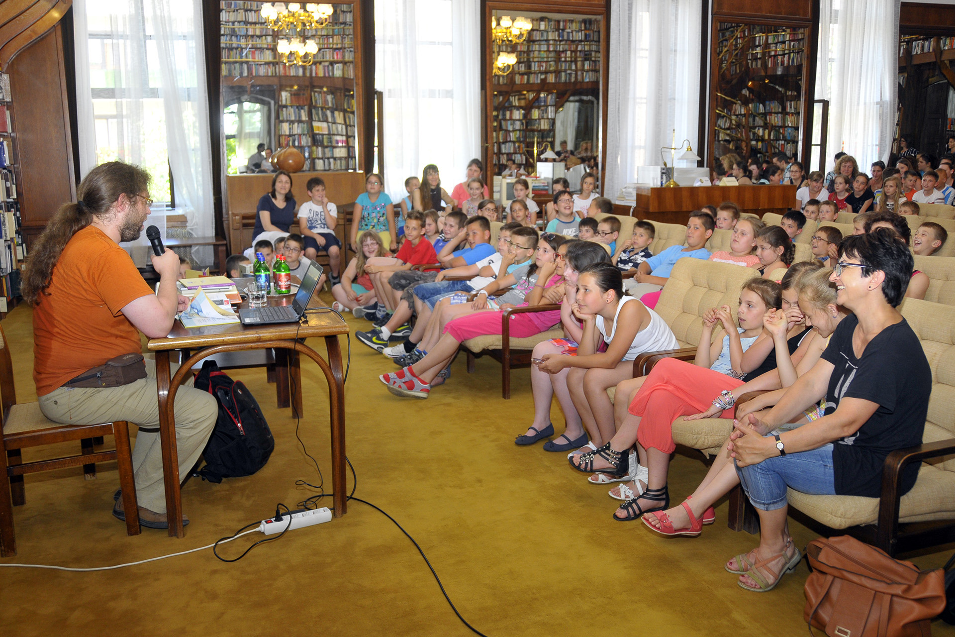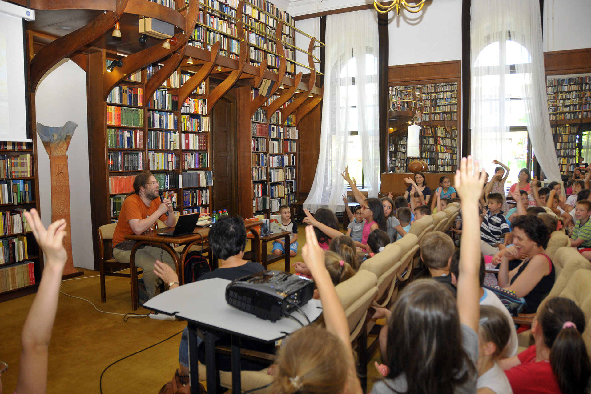 Varró Dániel a Mogyoróssy János Városi Könyvtár Simonyi-olvasótermében találkozott a gyulai gyerekekkel