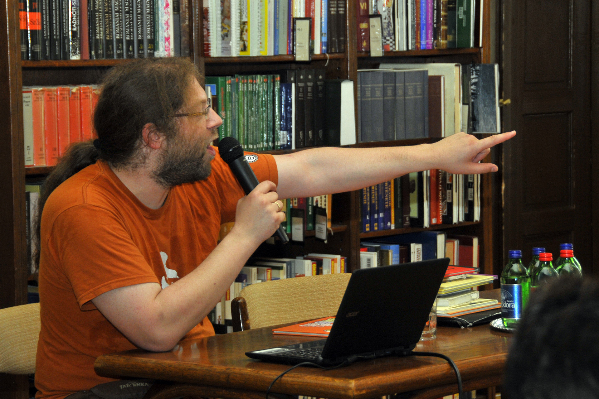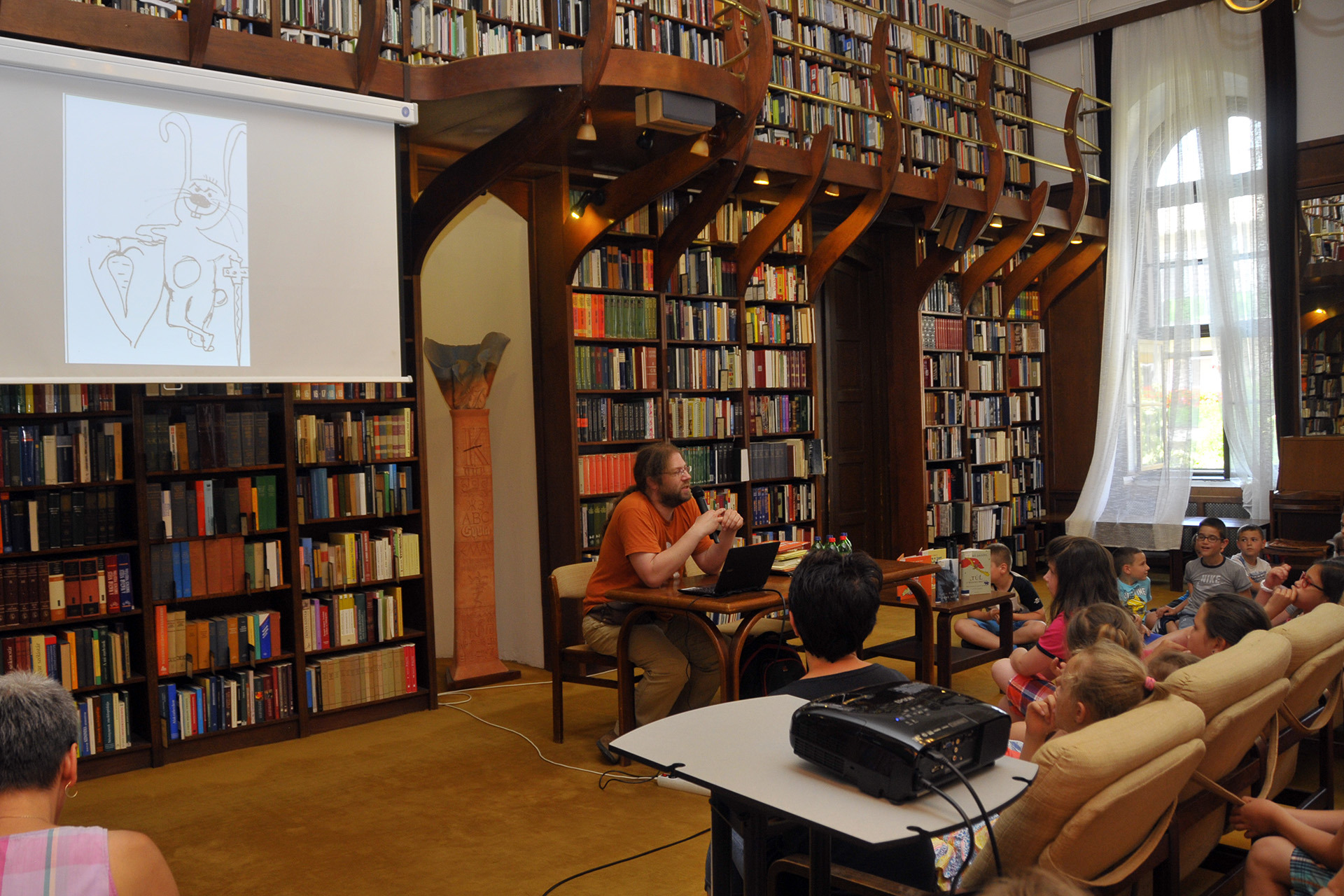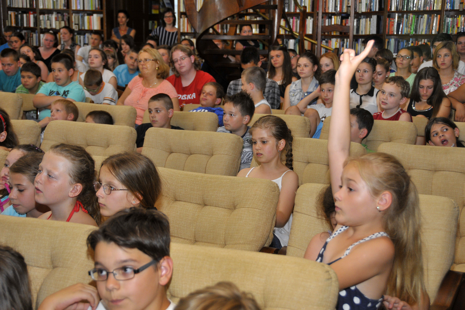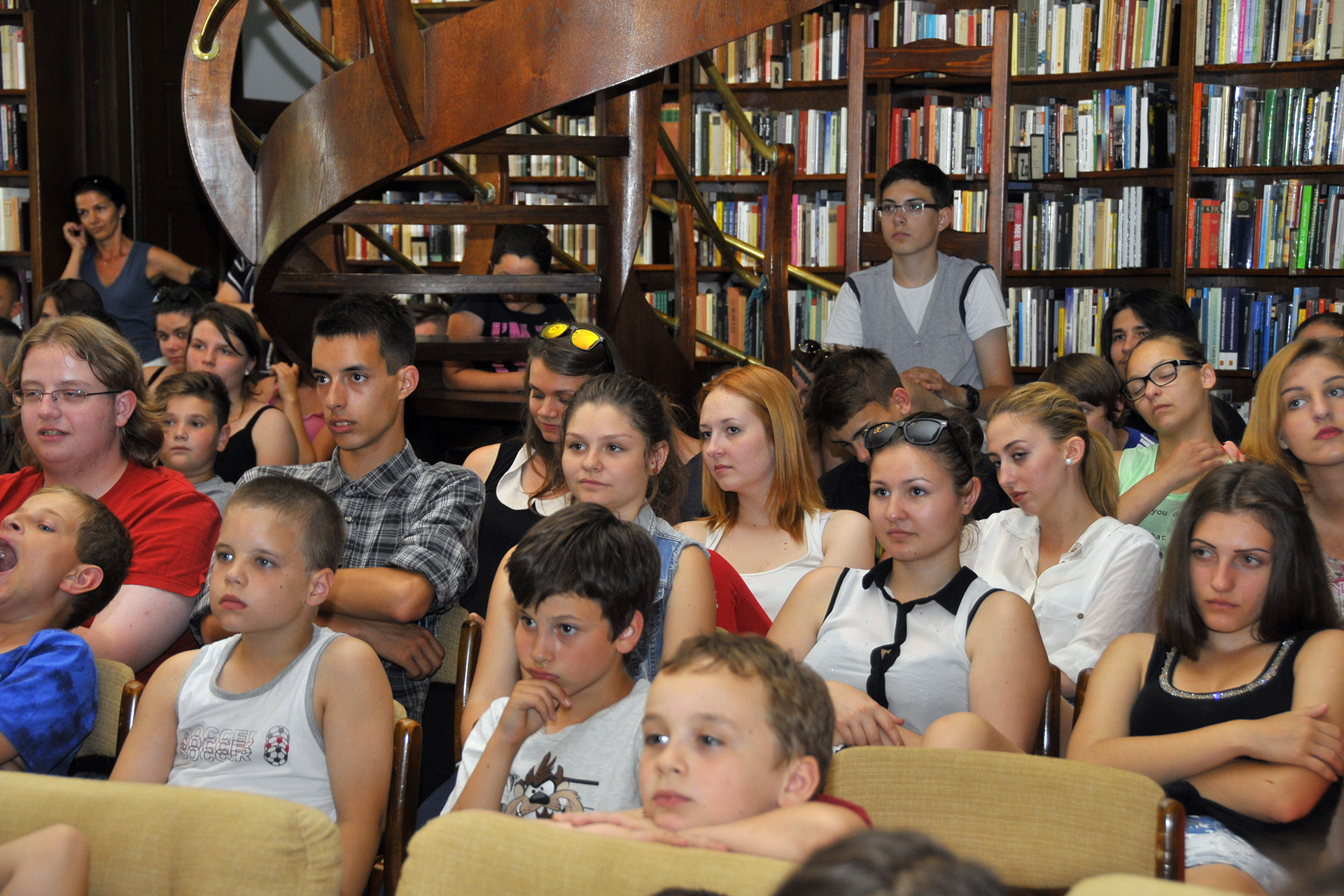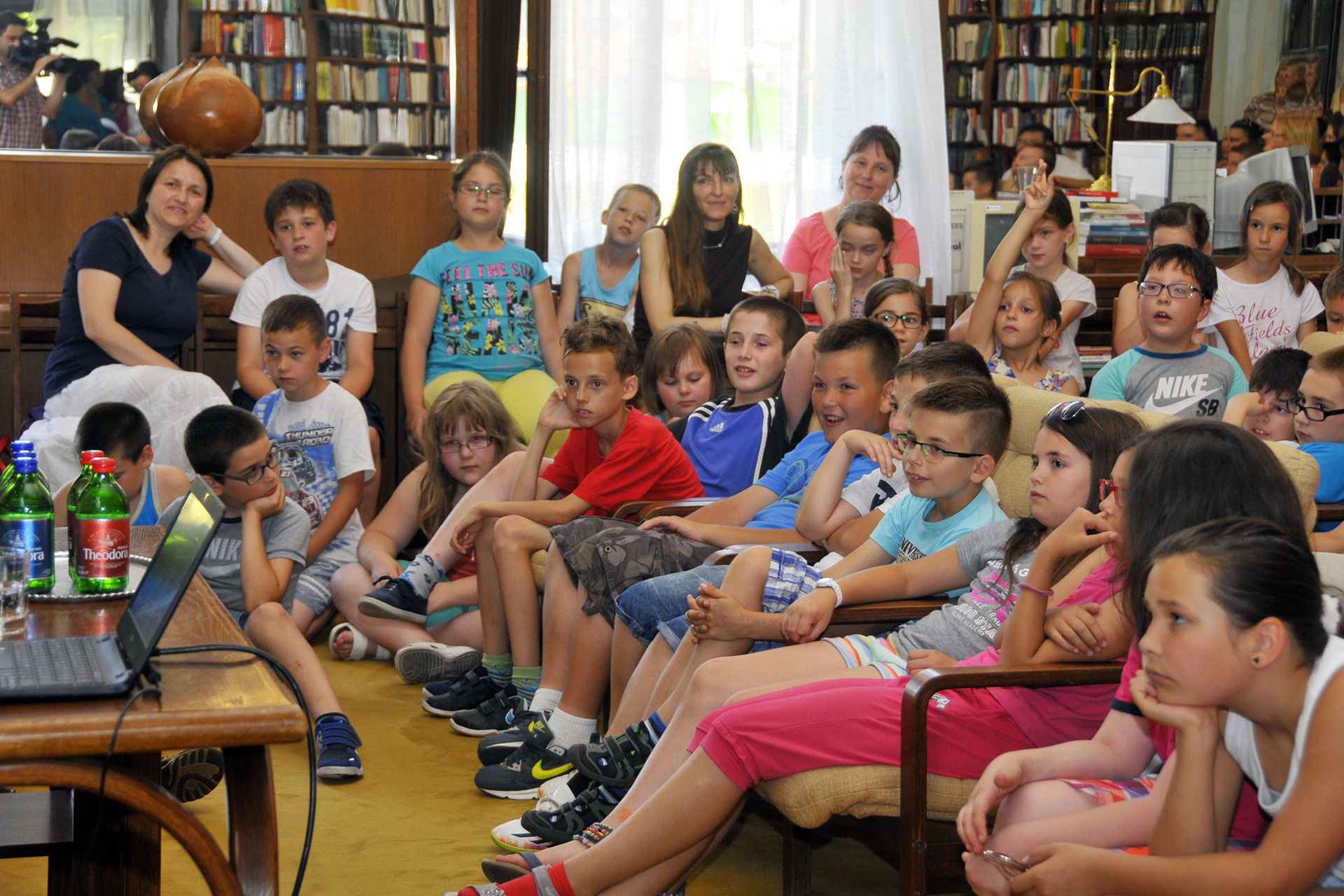Varró Dániel a Mogyoróssy János Városi Könyvtár Simonyi-olvasótermében találkozott a gyulai gyerekekkel