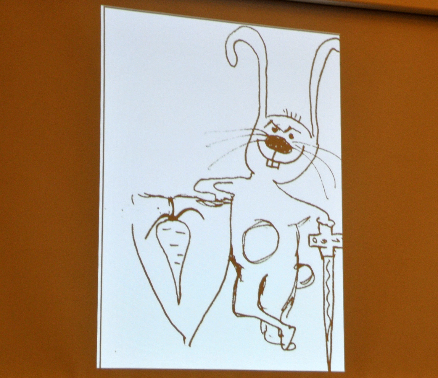 Az interaktív, vidám találkozó elején Varró Dániel egy nyúlfarknyi anekdotát osztott meg a főként kisiskolásokból álló közönséggel. A történetből kiderült, a költő gyerekkorában buszvezető szeretett volna lenni, ám csakhamar rádöbbent: „A buszvezetők mind mogorvák / Odacsukják az utasok orrát, / Ahogy az orrok ellilulnak, / A buszvezetők felvidulnak.”