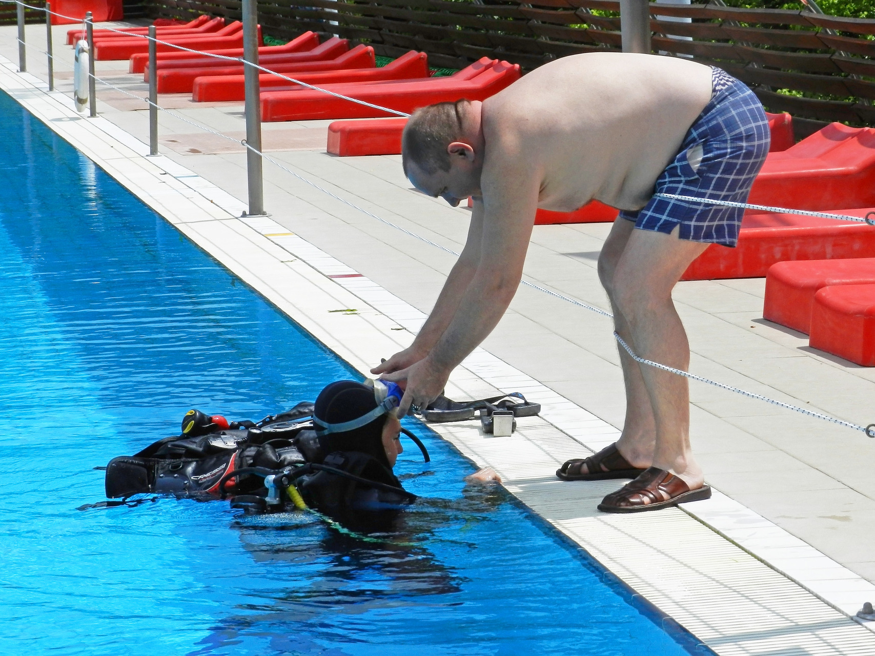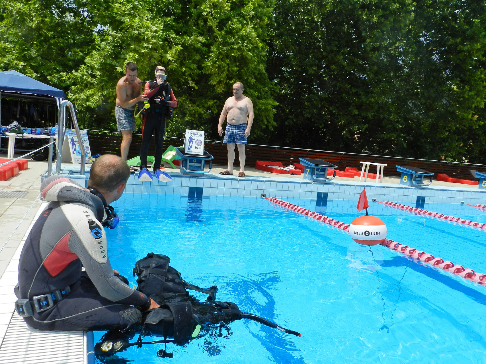 Czene Ferenc, a Kormorán Búváriskola oktatója lapunknak elmondta: a Magyar Úszás Napja alkalmából előadást tartottak a fürdőzőknek, és ingyen lehetett kipróbálni a légzőkészülékes búvárkodást. A szakembertől megtudtuk, négy- és nyolcvanéves jelentkezőjük is akadt már, a búvárkodás ugyanis nem kötődik életkorhoz.