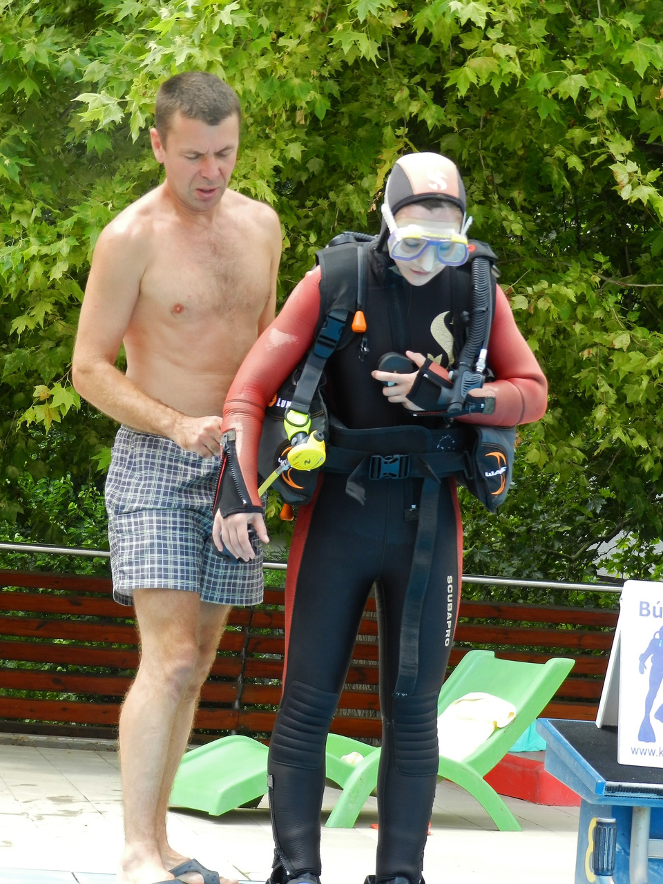 – Először kicsit féltem attól, hogy hirtelen elsüllyedek, de hamar megjött az önbizalmam – számolt be élményeiről Széphegyi Gergő. A 14 éves fiú másodjára vállalkozott a merülésre, korábban Egyiptomban próbálta ki a búvárkodást.