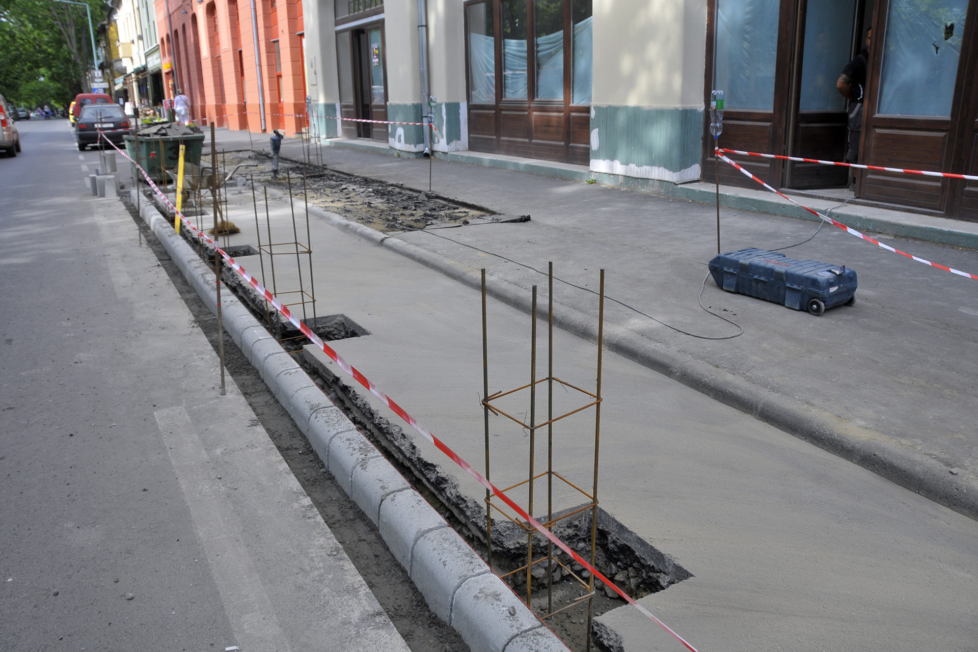 A tulajdonos elmondta, a hajdani terasz benyúlt az útra, ami jelenleg úgy valósítható meg, hogy három parkolót megszűntetnek. Természetesen mindez a közlekedési szabályok betartásával történik, ami azt írja elő, hogy a közlekedési út szélétől minimum 50 cm-re lehet építkezni. Az újonnan megépülő terasz 70 cm-re közelíti majd meg az utat.