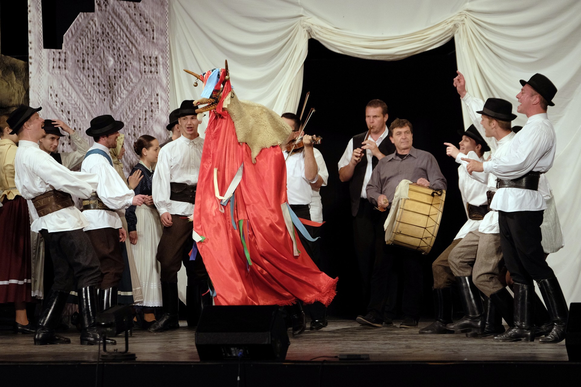 Az előadás során a Suttyomba zenekar húzta a talpalávalót. Muzsikájuk hallatán a táncoslábú leányok és legények hamisítatlan örömtáncot lejtettek a deszkákon.