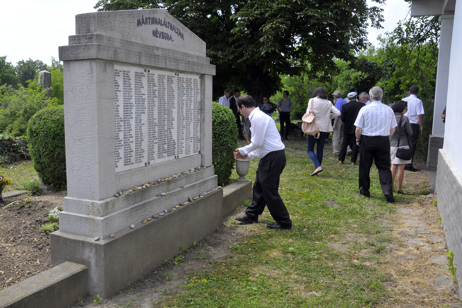 Zsidó tradíció, hogy az élőknek virágot adnak, az elhunytakra kövekkel emlékeznek, a jelenlévők ezúttal sem tettek másképpen: a gyász kövecskéivel tisztelegtek az elhurcoltak emléke előtt.