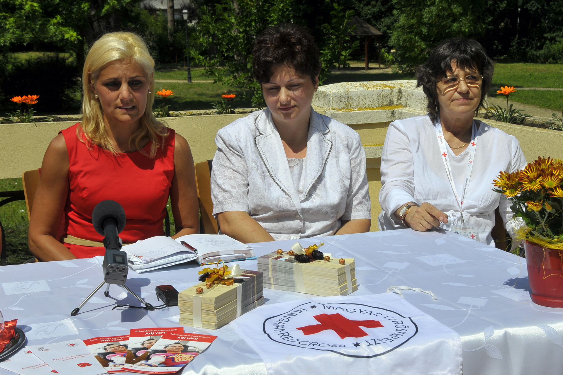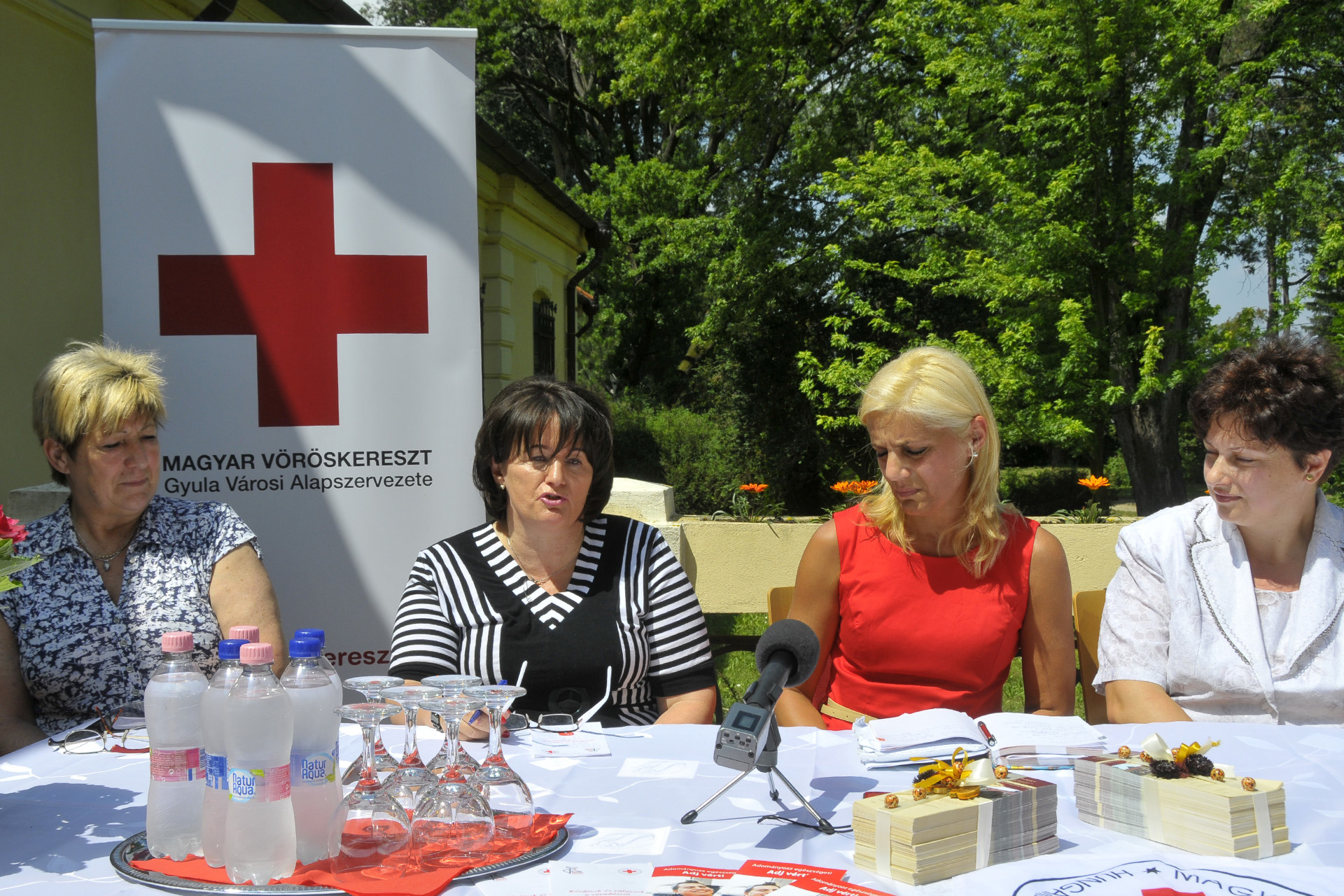 Oroszné Árgyelán Ilona elmondta, az alapítvány több célcsoportot is támogat, korábban a gyulai általános iskolásokat is megajándékozták kastélybelépővel. Mostani adományukkal a Vöröskereszt munkáját köszönik meg, ugyanakkor ezzel köszönik meg az önkéntes véradók áldozatos segítségét.