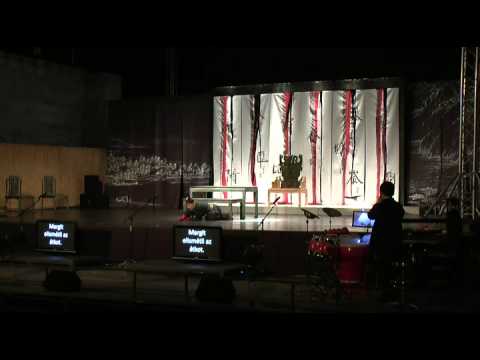 Méltán kapott nagy tapsot Wang Jianan, aki kínai dobokkal és hangutánzó ütős hangszerekkel kísérte a jeleneteket, akár a csatatér hátborzongató hangulatát, akár a végzet titokzatos zenéjét kellett érzékeltetnie. A kalligrafikusan megírt kínai betűkkel díszített, szerény színpadi háttérben a szokásosnál nagyobb jelentőséget kaptak a kor hangulatát árasztó, nagyvonalúan, ha kellett színpompásan, mégis mértéktartóan tervezett jelmezek.