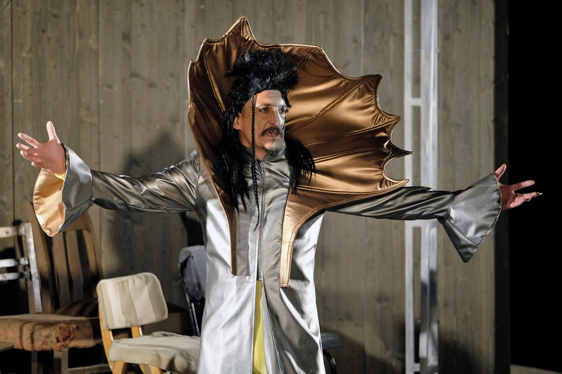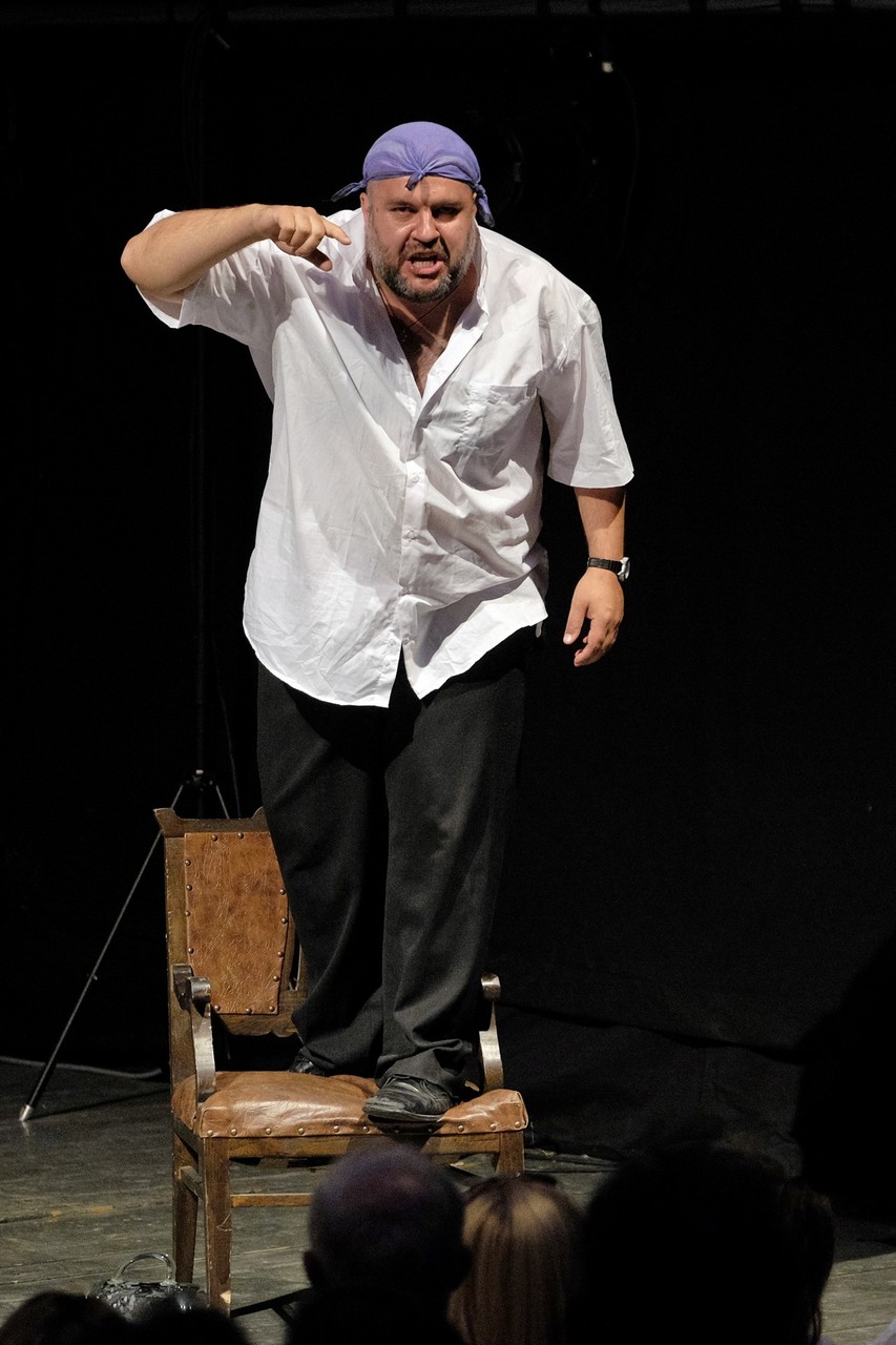 Mátray László két éve a Hamletért kapott művészeti díjat a Gyulai Várszínháztól. Most, Orsino herceg szerepében nem az őrültet játssza, hanem rutinosan alakít egy kevésbé bonyolult figurát, akivel valami őrületfélét játszanak.
