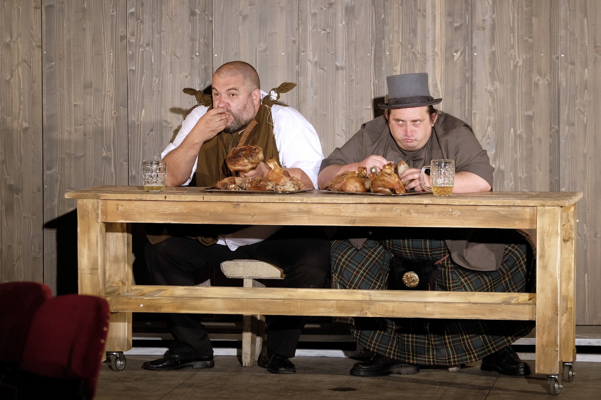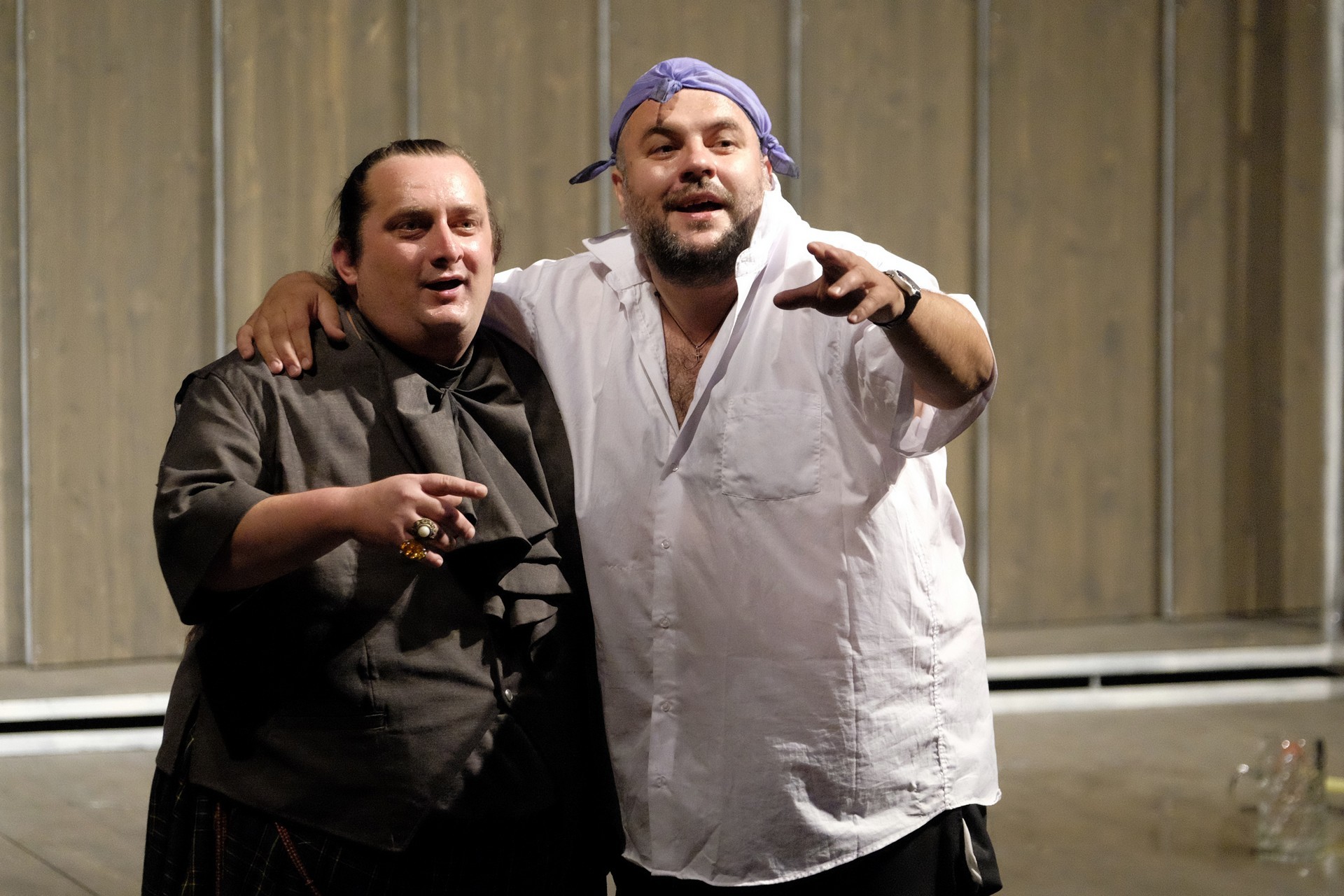 Hálás szerep az Olivia grófnő háznépéhez tartozó két részegesé. Diószegi Attila és Erdei Gábor – Vitéz Böffen Tóni és Vitéz Fonnyadi Ábris – nagy kedvvel, természetes harsánysággal alakította a két lump szerepét, mozgalmasságot hozva az időnként lanyhuló tempóba. Jól illeszkedett ehhez a kettőshöz az amúgy sem egyenes szálú történetet még jobban gabalyító Gajzágó Zsuzsa Máriája.