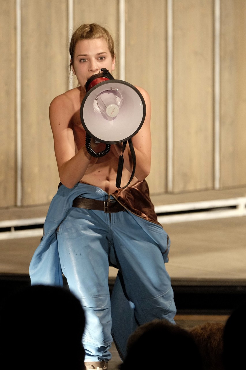 A mester utolsó vígjátékát – sokat mond, hogy egy időben született a tragédiába torkolló Hamlettel – enyhén szomorkás, szentimentális hangulat lengi át, amelyben a szerelmesek állandó bizonytalanságban élik meg átláthatatlan helyzetüket és érzéseiket. „Ó, idő! Te bogozd ki; mert nekem ily nagy csomóhoz gyönge a kezem” – sóhajt a Violát alakító Kovács Kati, akinek a darab legbonyolultabb szerepe jutott. Férfit alakítva kell szolgálnia szerelmét, Orsino herceget, feladata pedig, hogy megnyerje ura számára Olivia grófnőt, aki viszont iránta érez vonzalmat. Kovács Kati, ha kell finom érzékenységgel, vagy éppen csibészes szemtelenséggel kezeli a tripla csavar okozta bonyodalmakat.