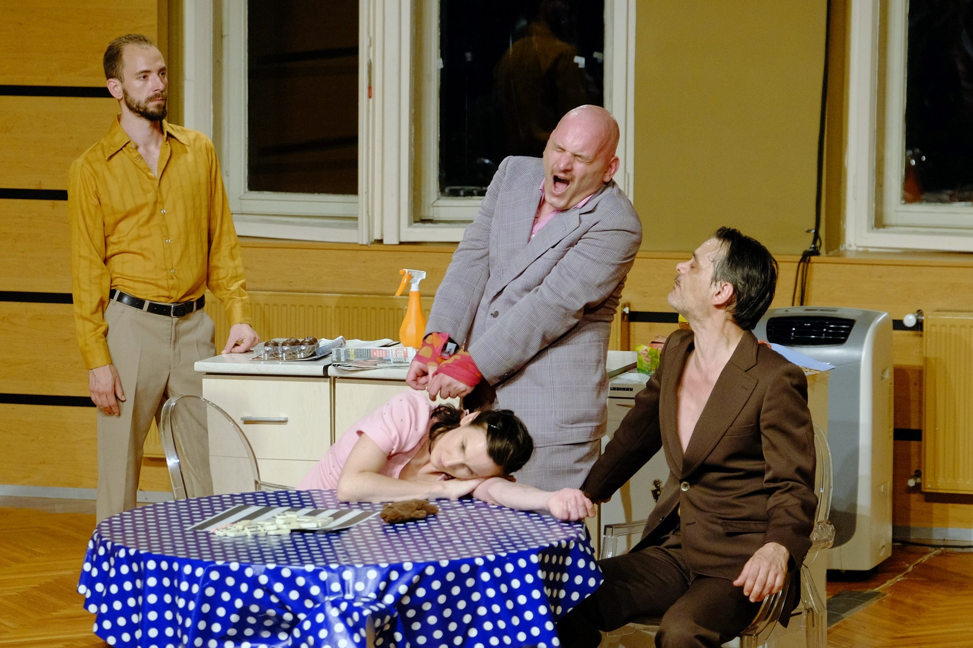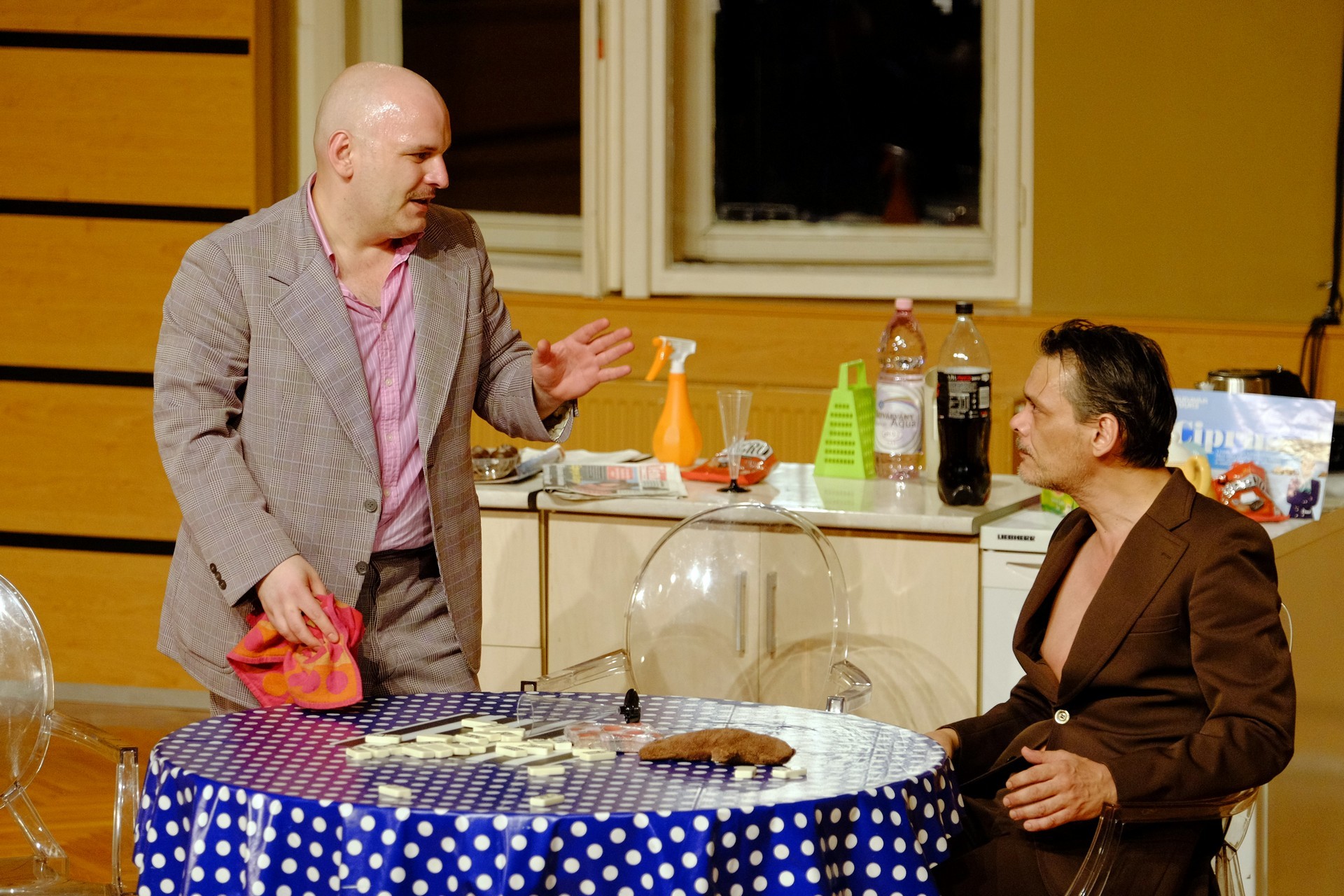 Részben a maivá tett nyelvezetnek, részben pedig a cselekmény jelképes térbe való átültetésének köszönhető, hogy a feleséggyilkosságról szóló dráma egészen az utolsó jelenetig műfajilag közelebb áll a komédiához, mint a tragédiához. Jól ülnek az olcsó, közhelyes négerpoénok, a másságra való utalások: Jago (Rába Roland) gyűlöli a feketét, de zérókólát iszik, és két pofára zabálja a négercsókot, Othello (Kaszás Gergő) Negro cukorkával a kezében sétálgat.