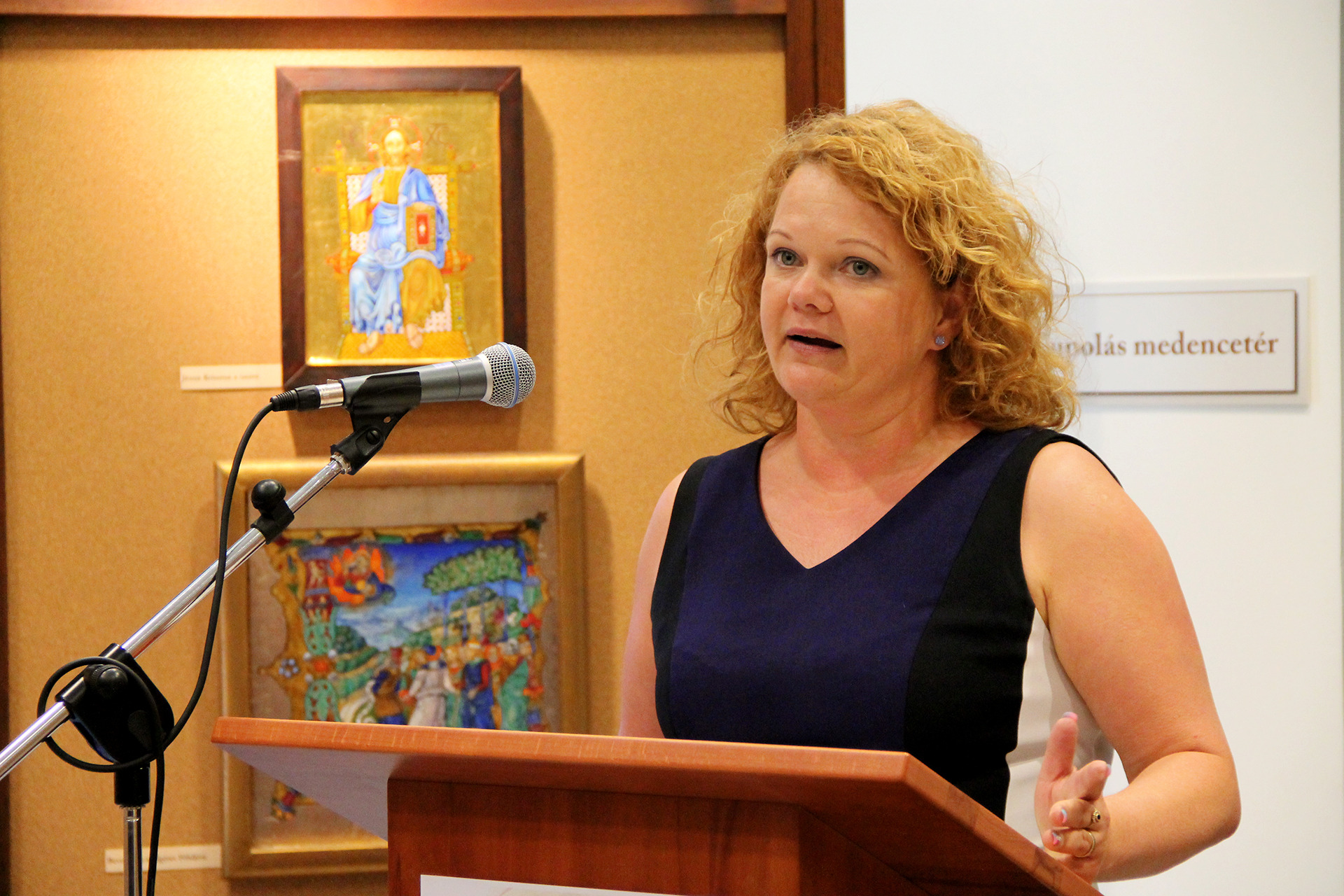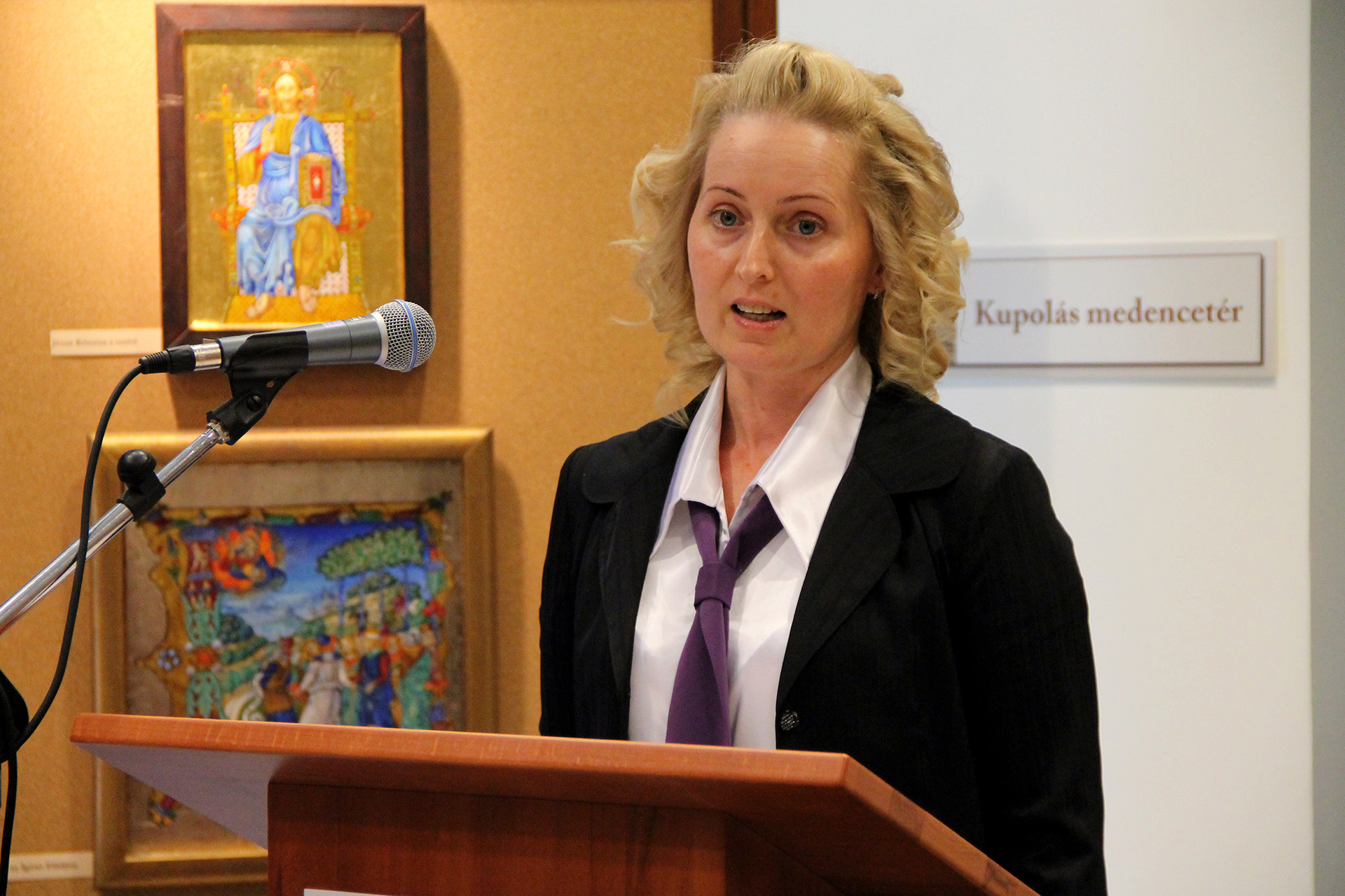 Szabó Erzsébet, a Békéscsabai Ipartestület ügyvezető igazgatója megnyitó beszédében Ruzsa Ilona gondolatait tolmácsolva mutatta be a méhkeréki születésű festőművészt.
