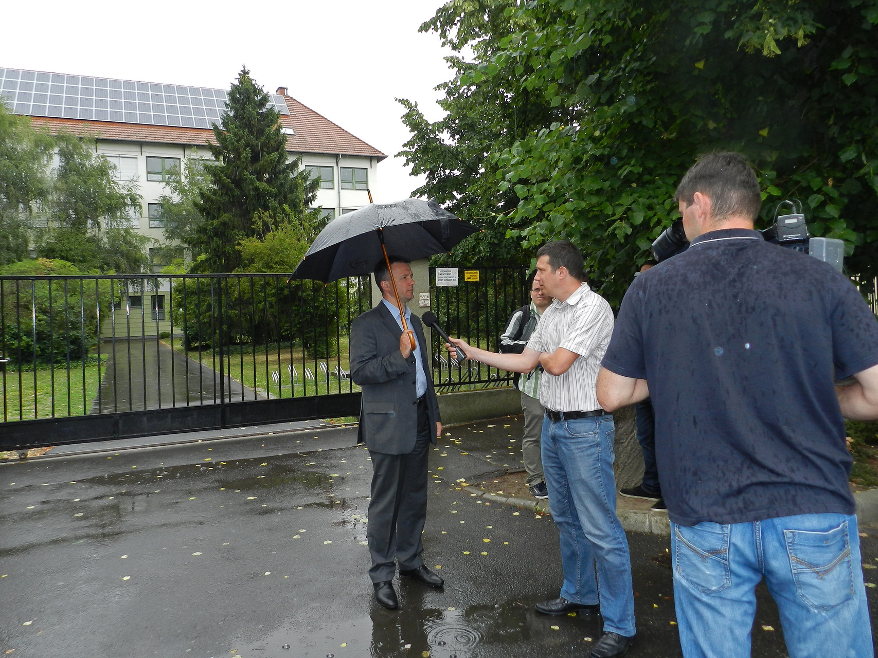 dr. görgényi ernő az erkel ferenc gimnázium előtt tartott sajtótájékoztatót
