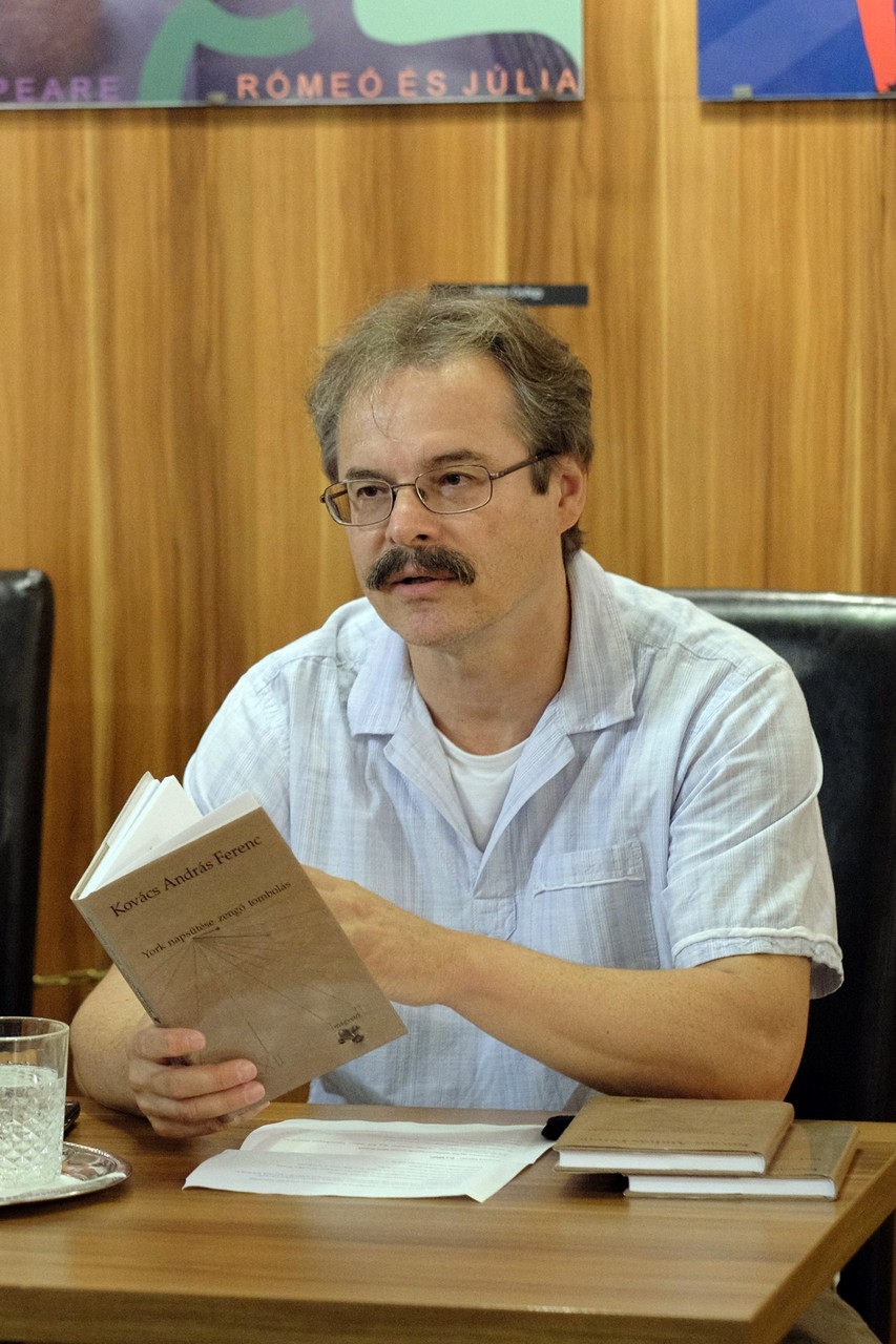 - Ez pedig máris megindokolja, hogy idén Kovács András Ferencnél miért is nem találhattunk volna alkalmasabb vendéget - jegyezte meg Elek Tibor, aki a korábbi években már Esterházy Pétert, Szőcs Gézát, Bereményi Gézát, Varró Dánielt, Nádasdy Ádámot és Márton Lászlót is vendégül látta a kamarateremben.