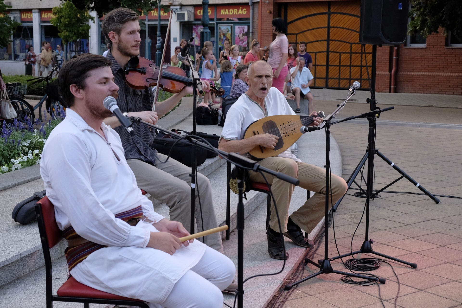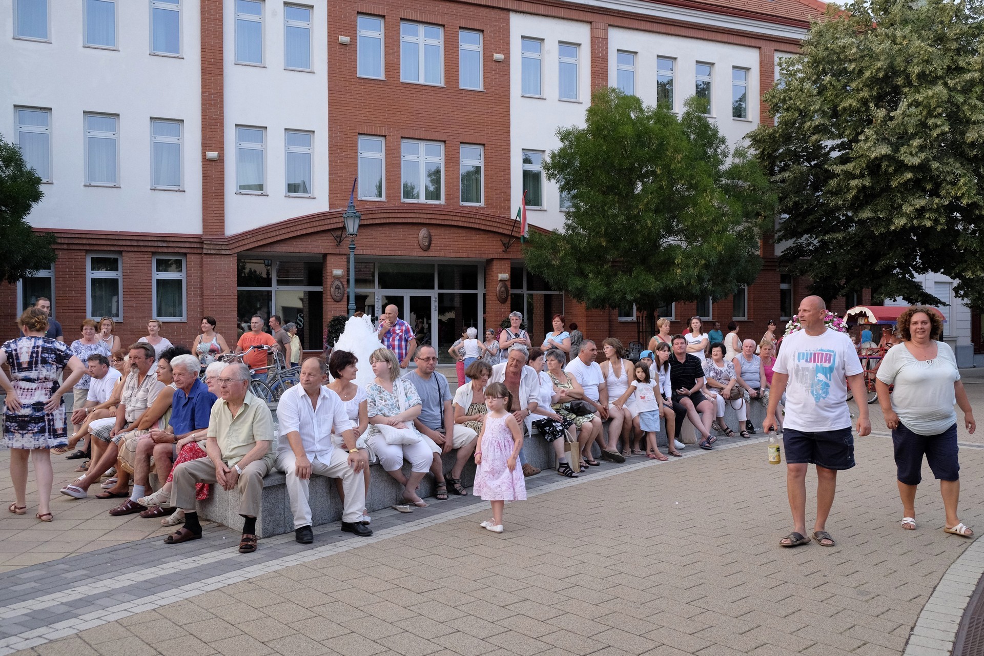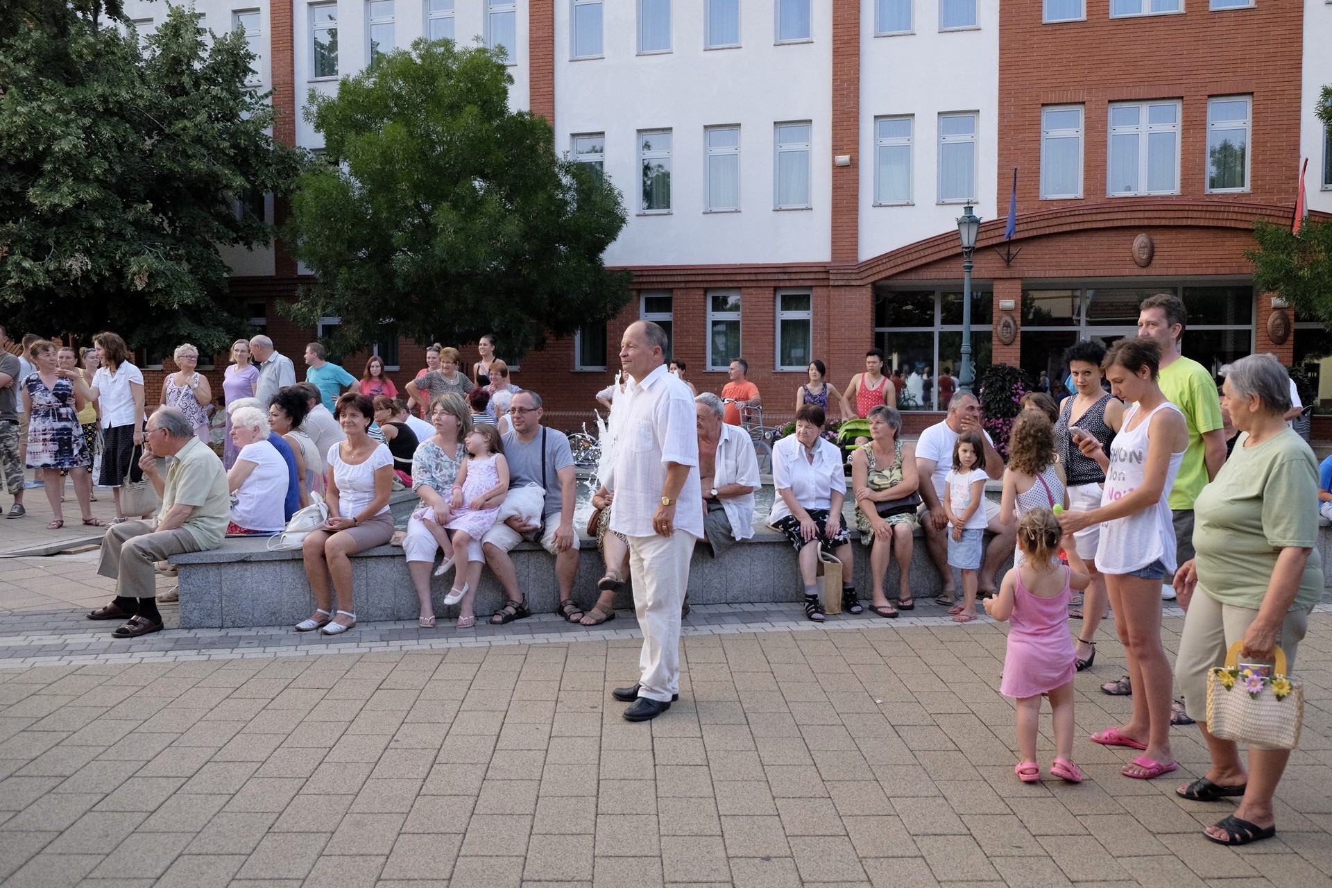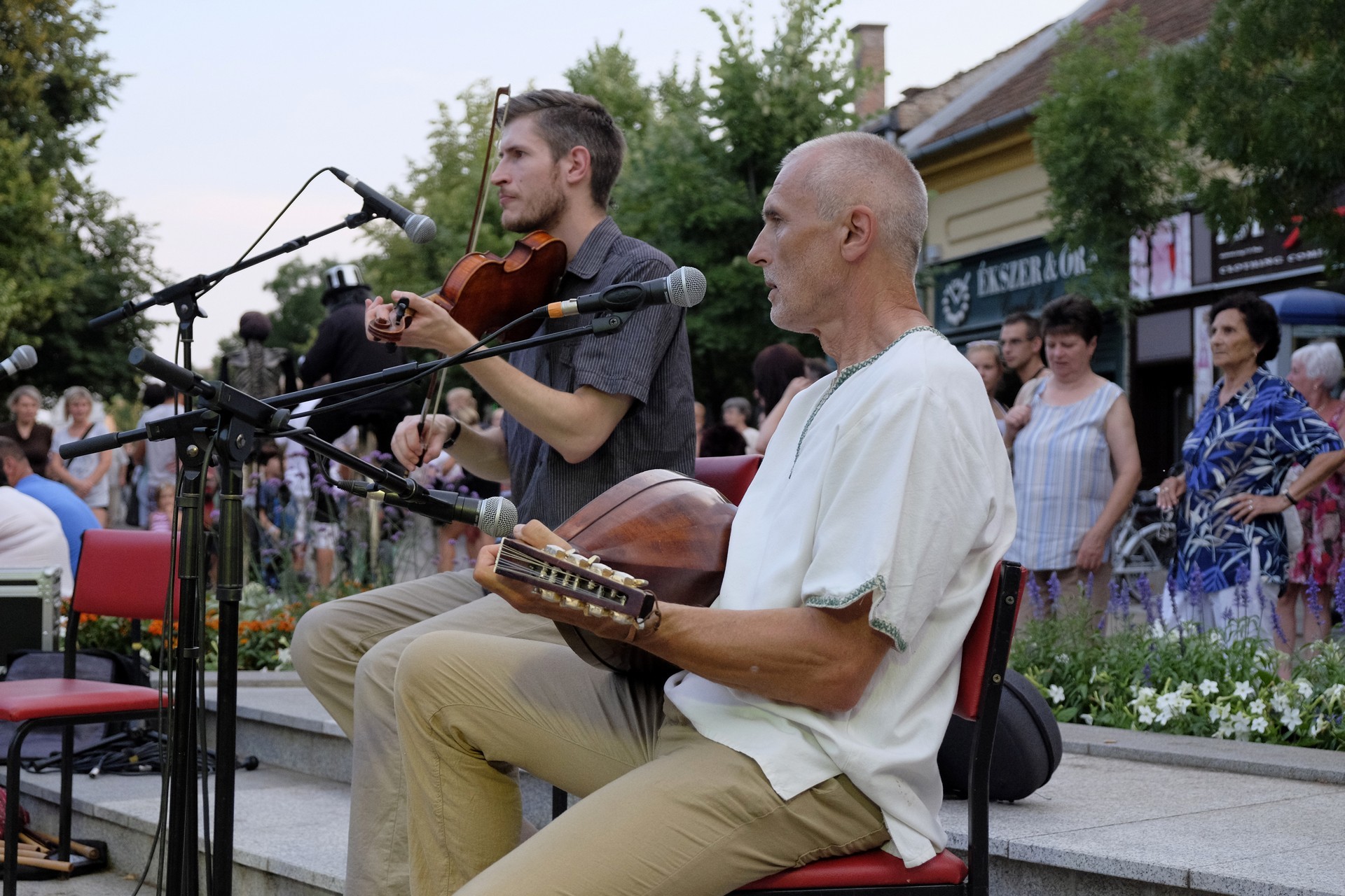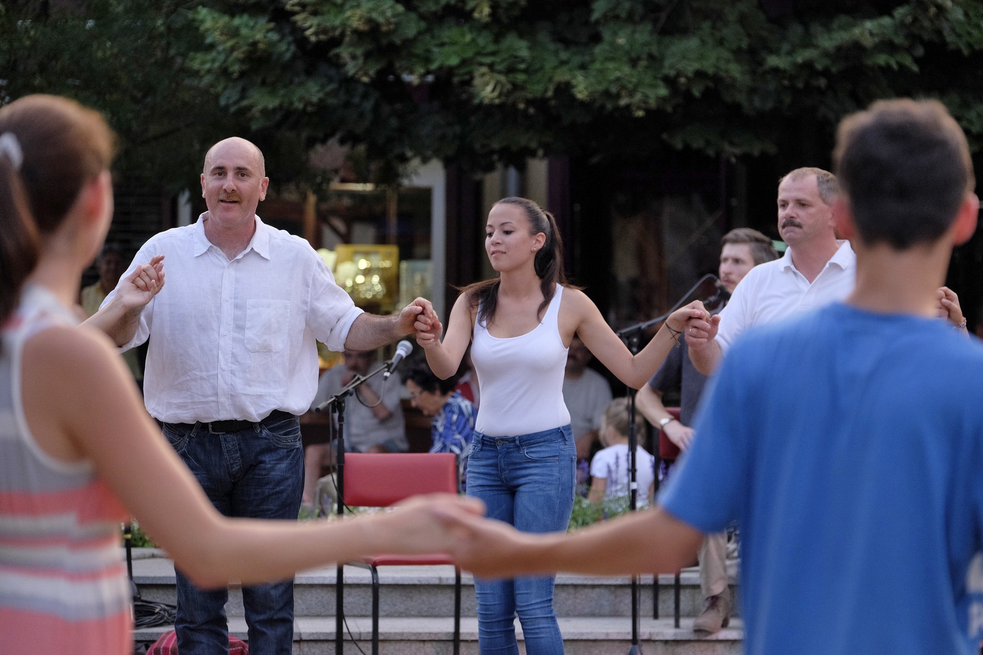 Aznap rekkenő hőség köszöntött ránk, s a lemenő Nap még késő délután is izzasztó erejét fitogtatta előttünk. A fülledt meleg ellenére szépszámú tömeg perdült táncra a téren. A Világórát is körbetáncoló sokaság keménymagját a gyulai Körös Néptáncegyüttes táncosai adták, akik néhány nézelődőt is táncra csábítottak. A csángó magyar táncház Patyi Zoltán művészeti vezető irányításával zajlott, míg a talpalávalóról a később fellépő Mentés Másként Trió gondoskodott.