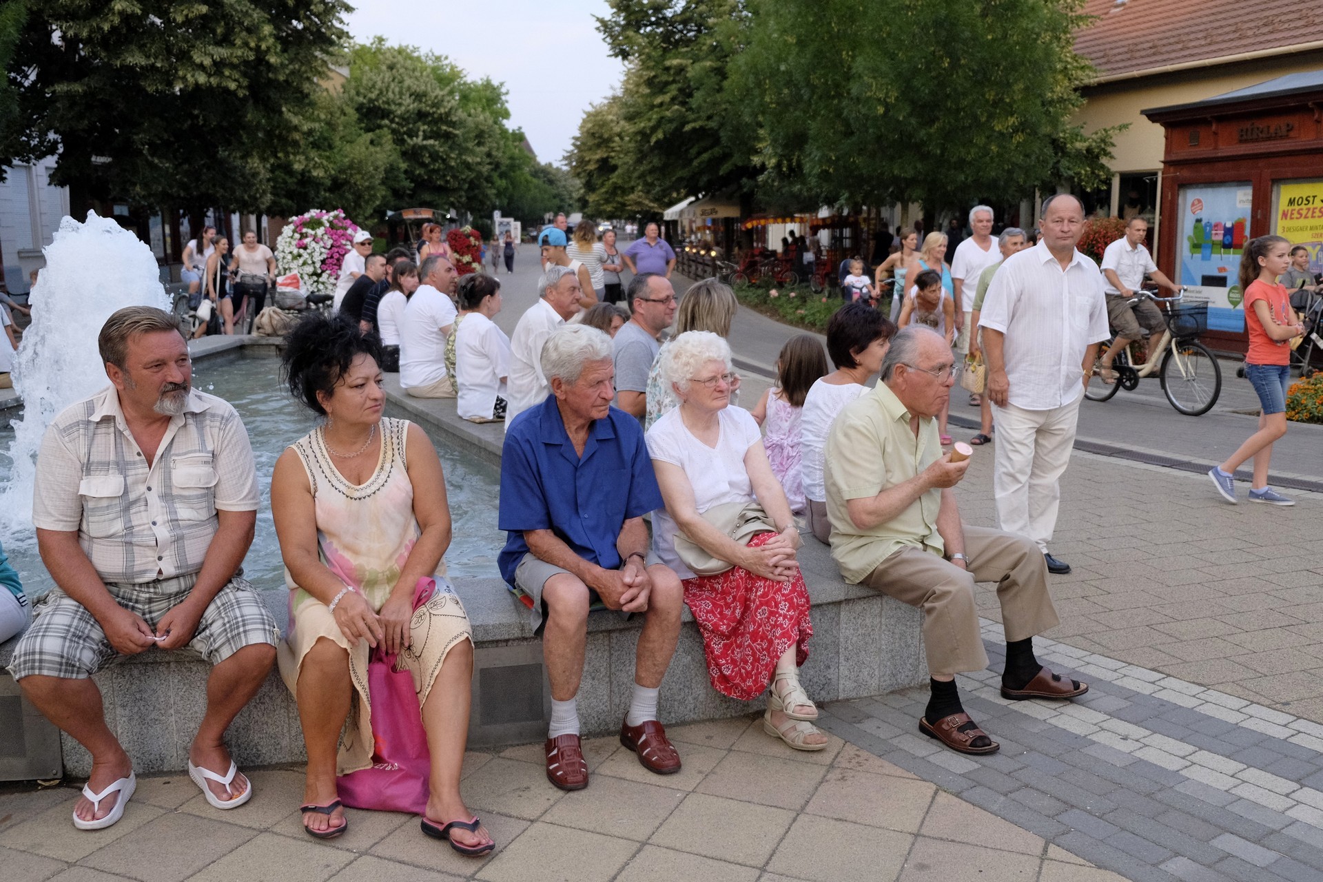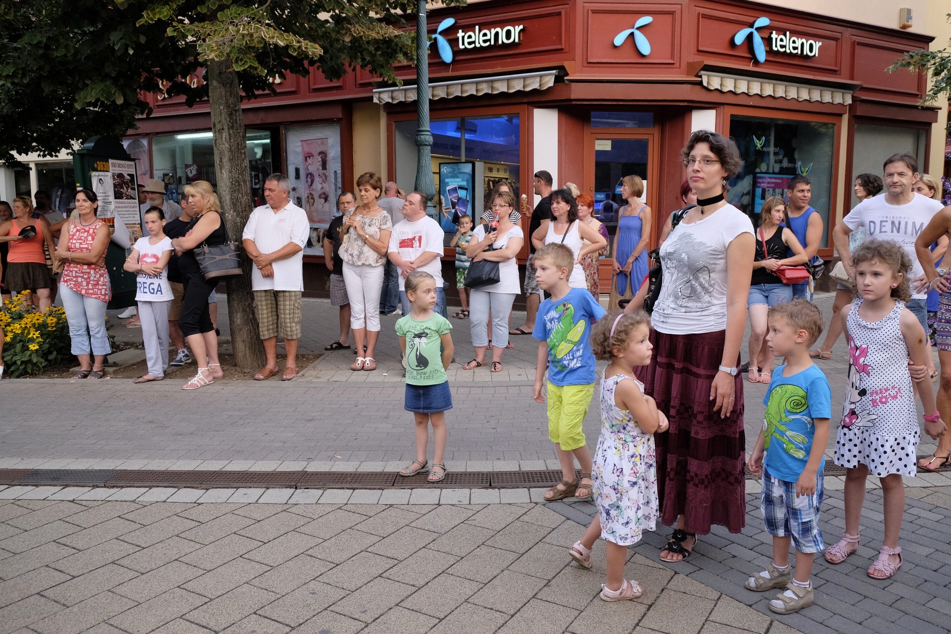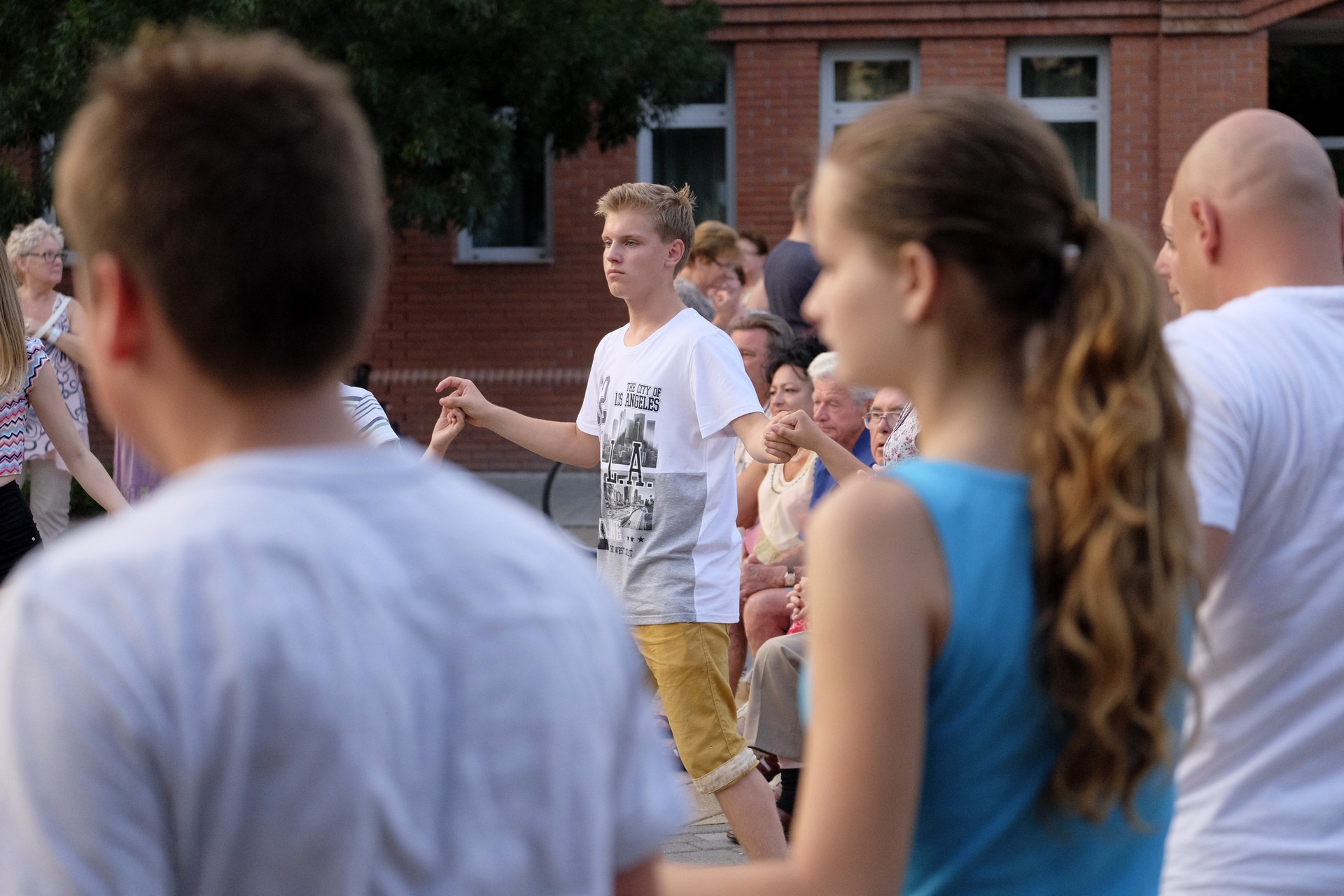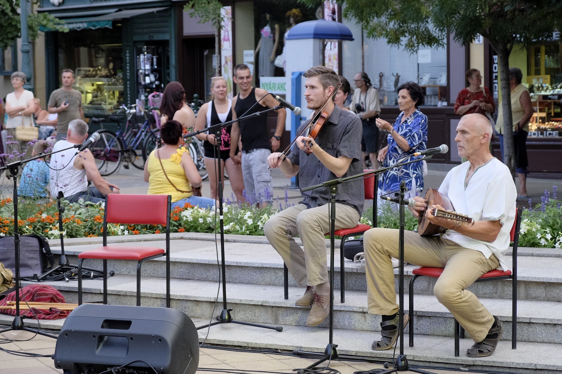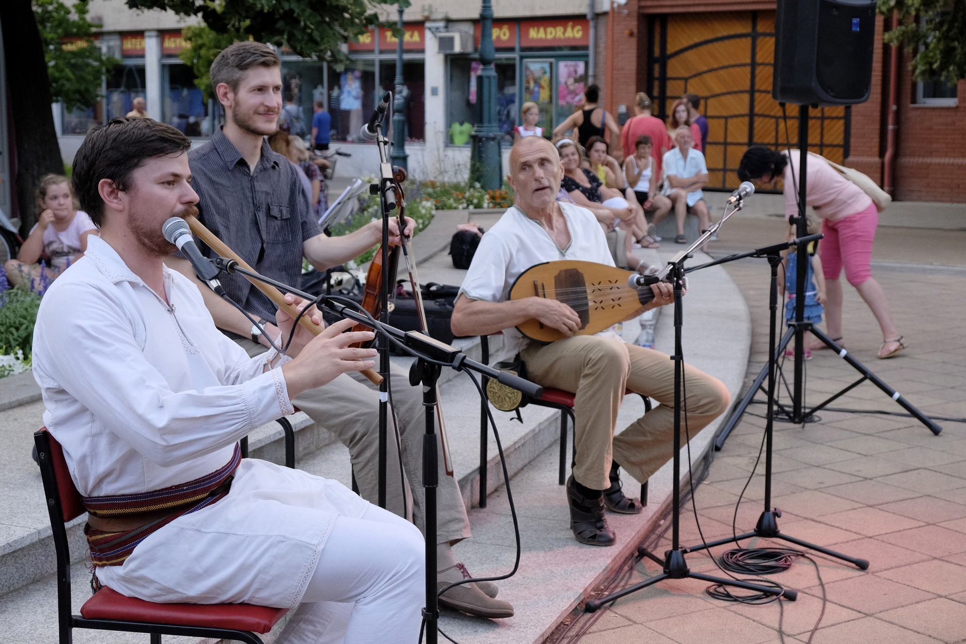 Aznap rekkenő hőség köszöntött ránk, s a lemenő Nap még késő délután is izzasztó erejét fitogtatta előttünk. A fülledt meleg ellenére szépszámú tömeg perdült táncra a téren. A Világórát is körbetáncoló sokaság keménymagját a gyulai Körös Néptáncegyüttes táncosai adták, akik néhány nézelődőt is táncra csábítottak. A csángó magyar táncház Patyi Zoltán művészeti vezető irányításával zajlott, míg a talpalávalóról a később fellépő Mentés Másként Trió gondoskodott.