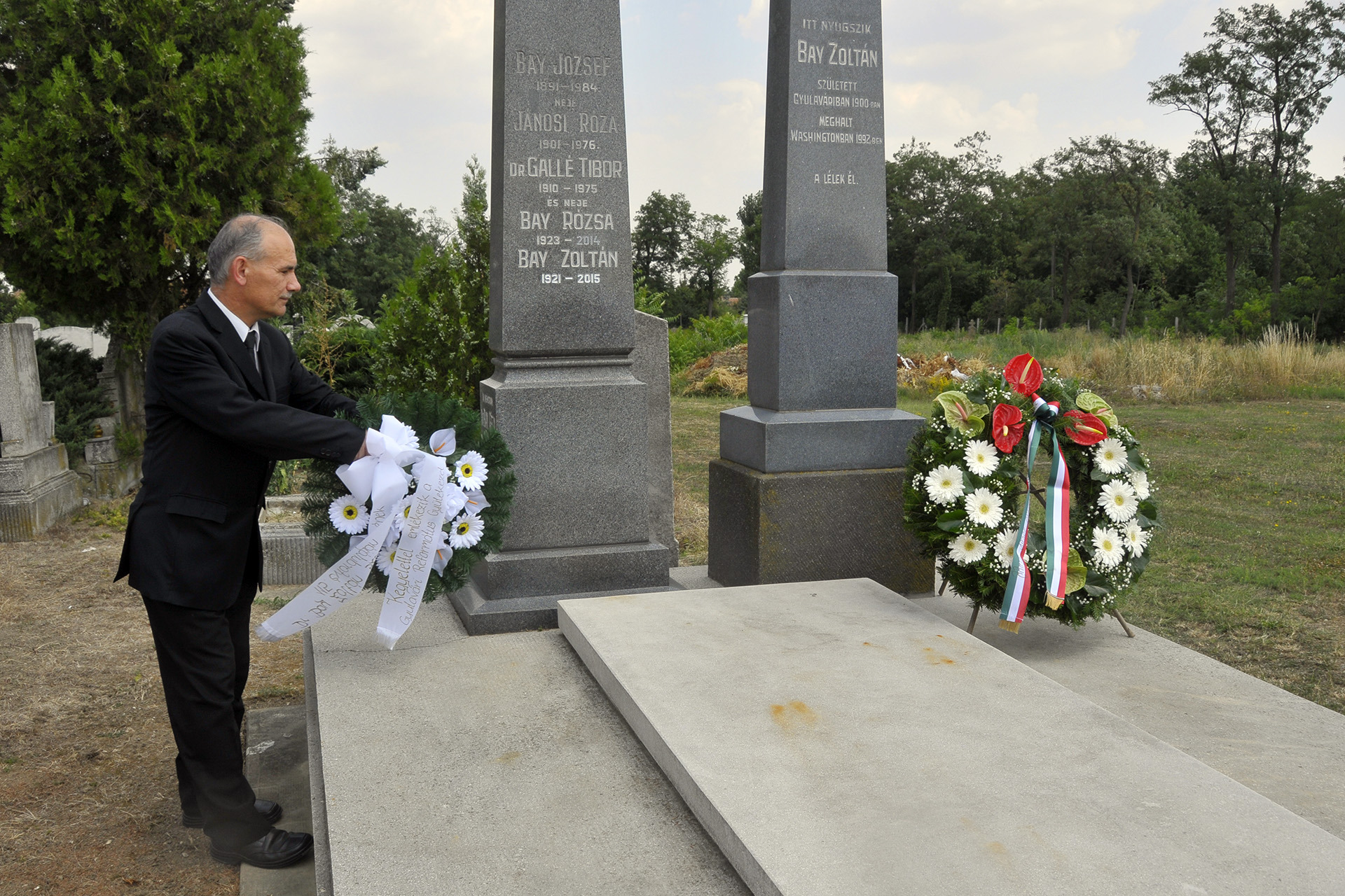 Az 1992-ben elhunyt Bay Zoltán nevéhez fűződik a magyar Hold-radar-kísérlet, valamint a fotoelektron-sokszorozó és a fénysebességre alapozott méterdefiníció feltalálása. A világszerte ismert fizikusra közös imával emlékeztek a temetőben, majd koszorúkat és virágokat helyeztek el a sírjánál.