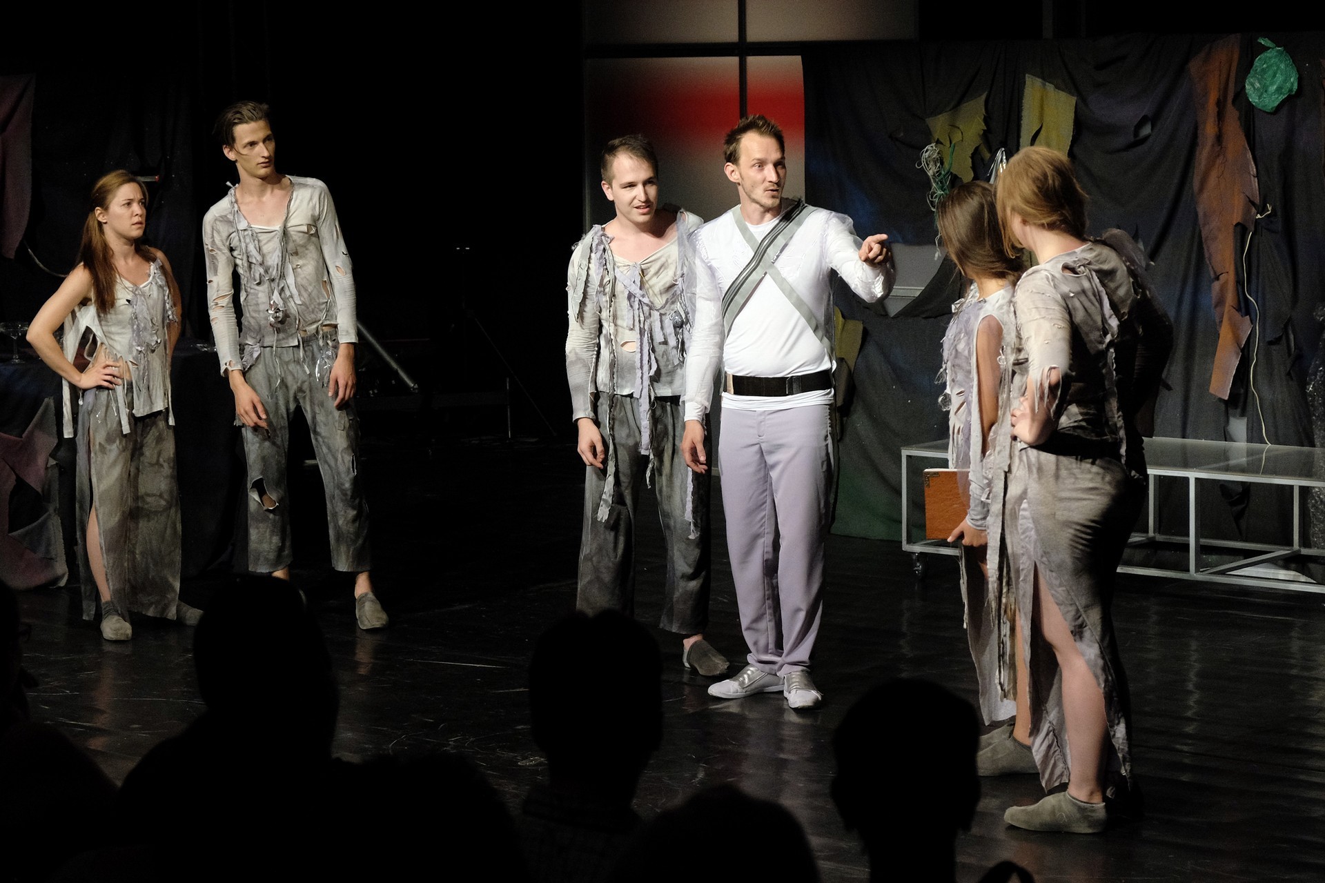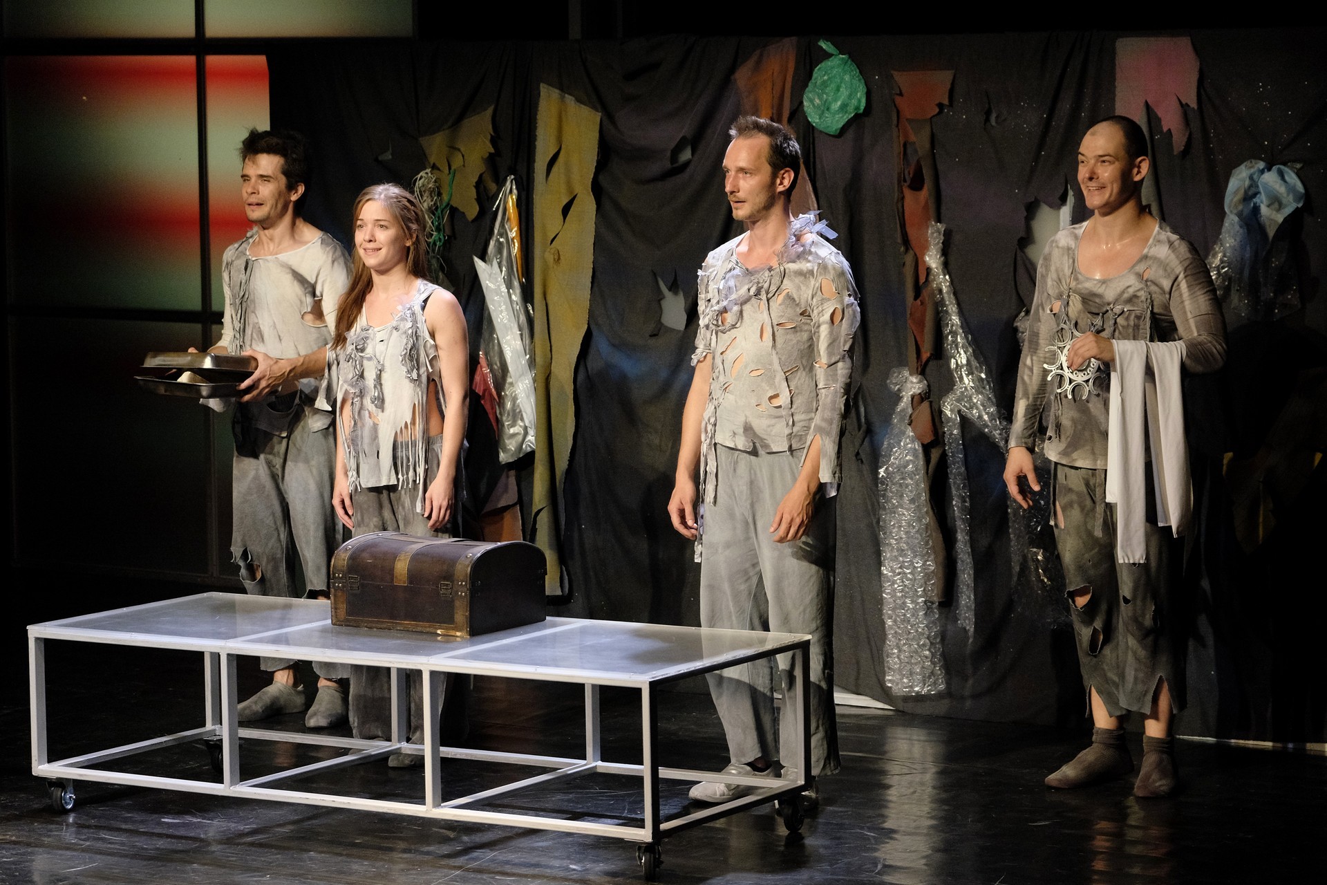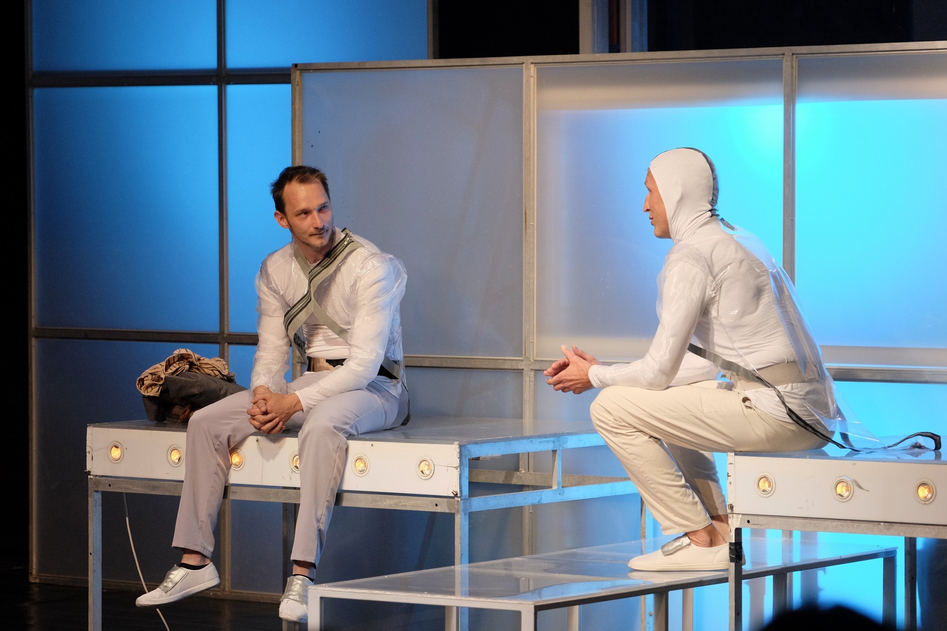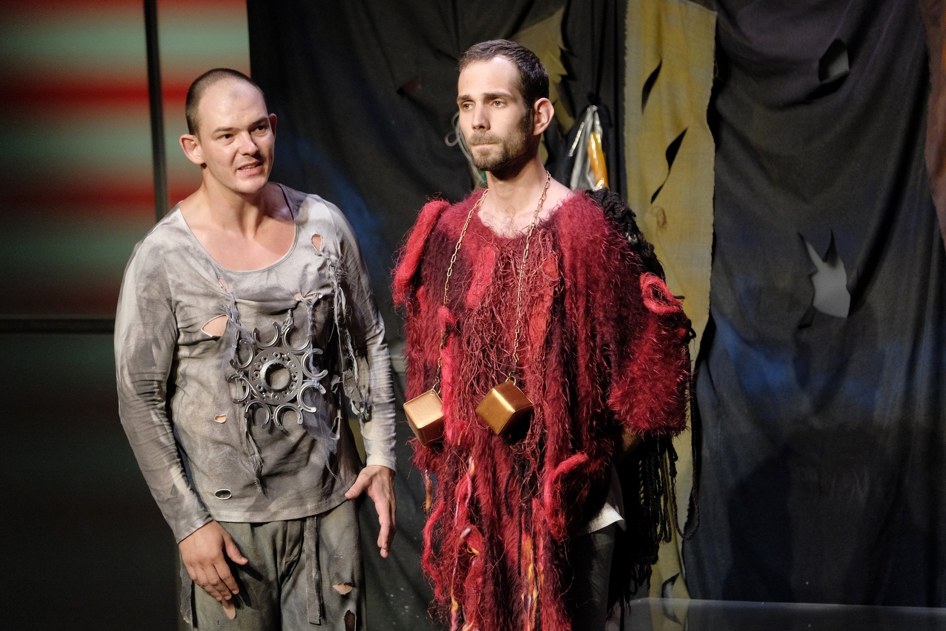A Jászberényi Gábor formálta Gulliver hol félénk, hol felbátorodó értetlenséggel ismerkedik a hinek világával, de szörnyű tökéletességük mögött egyre kevésbé lel tartalmat, mindent sivárnak és egyformának érez. Zatamon, Molnár Csaba alakításában elnéző fölényességgel igyekszik megértetni és elfogadtatni Gulliverrel abszolút optimális életüket: amit te egyformának látsz, az a mi oldalunkon ugyanolyan jó. Ugyanolyan jó, még akkor is, ha az egyformásítás elpusztítja a művészetet, a játékot vagy a szerelemet, amely mindenkor csak a másmilyenségből táplálkozhat. Azt a szerelmet is, amit Gulliver érez Zolema iránt.