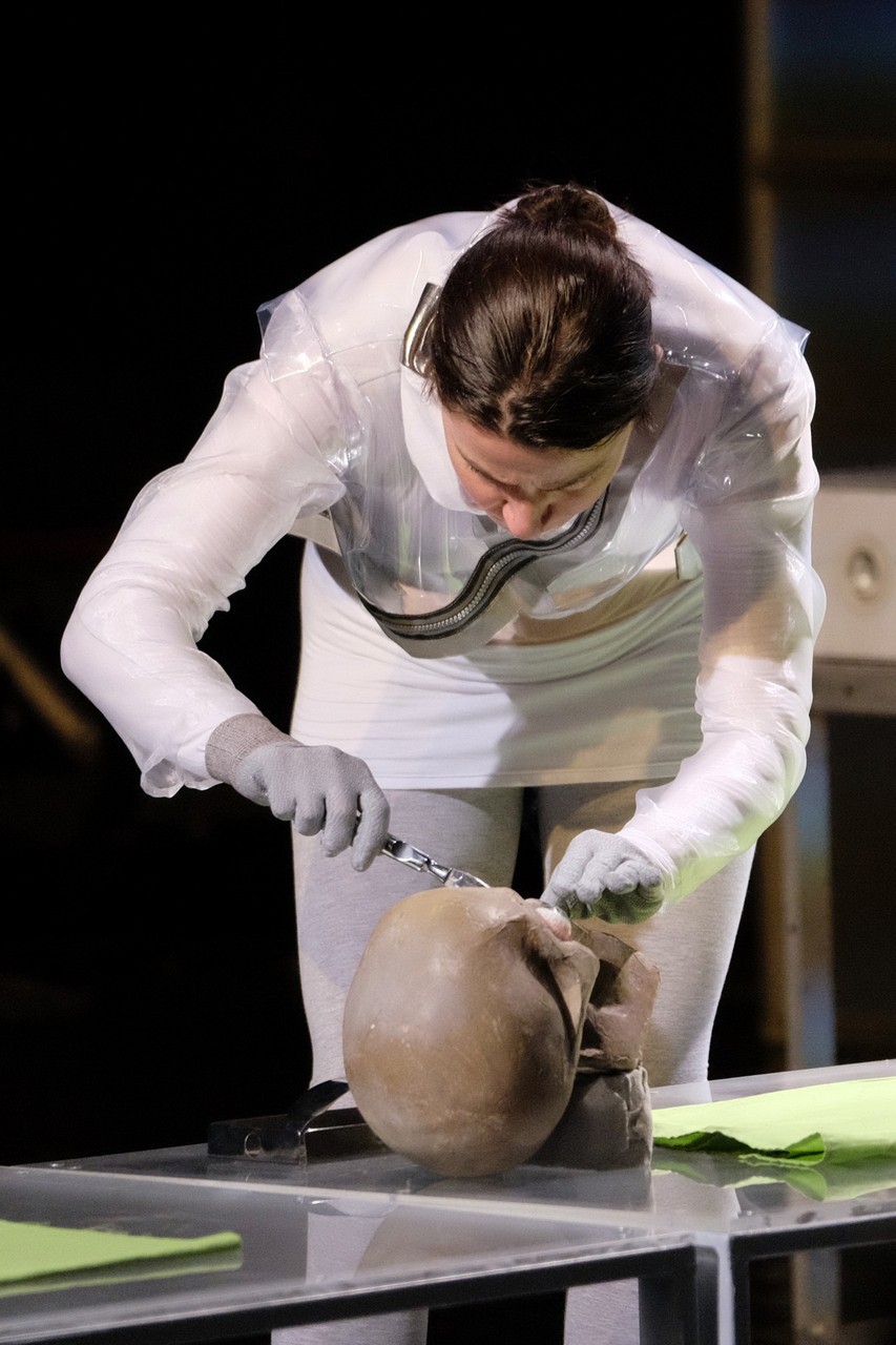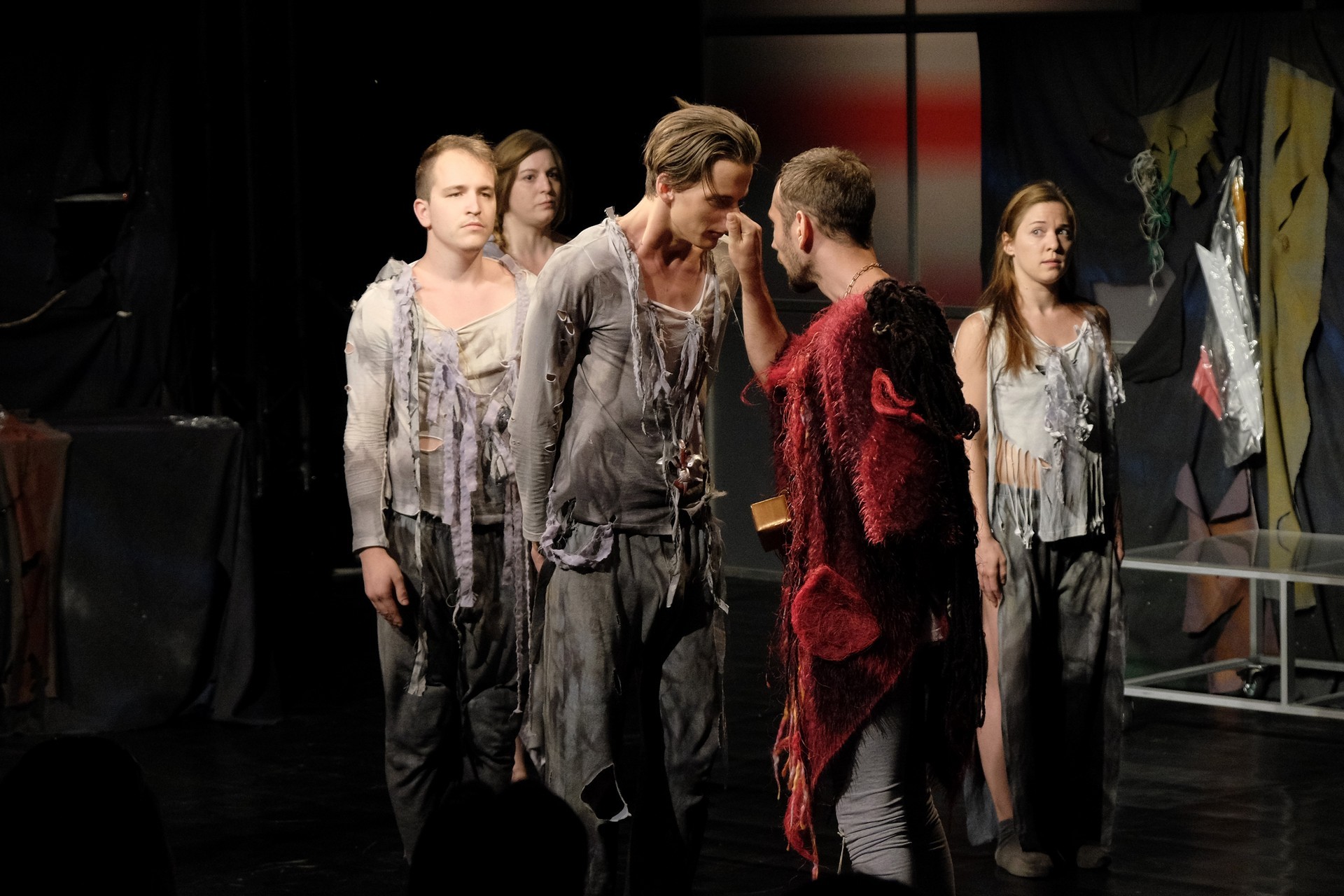 A regénytől eltérően a darabban nagyobb hangsúlyt kap a nő-férfi kapcsolat: Kovács Vanda remekül eleveníti meg a hin lányt, akinek a vágyakozás csak testi szükséglet, aki nem érti és nem érzi az incselkedés szépségét és izgalmát, aki ölelkezés helyett csak nemi munkát végez, akárcsak a többi hin. Azzal, akivel; akkor, amikor a biológia törvényszerűségei diktálják. Bár vannak pillanatok, amikor áttörni látszik Gulliver és Zolema világainak határa, végül a főhős a hullafeldolgozó üzemben ténykedő érzéketlen hin leánytól visszavonhatatlanul eltávolodik.