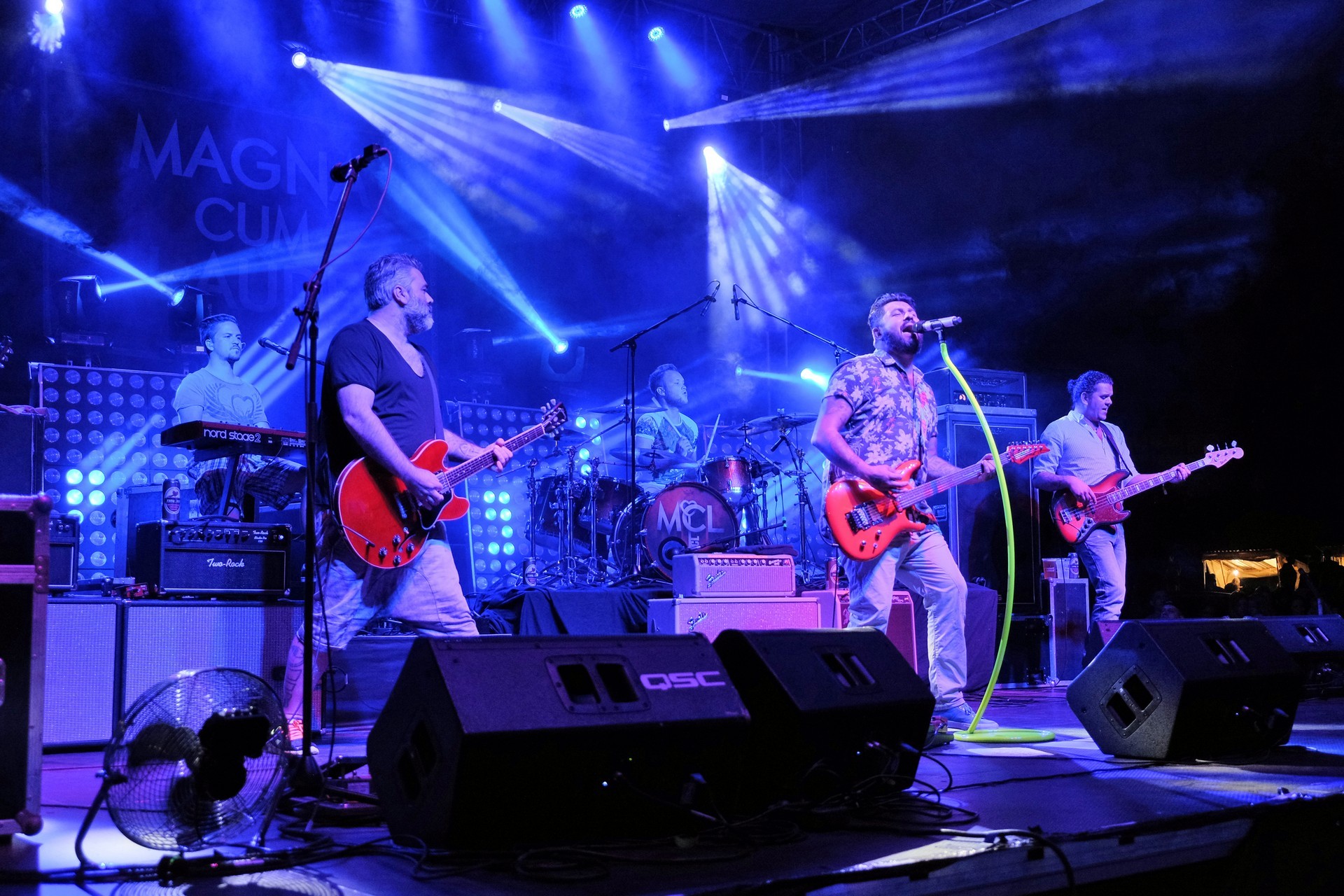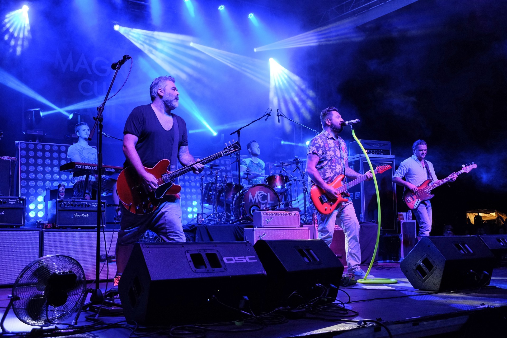 A Magna Cum Laude – Mező Mihály (ének, gitár), Szabó Tibor (szólógitár, vokál), Kara Misa (basszusgitár), Lesták Márton (billentyű, vokál) és Török Máté (dob) – feszített tempójú műsorral örvendeztette meg a gyulai nagyérdeműt. A számok között épp csak egy lélegzetvételnyi idő maradt, s máris újabb nótára kezdtek rá a fiúk.