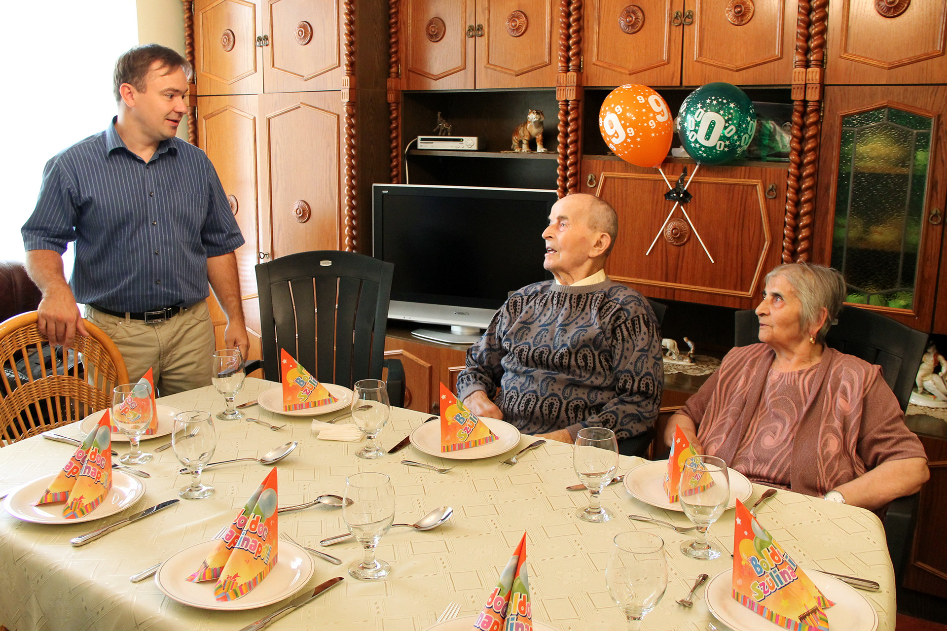 Szerető családja körében ünnepelte 90. születésnapját Turbucz Gergely, akit a jeles alkalomból a gyulai városvezetés is meglátogatott. Kónya István alpolgármester, dr. Varga Erzsébet aljegyző és Mittag Mónika a körzet képviselője virágcsokorral, gyümölcstortával és a miniszterelnök által aláírt emléklappal ajándékozták meg a szépkorú ünnepeltet.