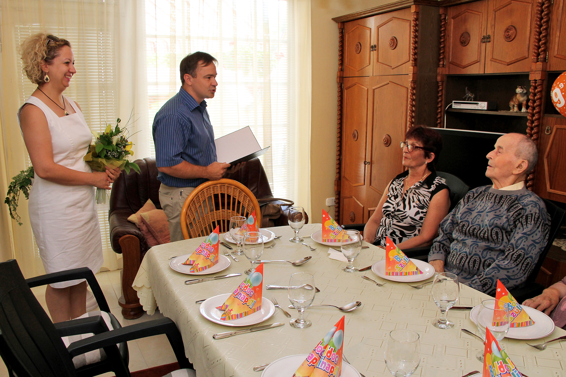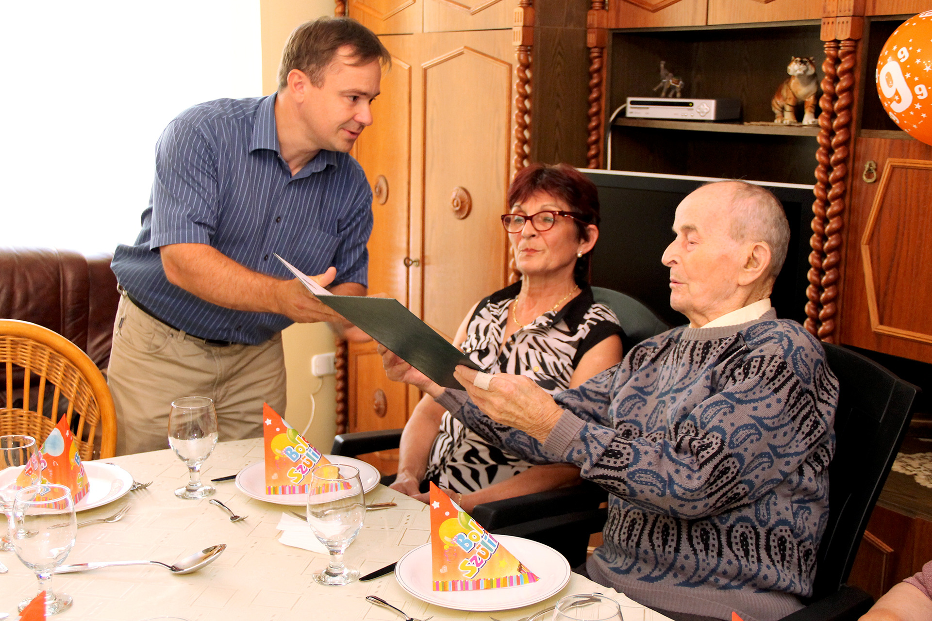 a 90 éves Turbucz Gergelyt köszöntötte a gyulai városvezetés
