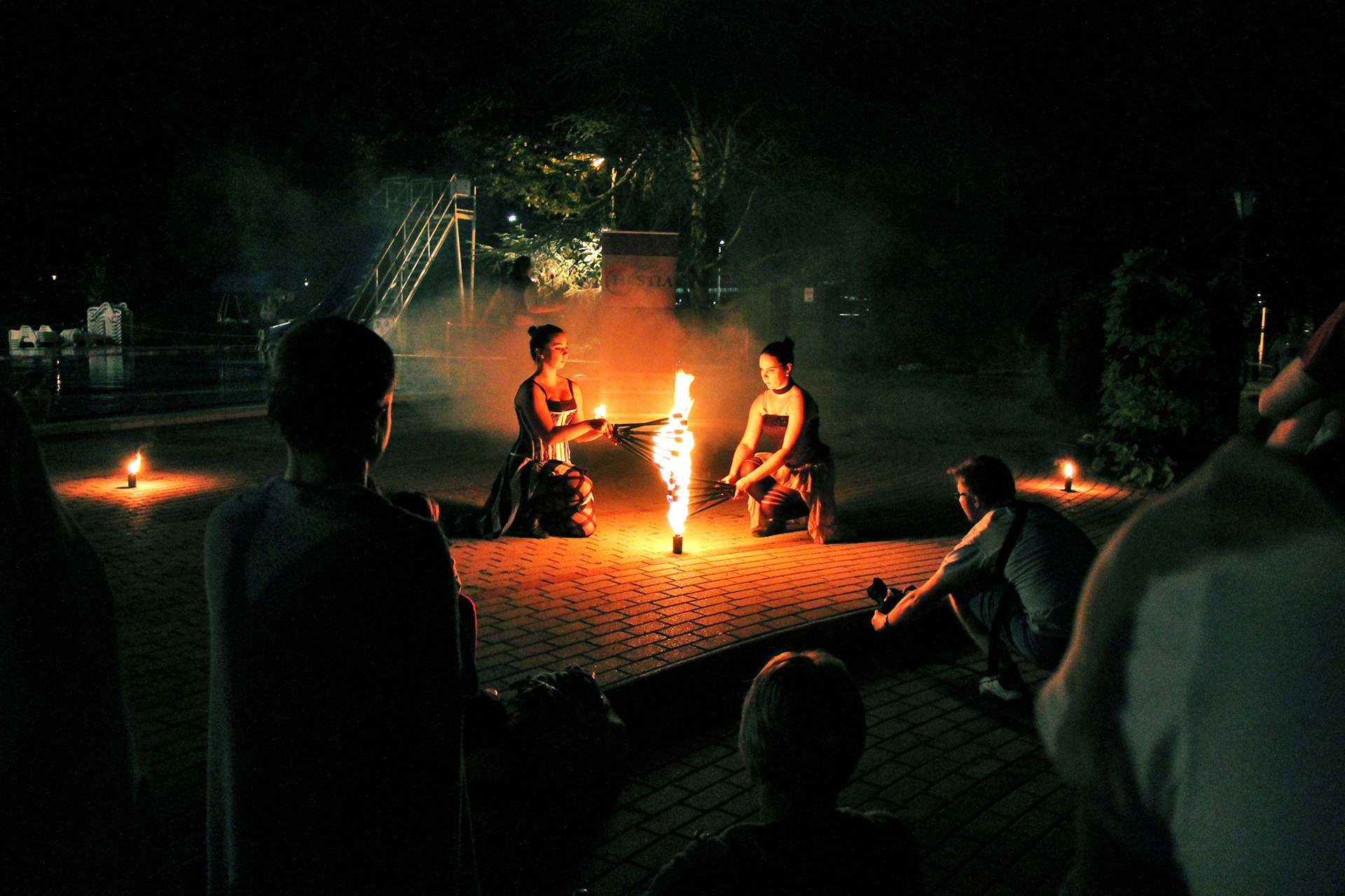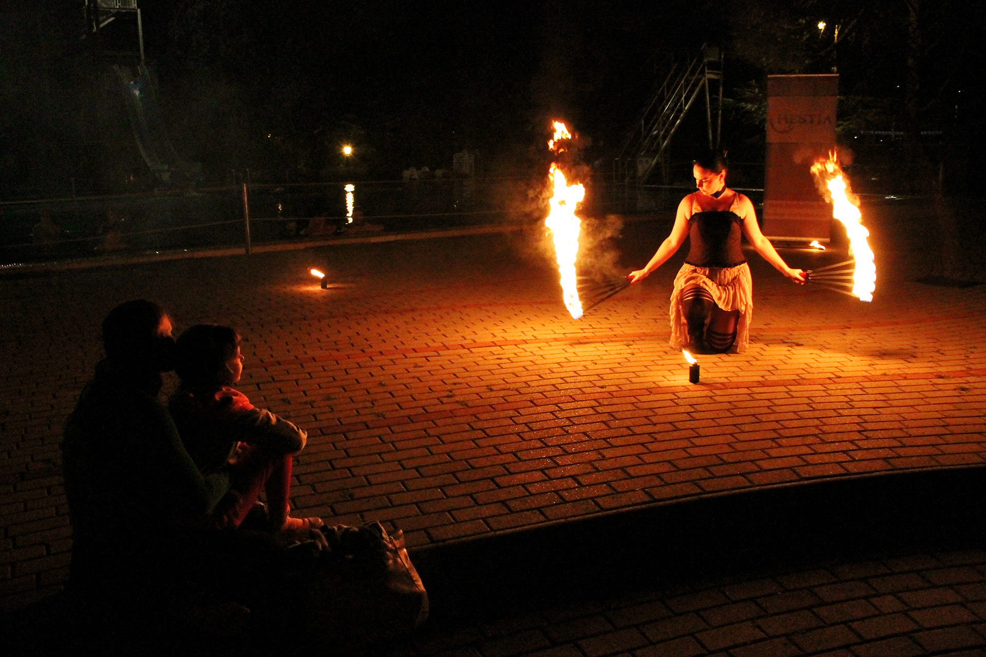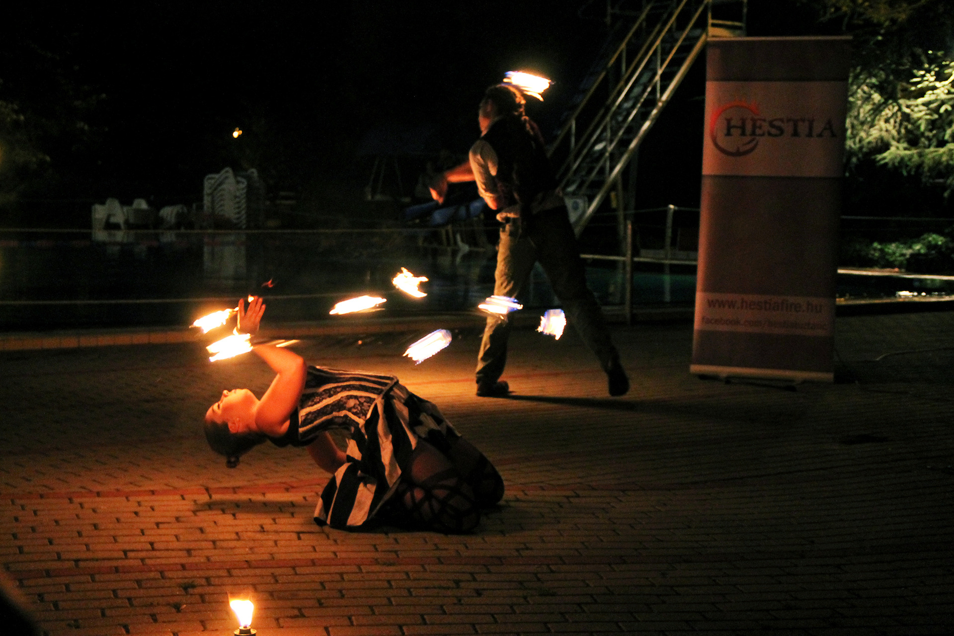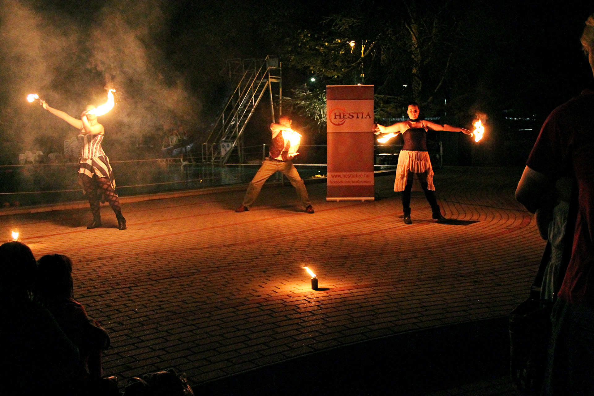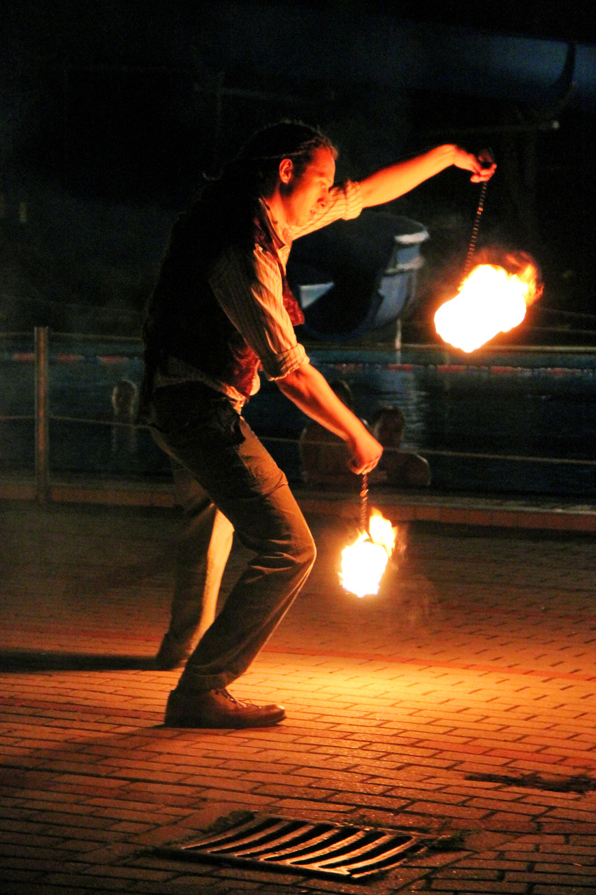 Ennek ellenére persze szép számmal akadtak vállalkozó szellemű látogatók is, akik fittyet hányva a hűvös időre, a trópusi vízpartok miliőjét idéző bár helyett inkább a fürdőzést választották. A strandolók java a melegebb gyógyvízben mártózott meg, míg a többiek a másik két medencében lubickoltak, s fél óránként a „hullámokat is meglovagolták”. 10 óra fele a szentesi Hestia tűzzsonglőr csapat jóvoltából egy látványos tűz show "melengette a résztvevőket".