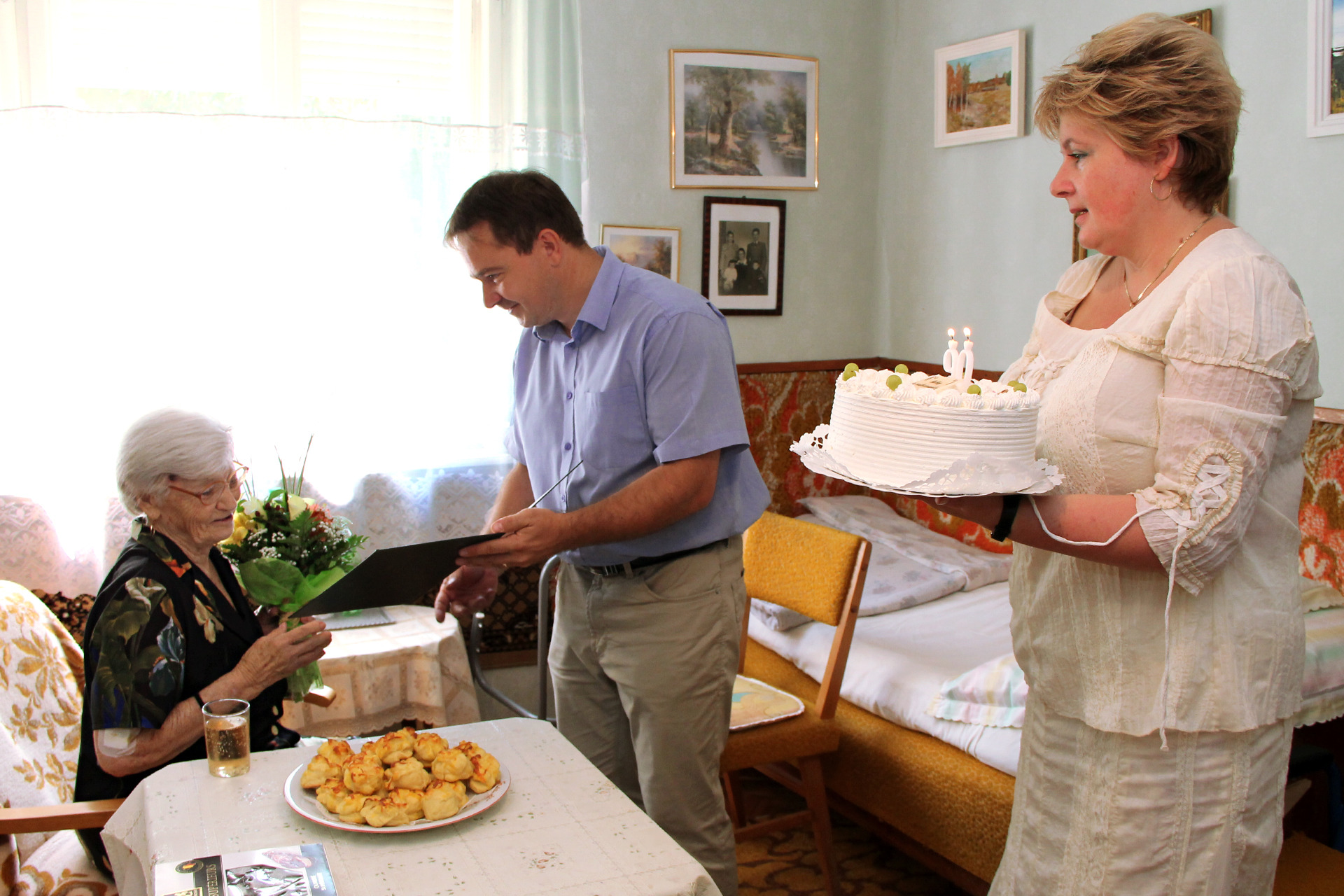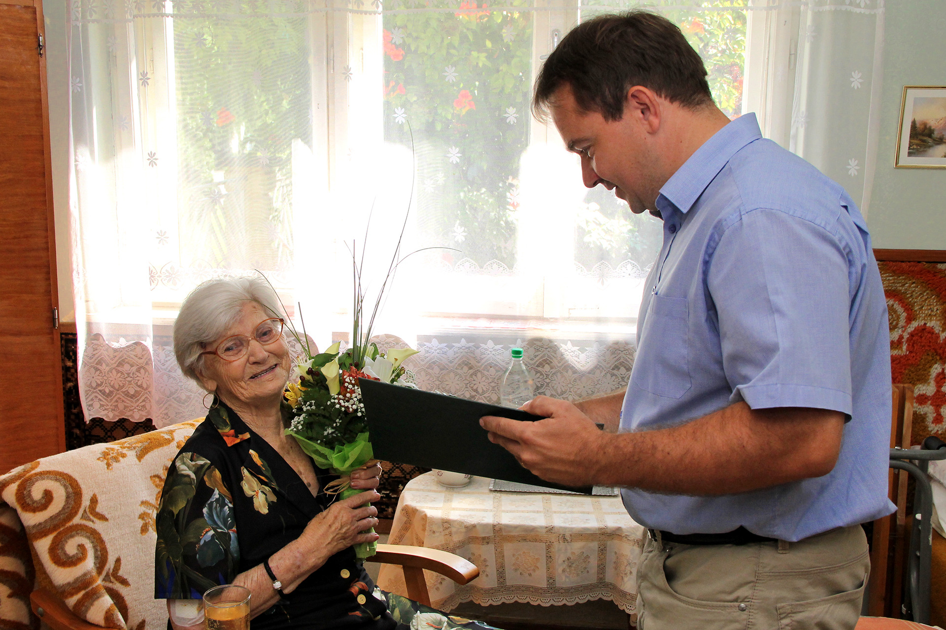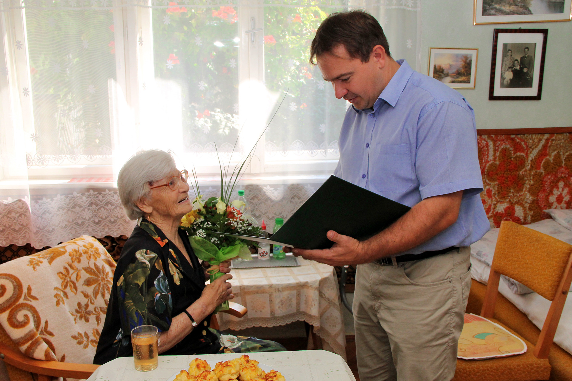 a 90 éves Szilágyi Györgynét köszöntötte a gyulai városvezetés
