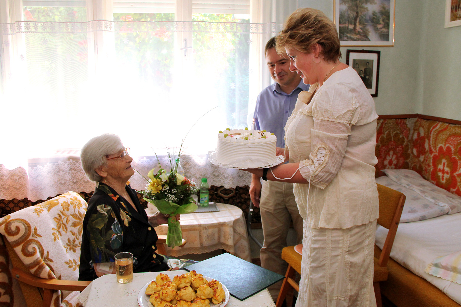 90. születésnapja alkalmából Szilágyi Györgynét lepte meg otthonában a gyulai városvezetés augusztus 6-án. Az ünnep okán Kónya István alpolgármester, Becsyné dr. Szabó Márta címzetes főjegyző és Kiss Tamásné önkormányzati képviselő virágcsokorral, a miniszterelnök által aláírt emléklappal és joghurttortával ajándékozta meg a szépkorú asszonyt.