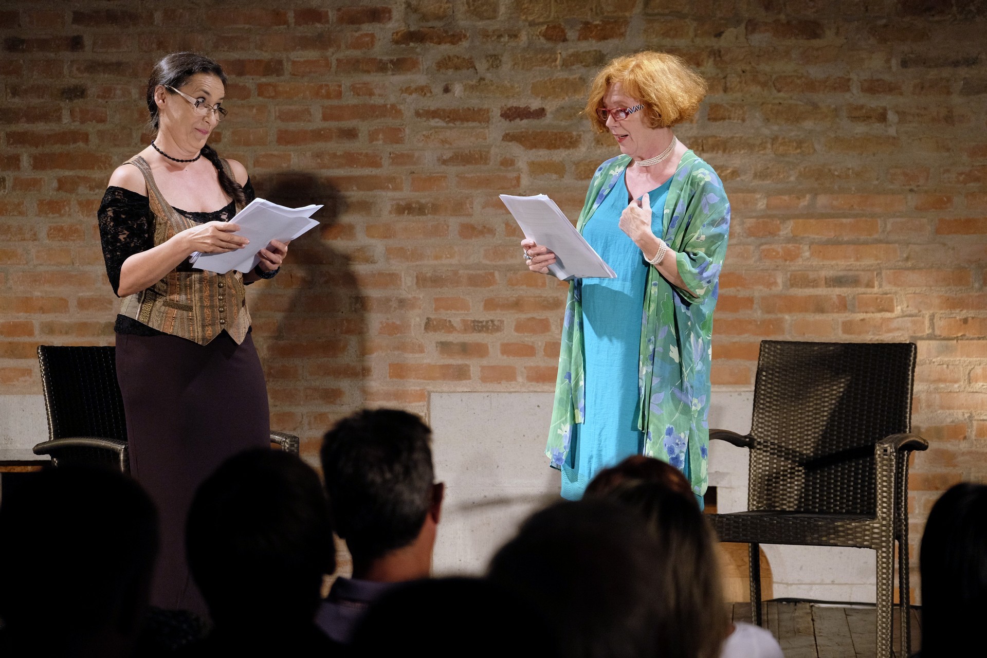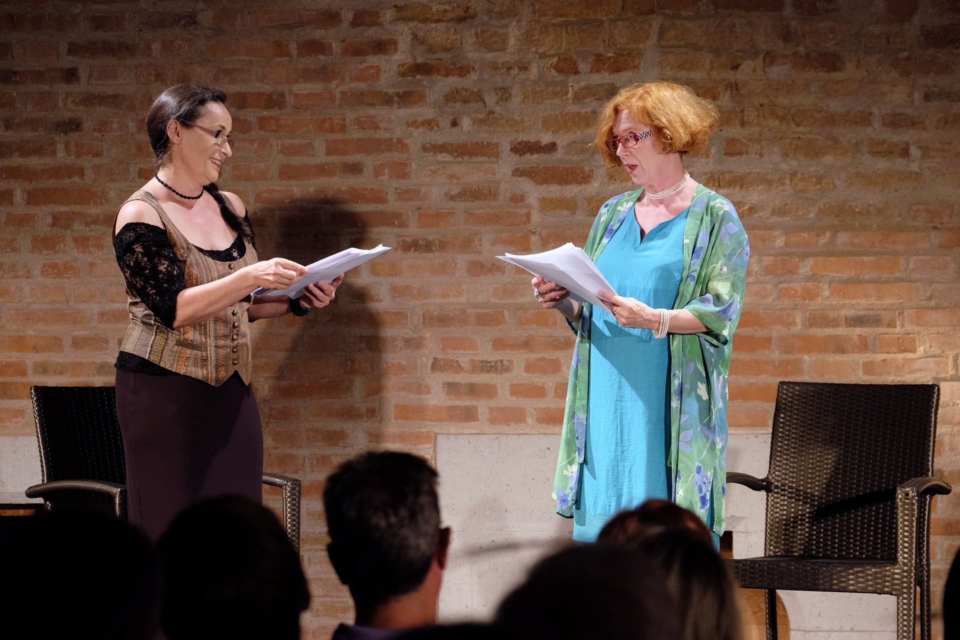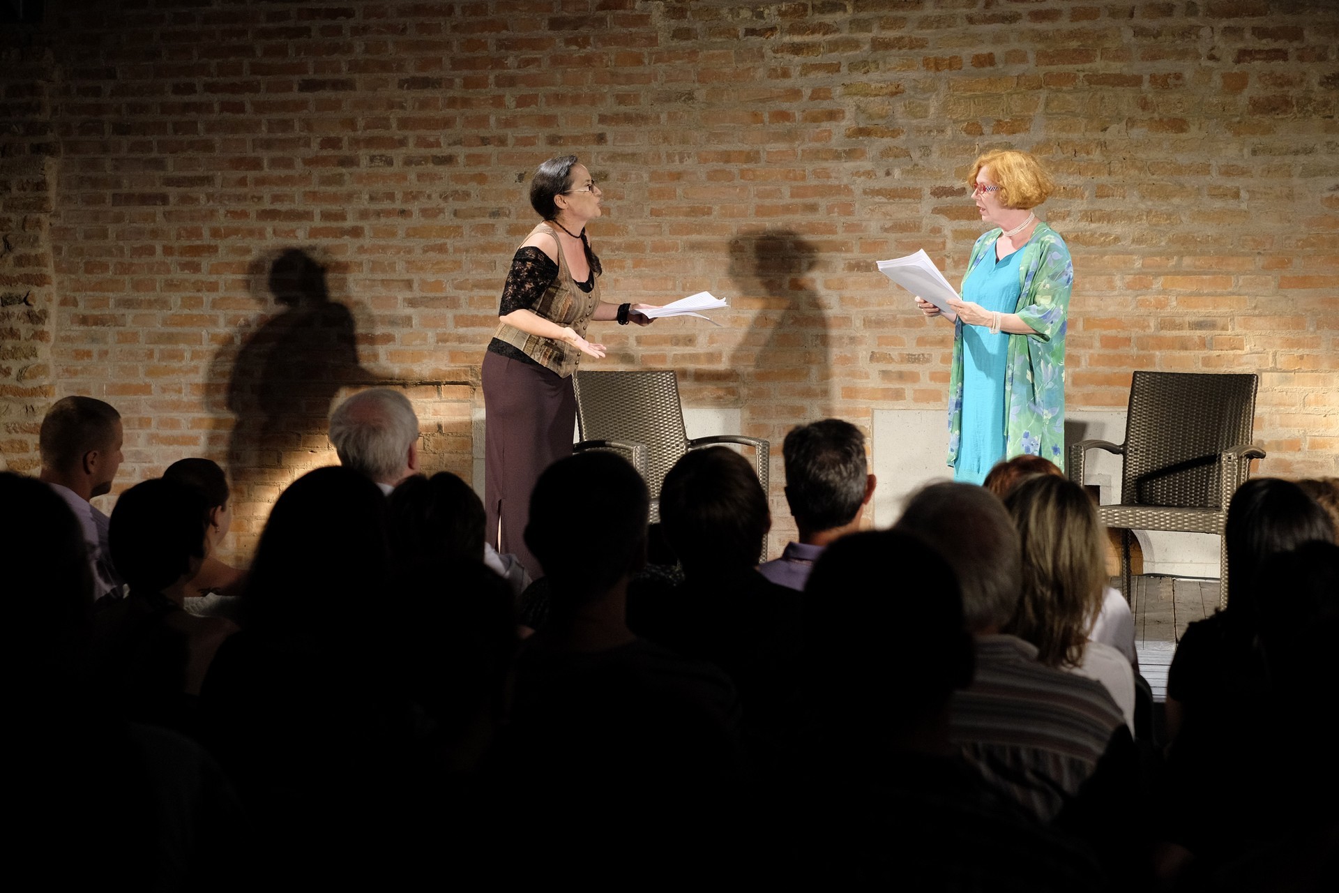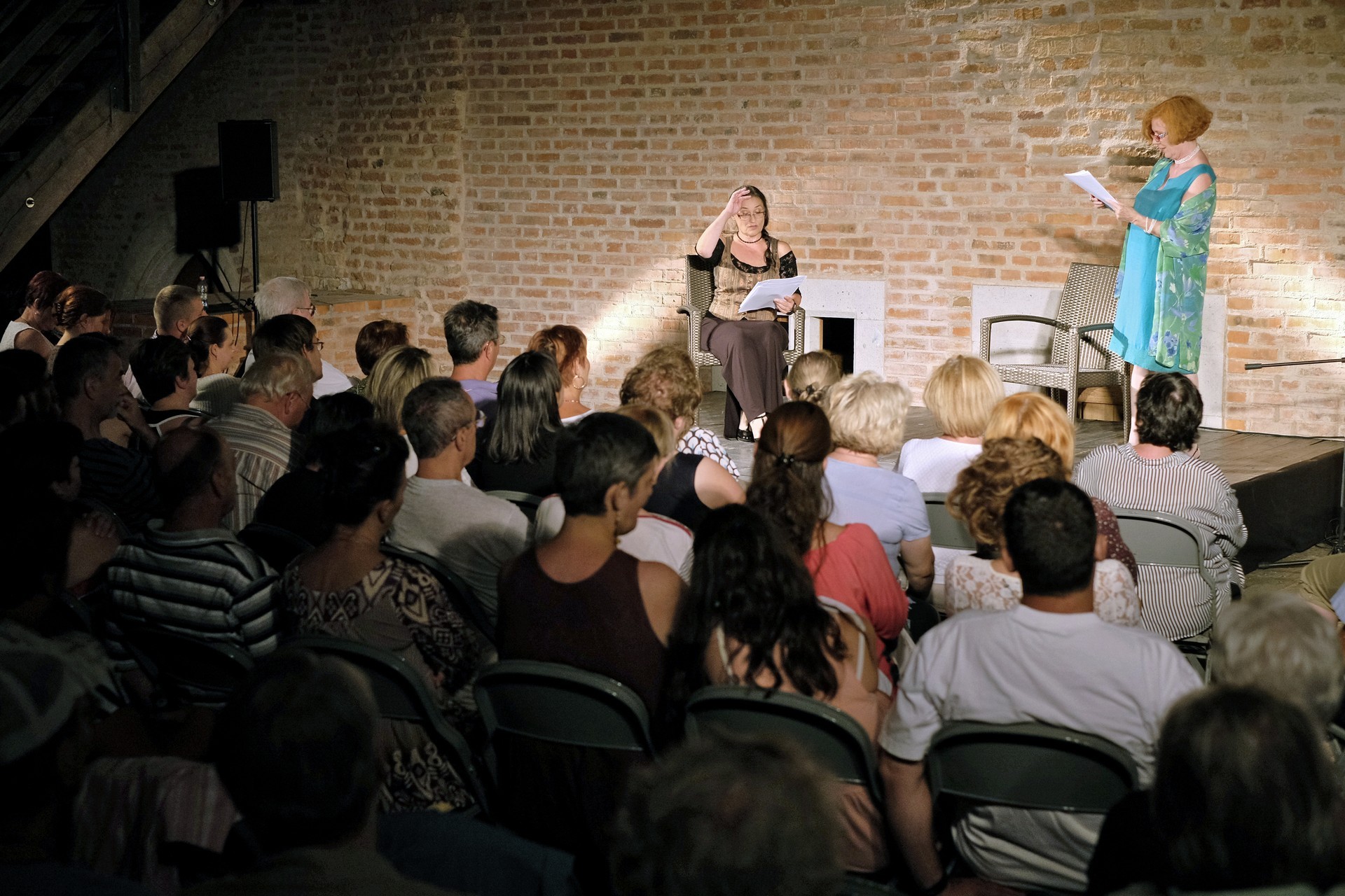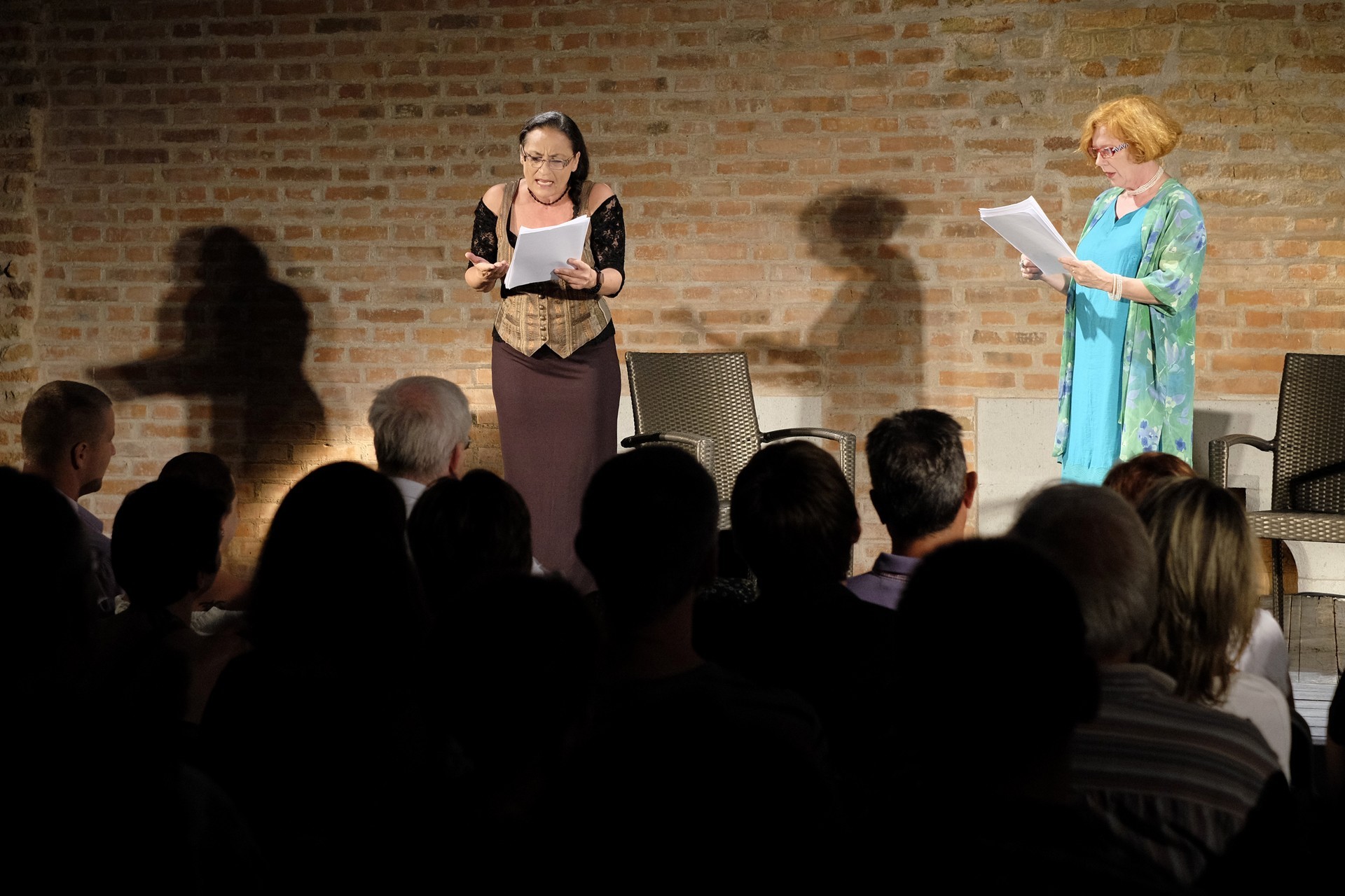A Gyulai Várszínház hetedik éve rendezett felolvasó-színházi estjén rendszerint kortárs szerzők műveit mutatják be. A gyulai várudvaron elhelyezett pódium előtt helyet foglaló közönség valódi ősbemutatónak lehetett tanúja, hiszen Szakonyi Károly Két nő címet viselő vígjátékával eddig még soha sehol nem találkozhatott a nagyérdemű, és arra sem volt még példa, hogy a szerző is részt vegyen az előadásban. Márpedig Szakonyi Károly ezúttal személyesen instruálta kétszereplős vígjátékának művészeit, Ráckevei Annát és a legelső felolvasószínházban – Térey János Jeremiás avagy Isten hidege – szintén részt vevő Takács Katalint.