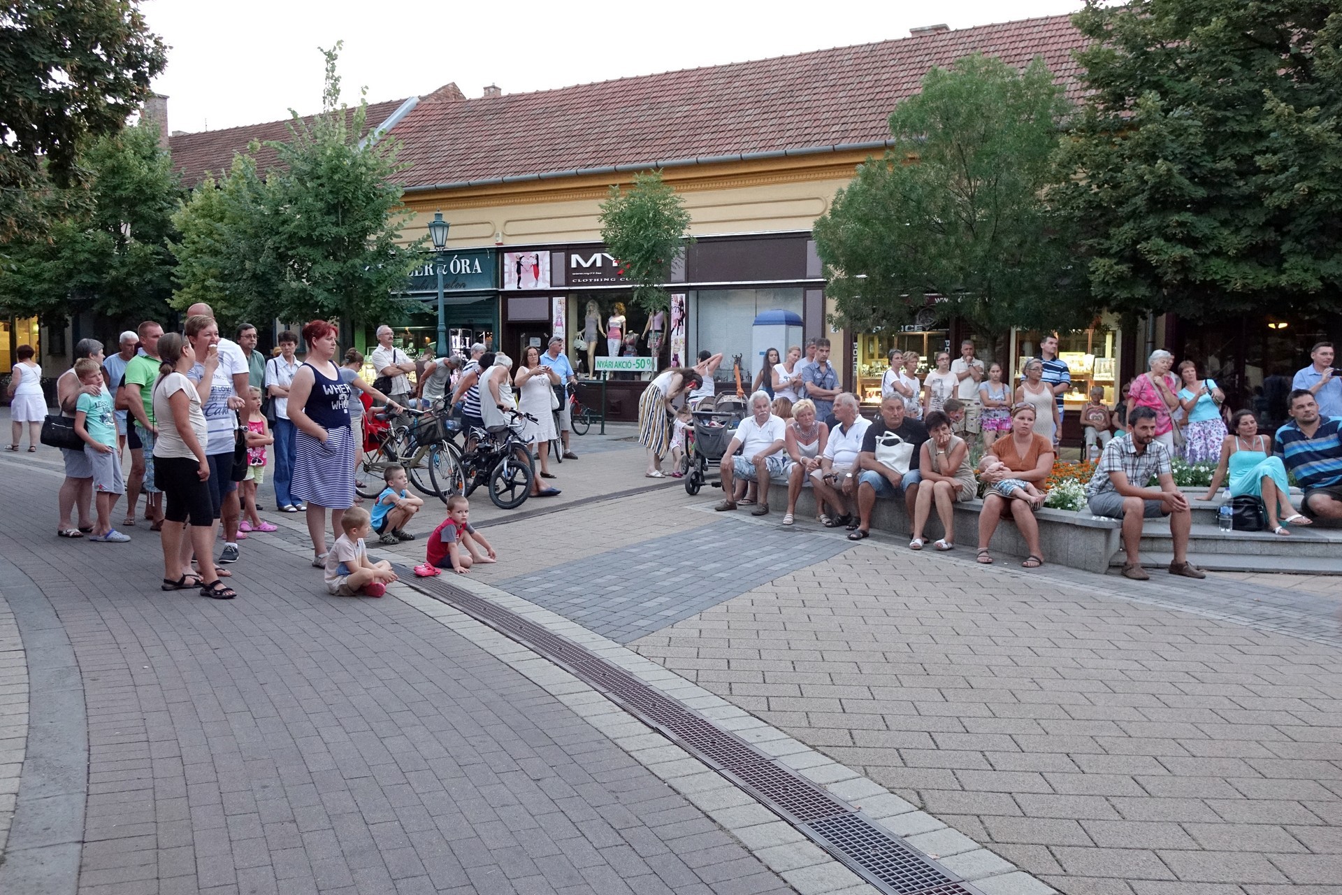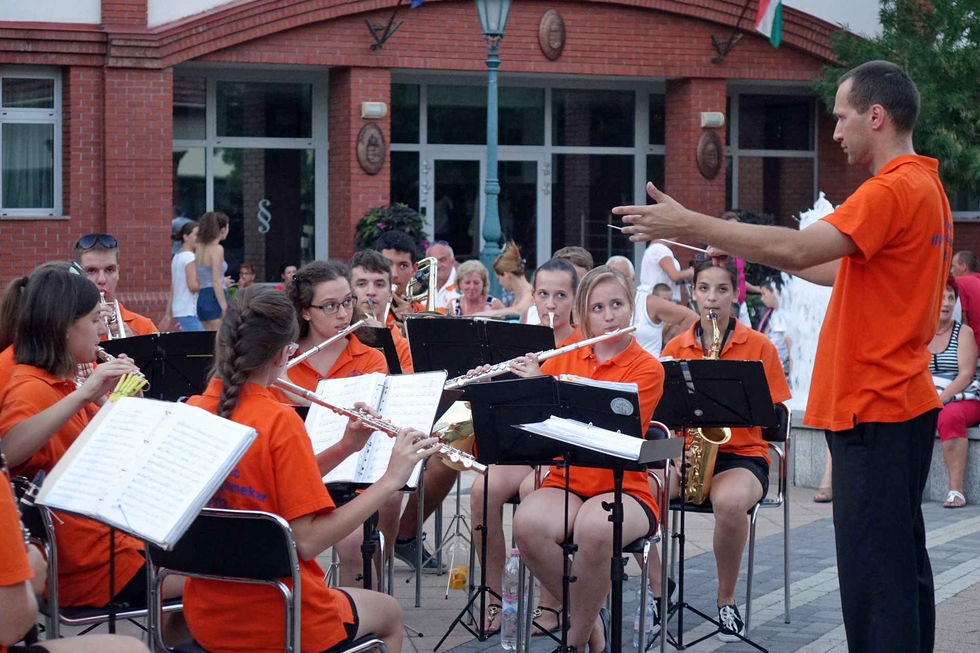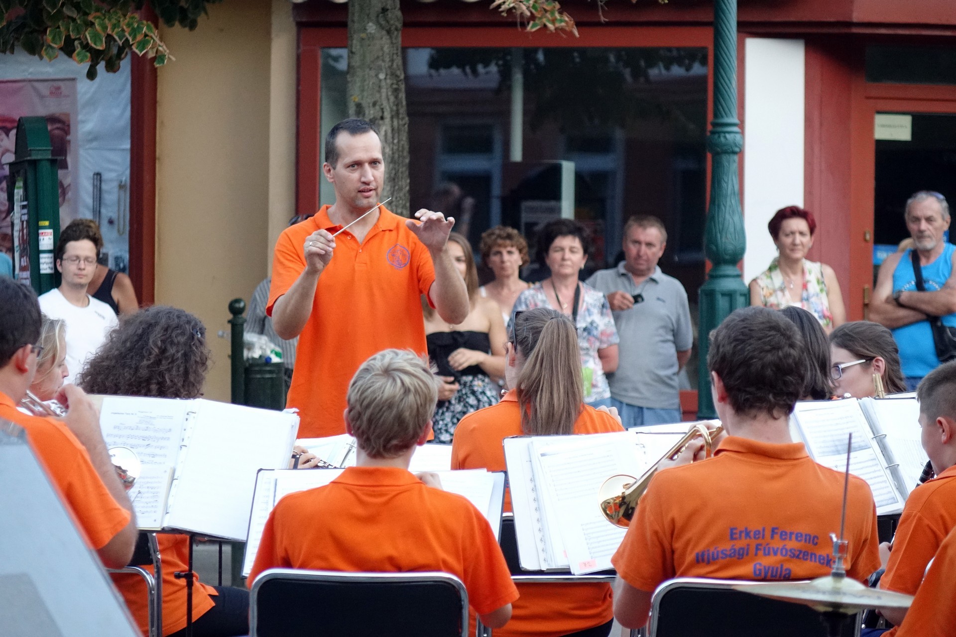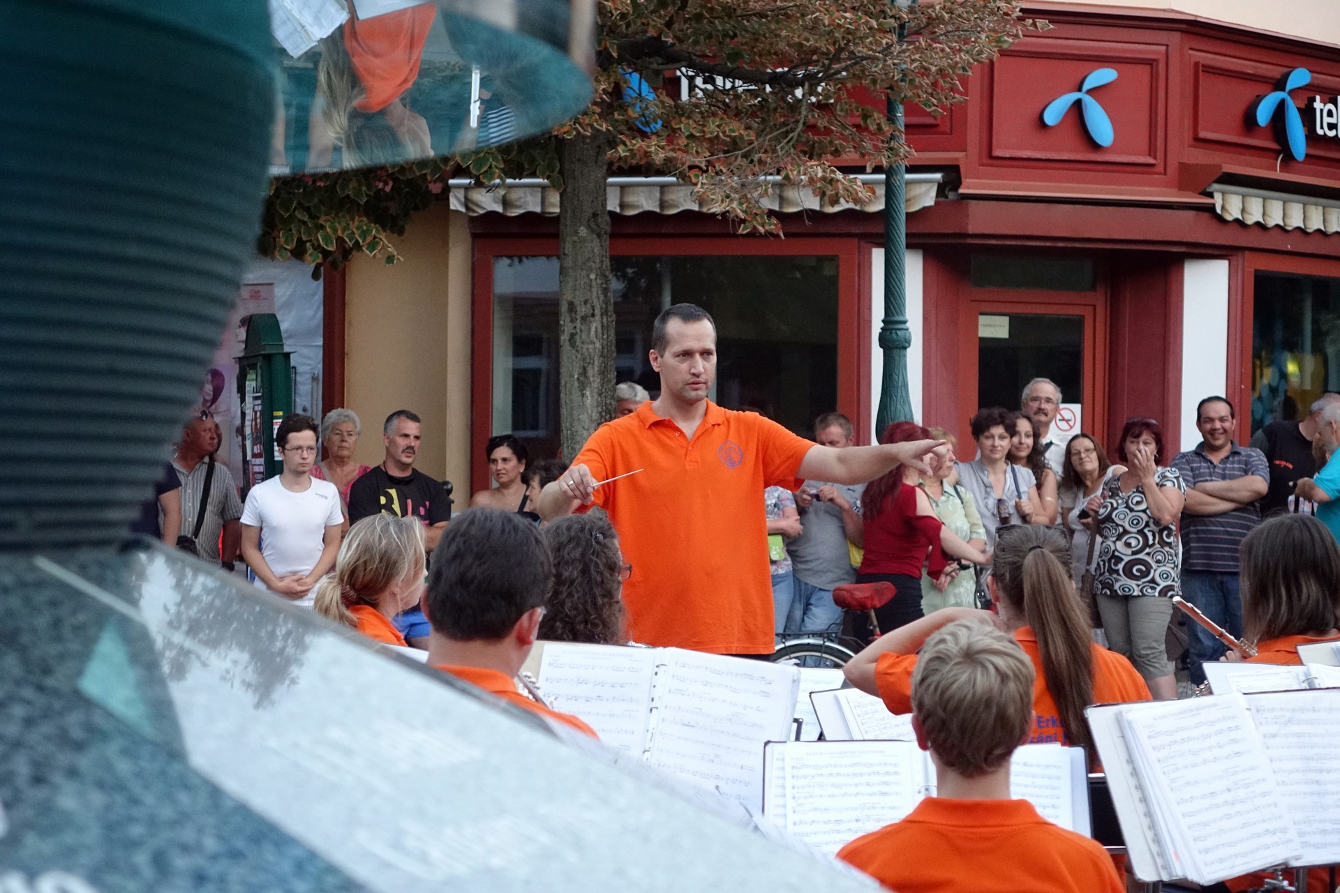 Panaszkodhatunk a nagy kánikulára, a szárazság előnye azonban, hogy nem kell tartani attól, hogy leszakad az ég, és egy nagyzenekar is bátran kiköltözhet a sétáló utcára, hogy szórakoztassa a nagyérdeműt. Ahogy a botcsinálta fizikusok is mondják az idő-tömeg-tér viszonyáról: Ha jó az idő, lemegy a tömeg a térre. Az Erkel Ferenc Ifjúsági Fúvószenekar tömegvonzása pedig hatott.
