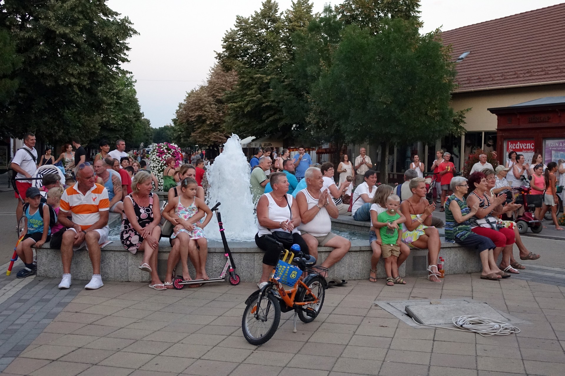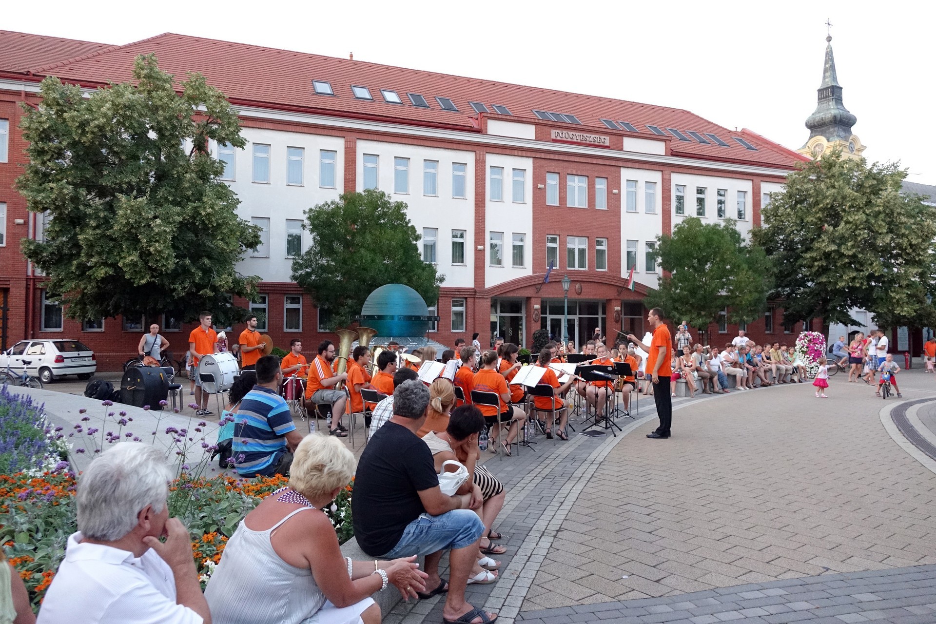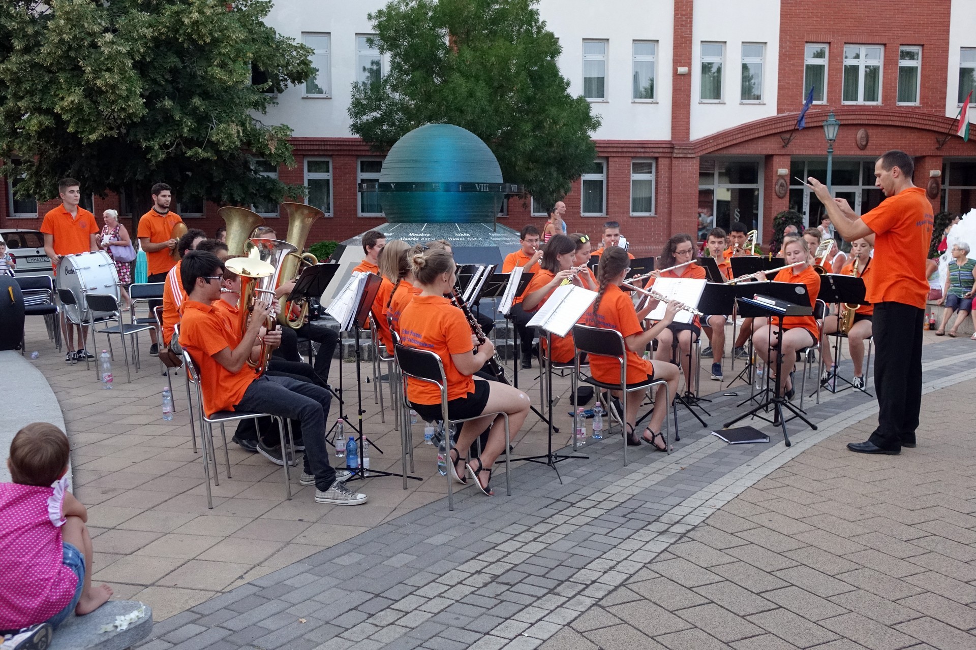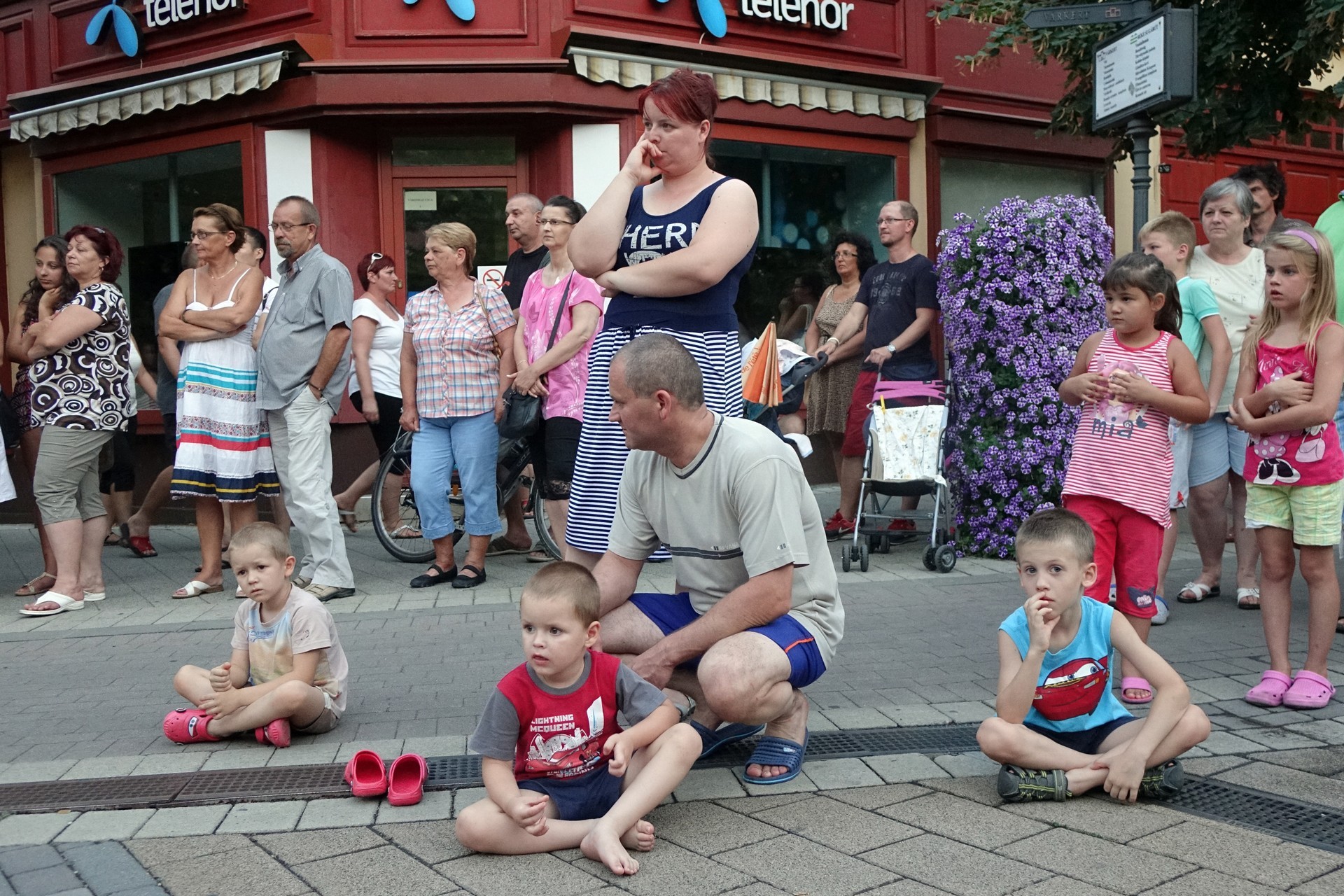Panaszkodhatunk a nagy kánikulára, a szárazság előnye azonban, hogy nem kell tartani attól, hogy leszakad az ég, és egy nagyzenekar is bátran kiköltözhet a sétáló utcára, hogy szórakoztassa a nagyérdeműt. Ahogy a botcsinálta fizikusok is mondják az idő-tömeg-tér viszonyáról: Ha jó az idő, lemegy a tömeg a térre. Az Erkel Ferenc Ifjúsági Fúvószenekar tömegvonzása pedig hatott.