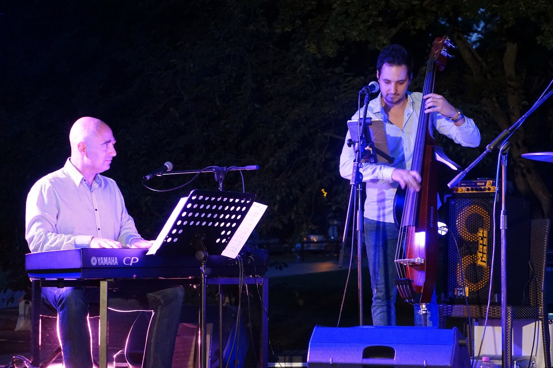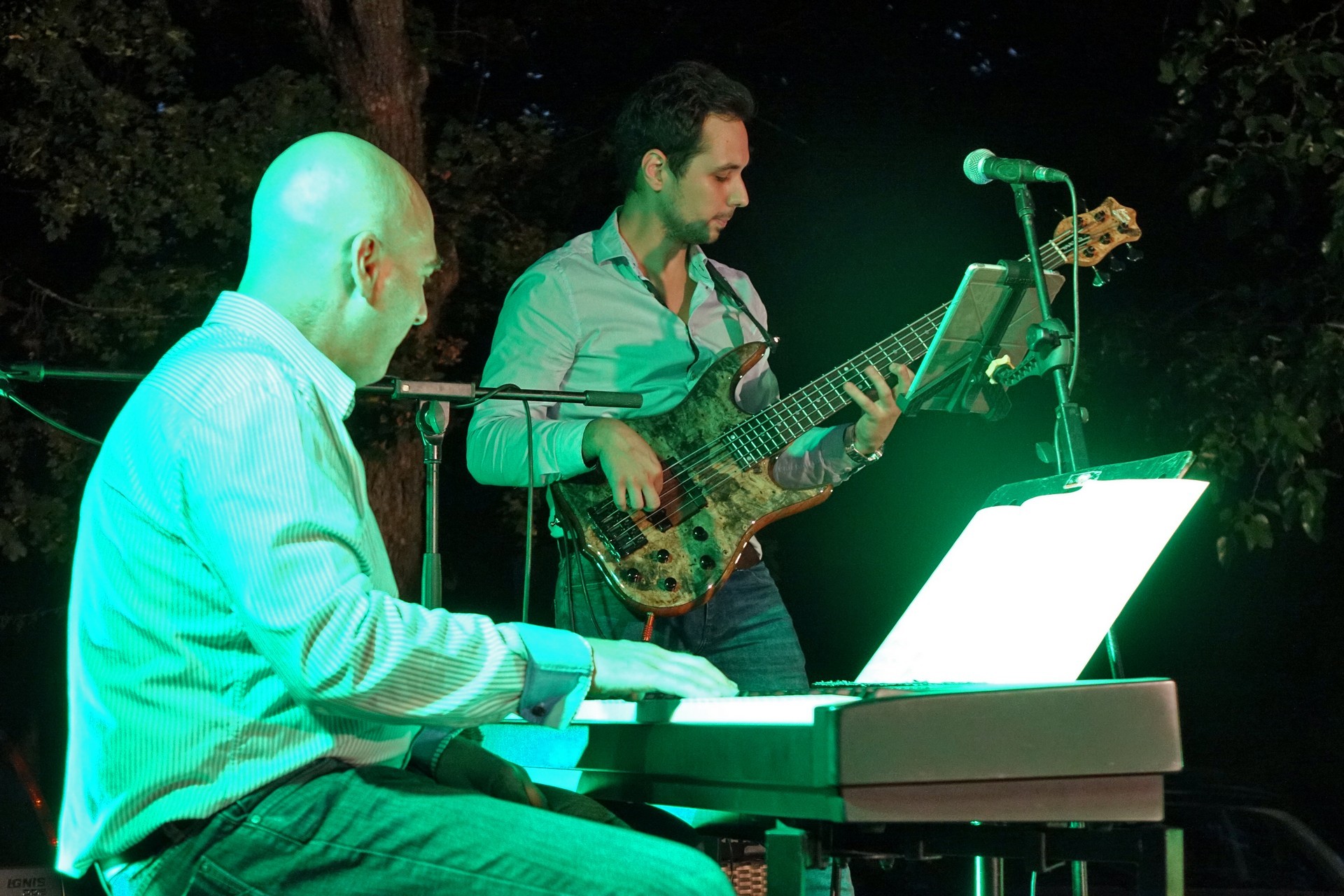 A közönség pedig velük is tartott, műfajról műfajra, dallamról dallamra, hangulatról hangulatra, közben a technikai bravúrokon is rendre elámulva. Fonay Tibor játszi könnyedséggel váltogatta a bőgőt gitárra, Czibere József pedig olyan bravúrosan játszott maga köré telepített hangszerarzenálján, ahogy arra még világviszonylatban is csak kevesen képesek.