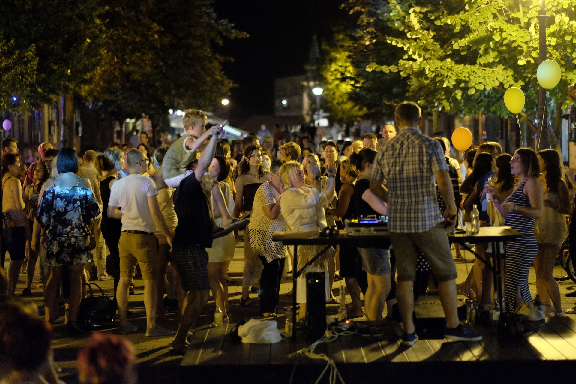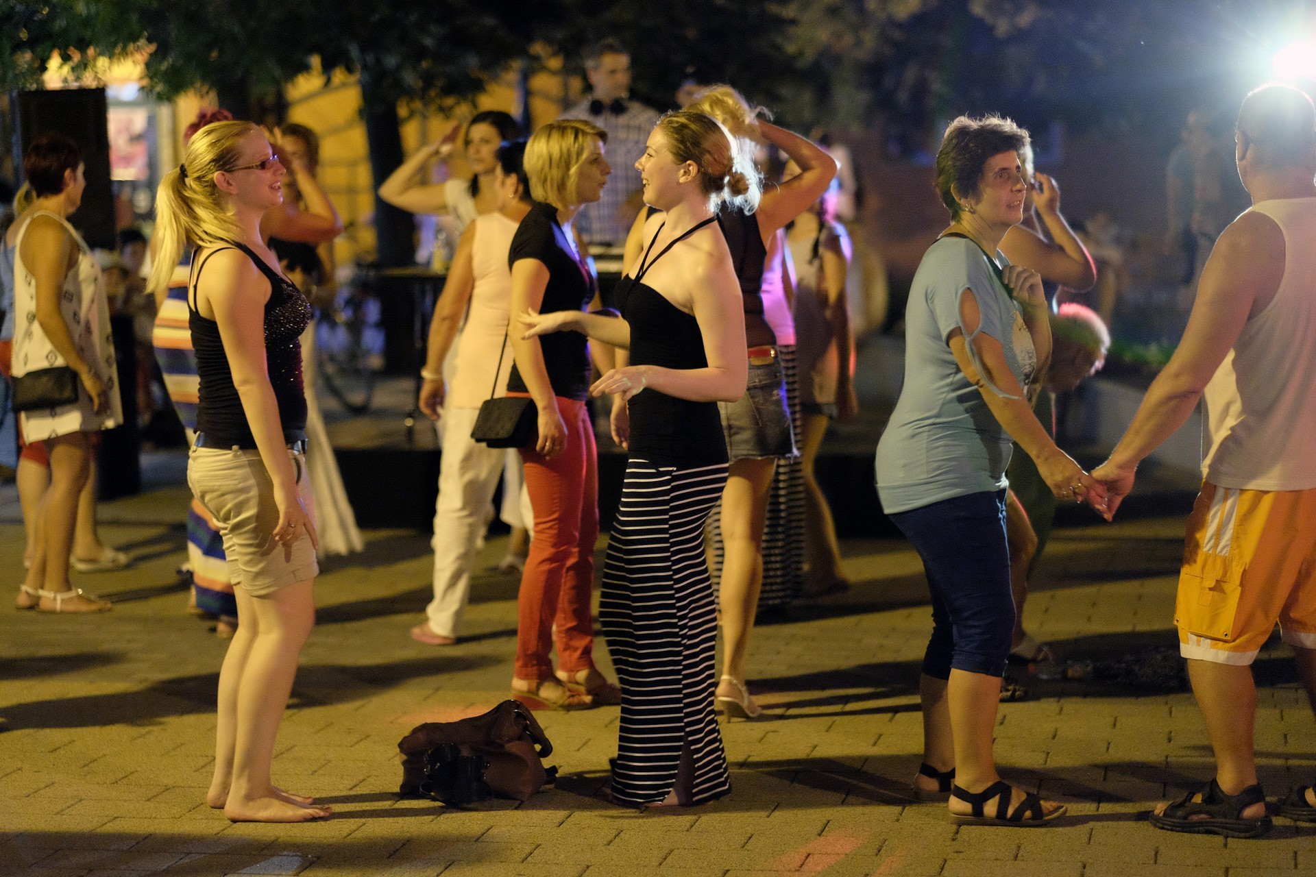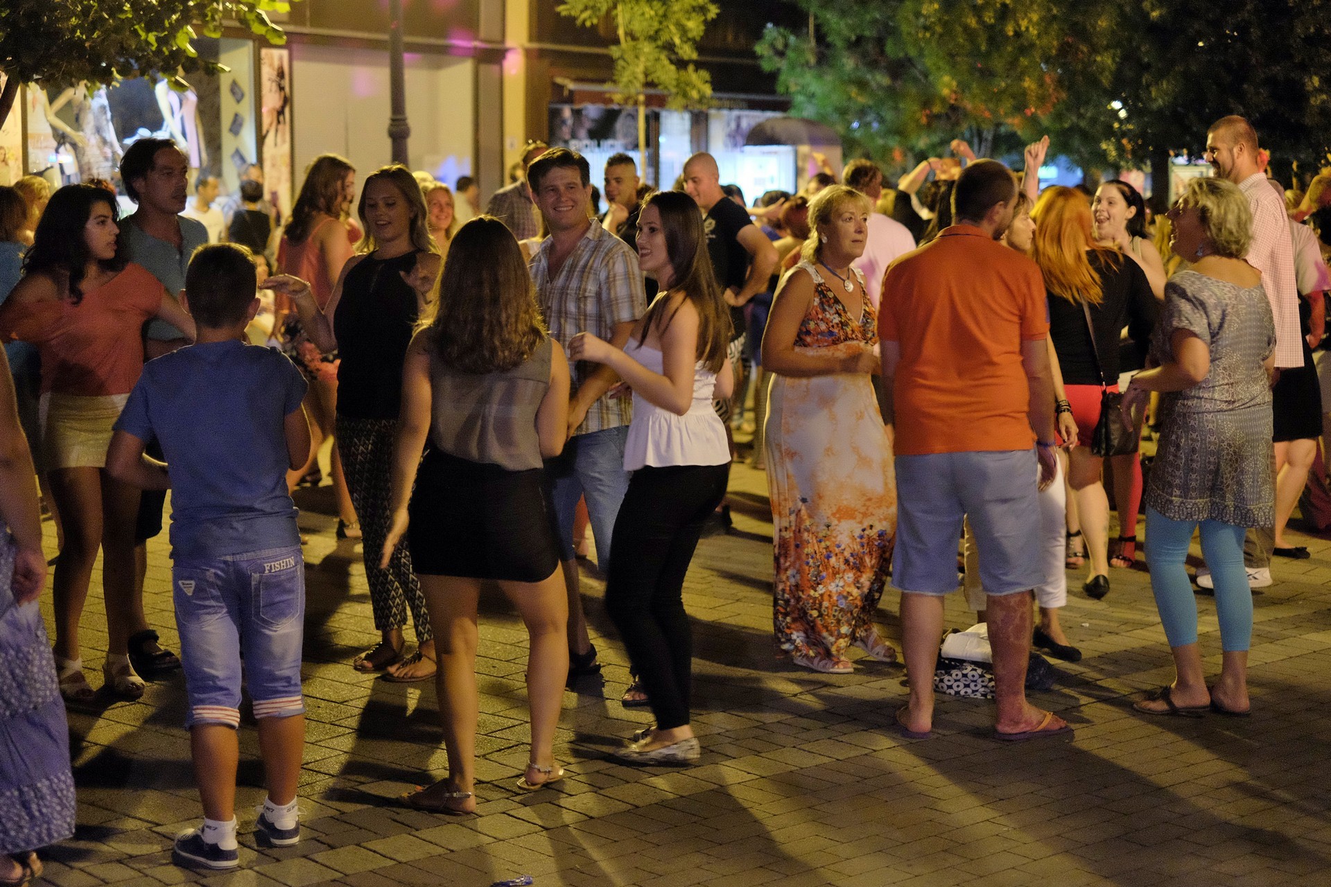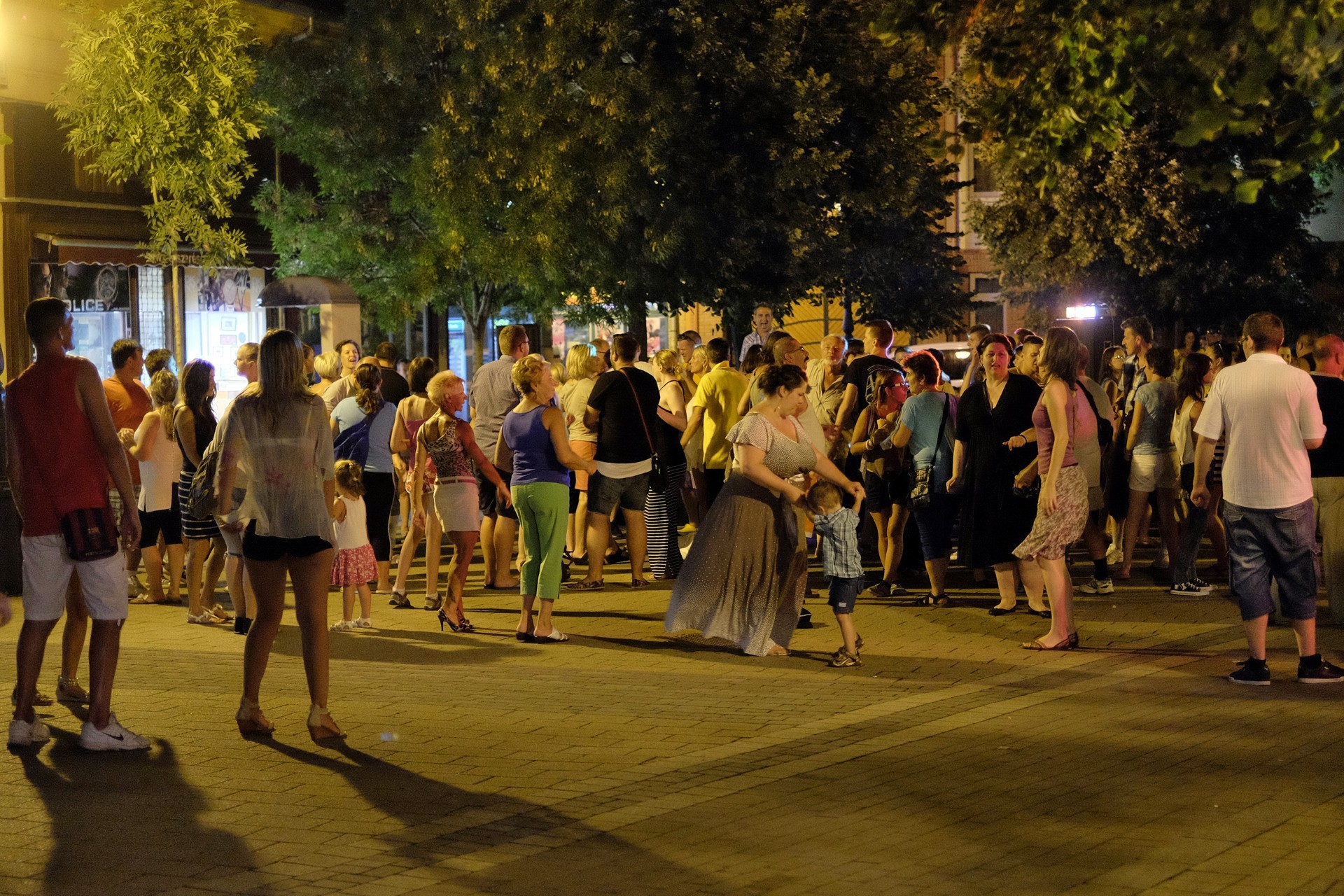 A Gyulai Korzó programsorozatában szinte mindenféle szórakoztató zenének helye van, amelyik tapsolásra, vagy táncra bírja a népeket. Augusztus 15-én este a Világóránál az utóbbi volt a cél, slágerparti invitálta mozgásra a táncos lábakat. A sétáló utcán DJ Ravasz, vagyis Ravasz Attila pörgette a lemezeket – vagy pontosabban szólva keverte az MP3-akat –, hogy a ’70-es, ’80-as és ’90-es évek örökzöld slágereivel bírja ugra-bugrára a jelenlévőket. Bár aznap még tartott a harmadfokú hőségriasztás, a kánikula kicsit csendesedett, és egy-két távoli villámlás is riogatta a népeket, de hiába. Aki már belevetette magát a táncba, nem tágított, és ménkűvel sem lehetett elijeszteni a jó hangulatú, „trópusi” utcabuliról.