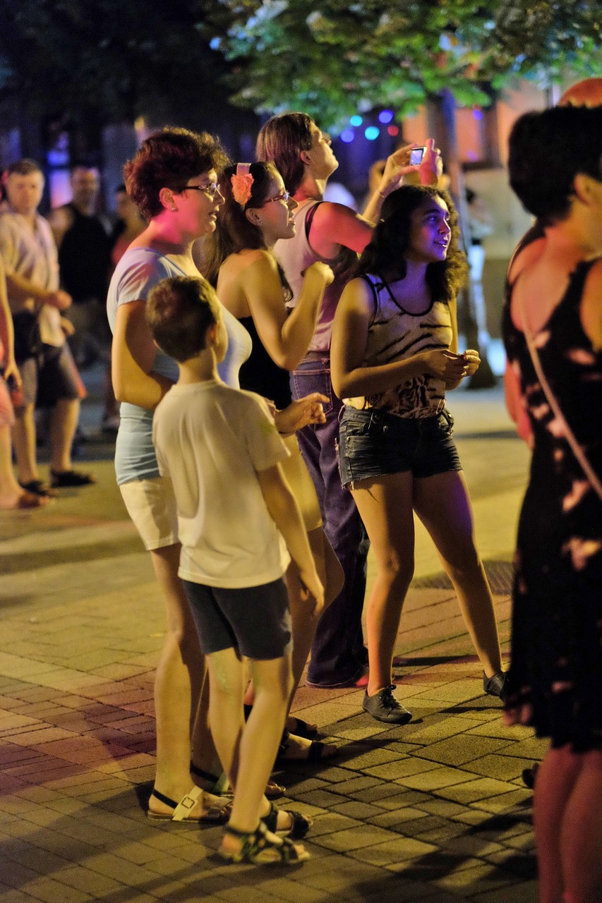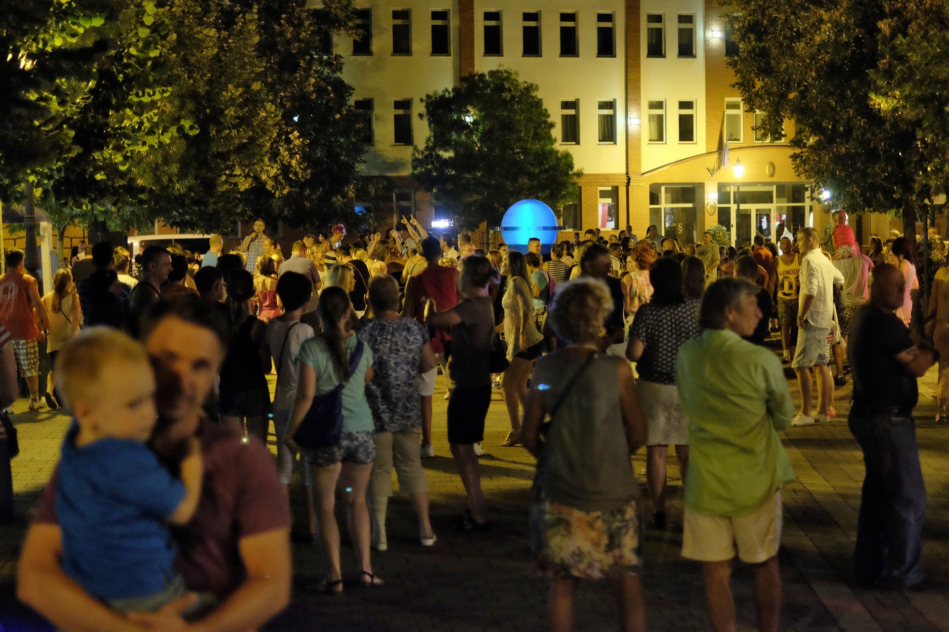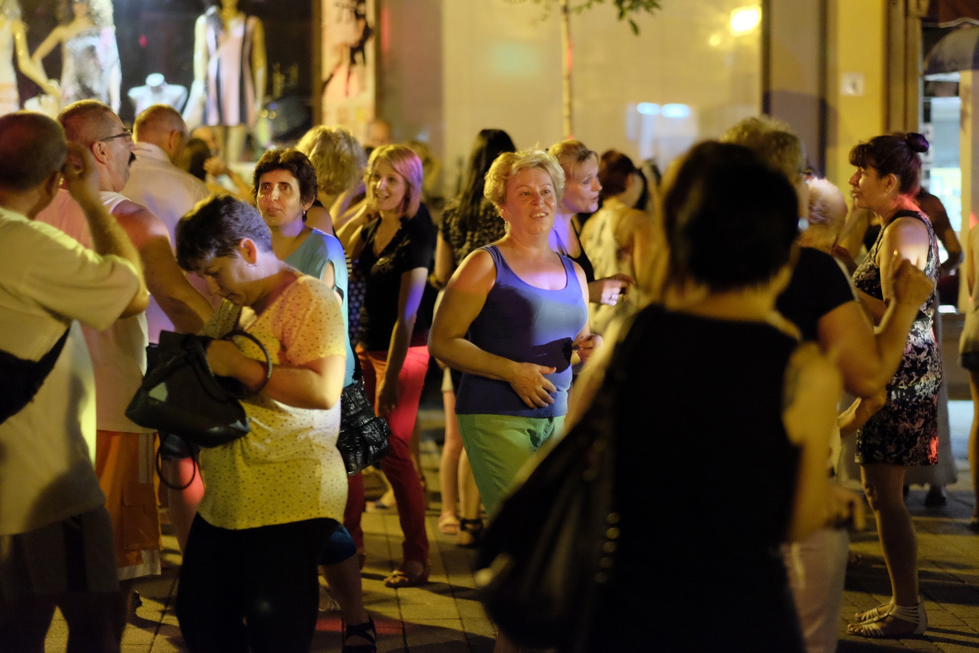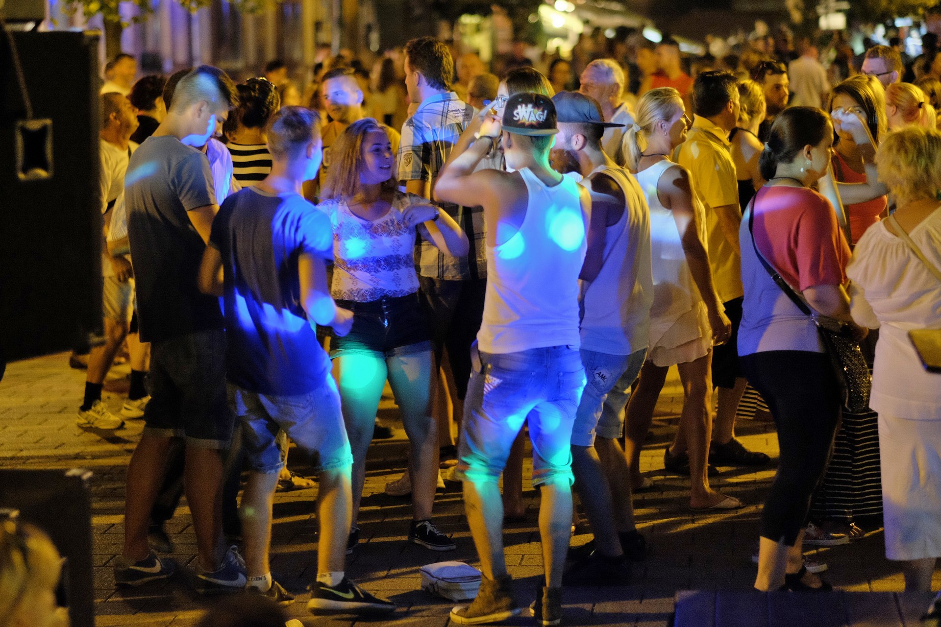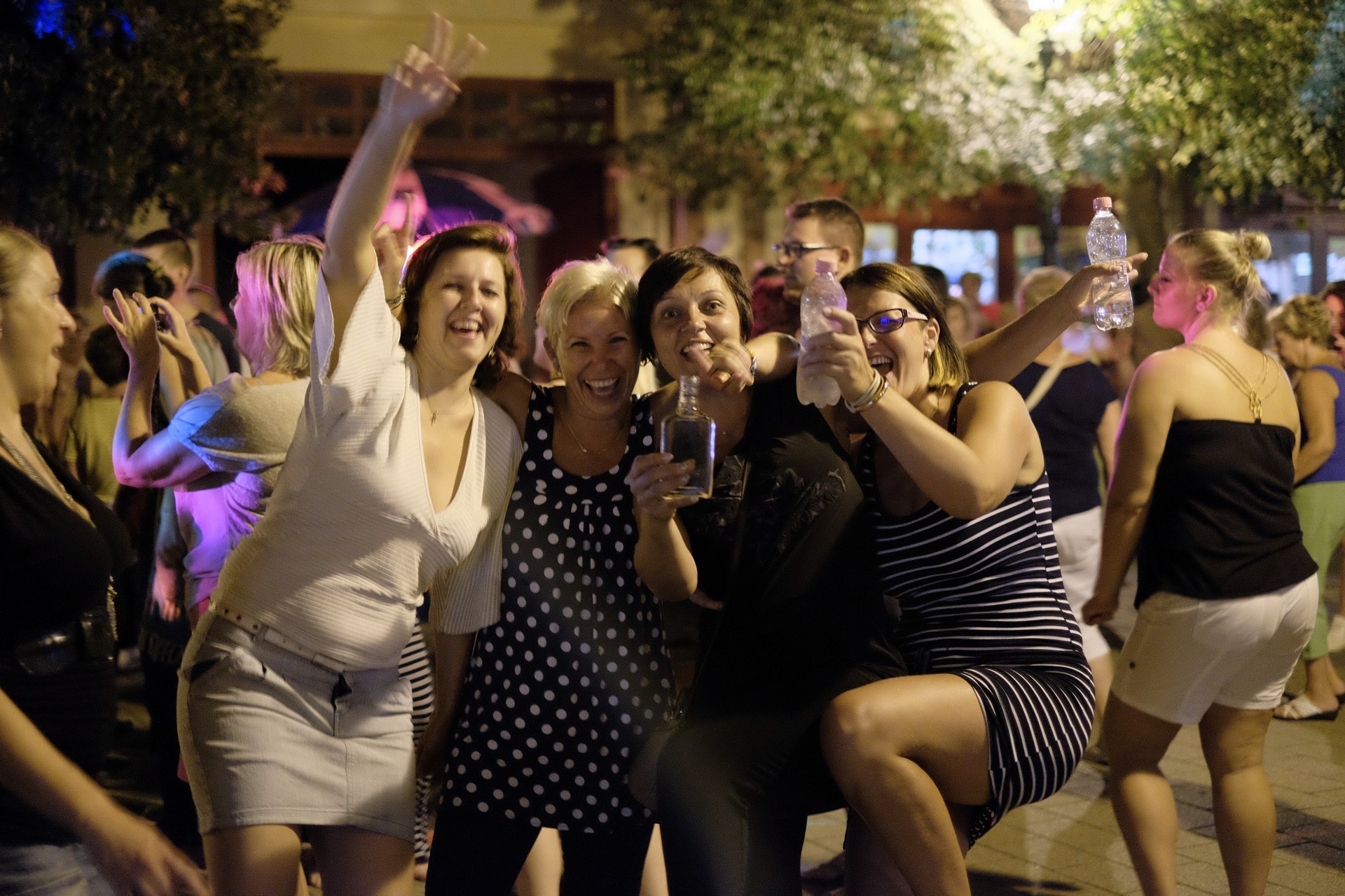 A Gyulai Korzó programsorozatában szinte mindenféle szórakoztató zenének helye van, amelyik tapsolásra, vagy táncra bírja a népeket. Augusztus 15-én este a Világóránál az utóbbi volt a cél, slágerparti invitálta mozgásra a táncos lábakat. A sétáló utcán DJ Ravasz, vagyis Ravasz Attila pörgette a lemezeket – vagy pontosabban szólva keverte az MP3-akat –, hogy a ’70-es, ’80-as és ’90-es évek örökzöld slágereivel bírja ugra-bugrára a jelenlévőket. Bár aznap még tartott a harmadfokú hőségriasztás, a kánikula kicsit csendesedett, és egy-két távoli villámlás is riogatta a népeket, de hiába. Aki már belevetette magát a táncba, nem tágított, és ménkűvel sem lehetett elijeszteni a jó hangulatú, „trópusi” utcabuliról.