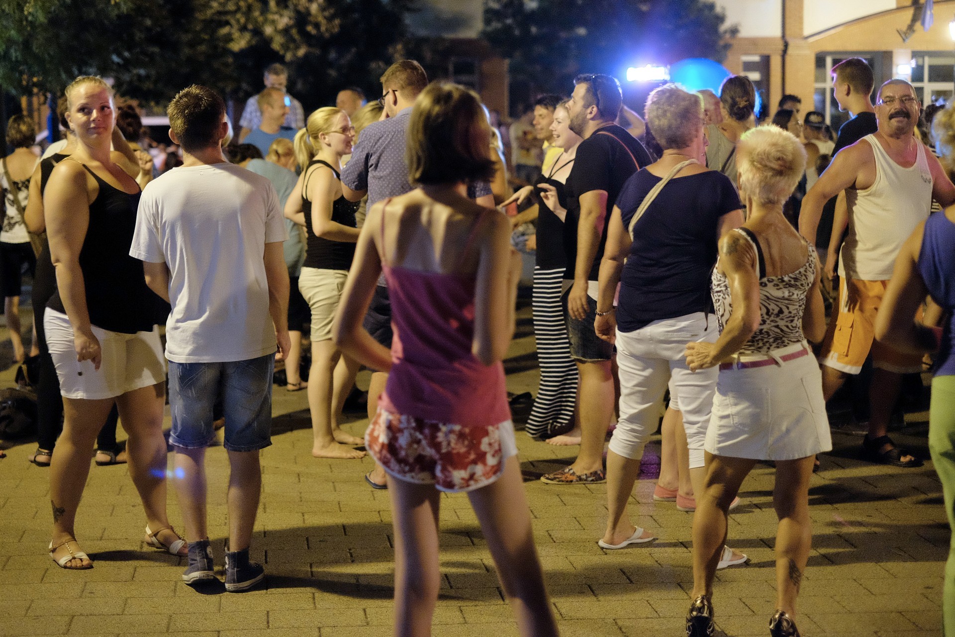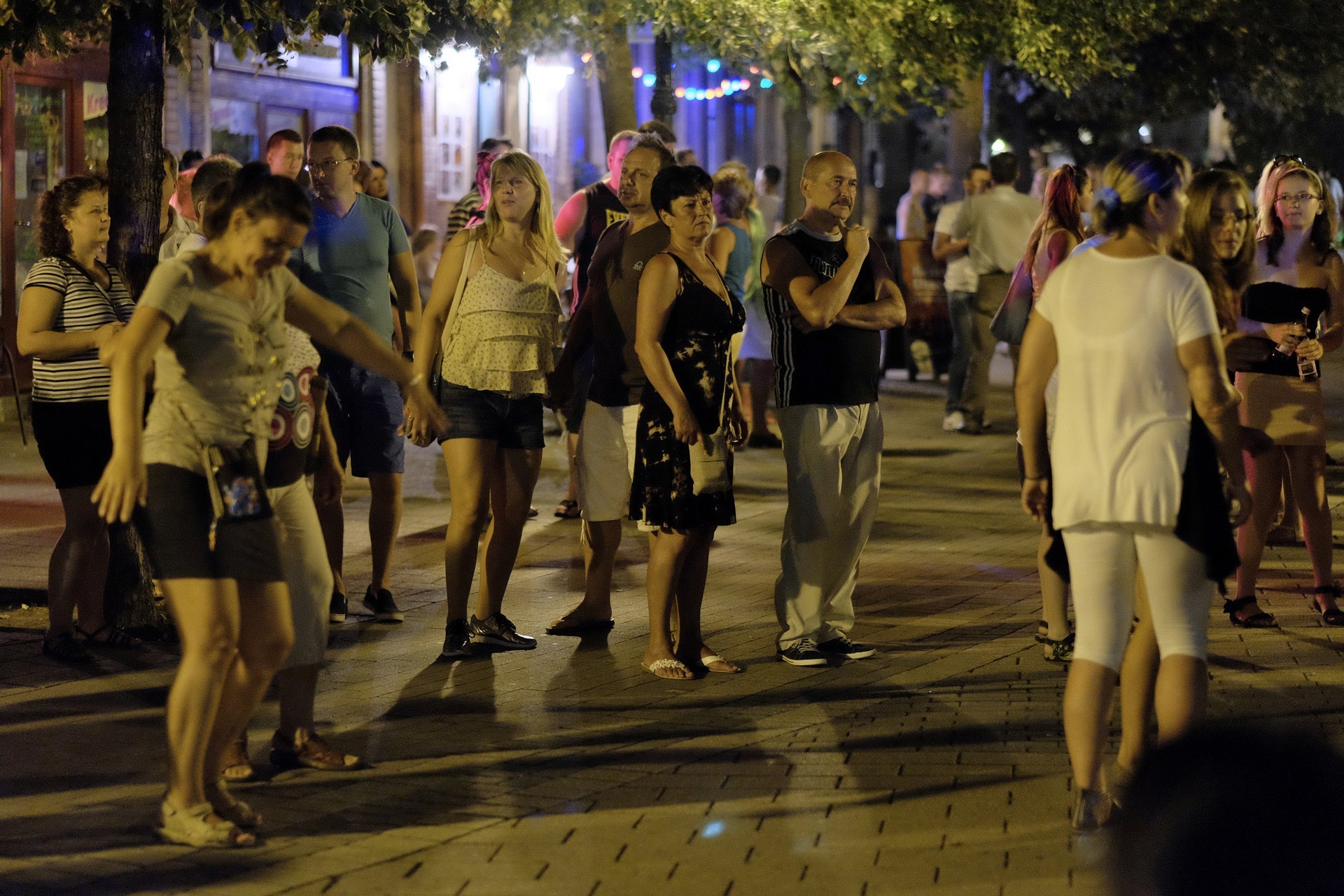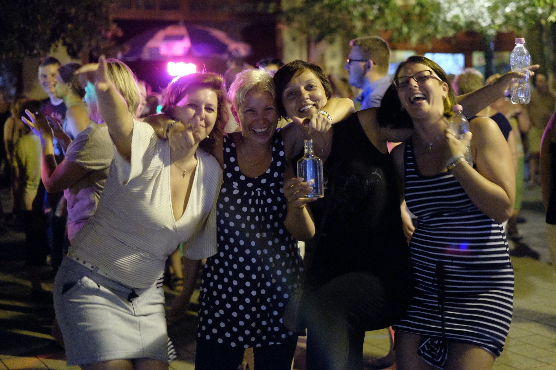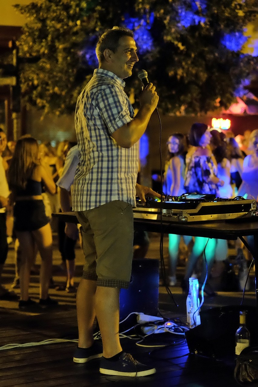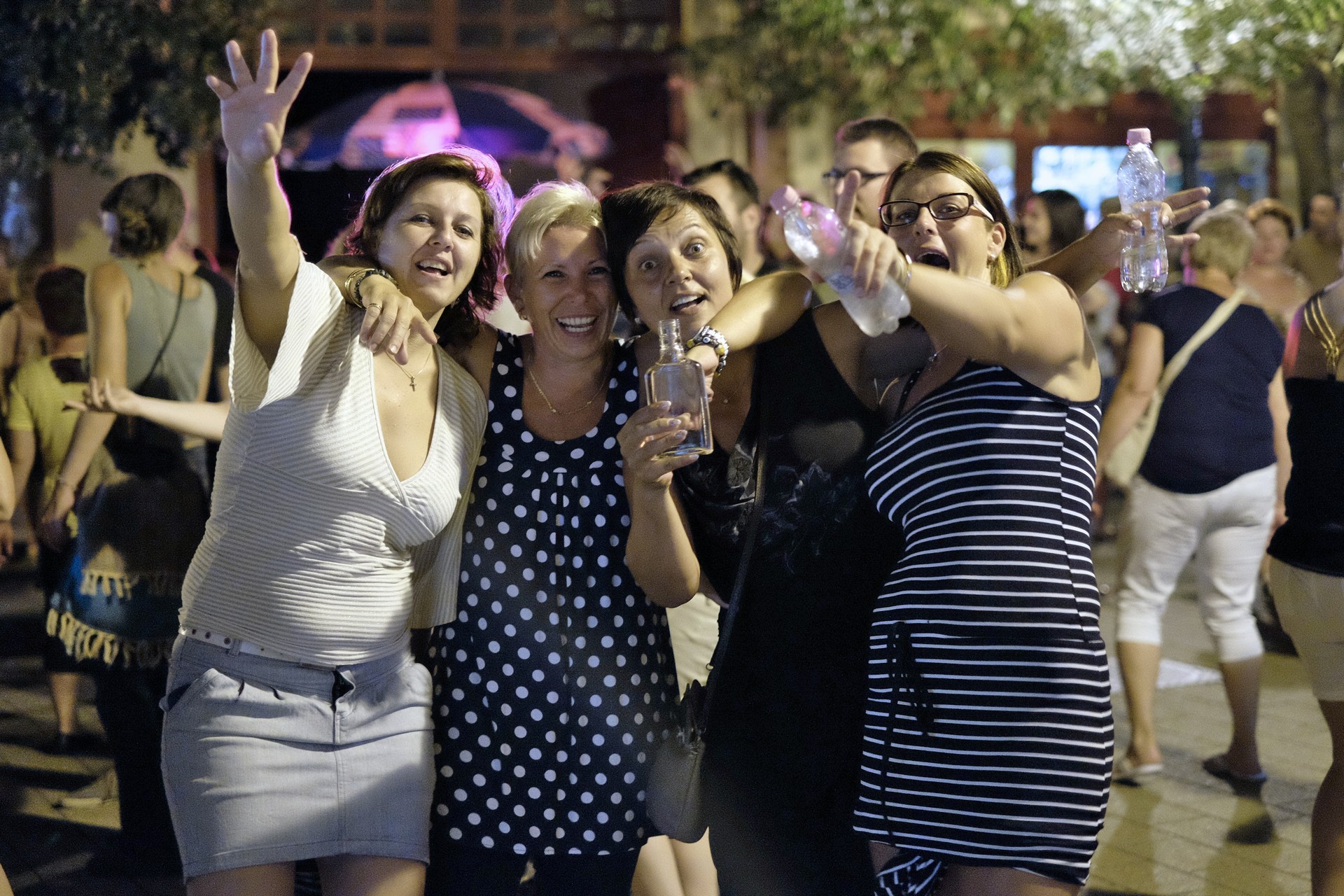A Gyulai Korzó programsorozatában szinte mindenféle szórakoztató zenének helye van, amelyik tapsolásra, vagy táncra bírja a népeket. Augusztus 15-én este a Világóránál az utóbbi volt a cél, slágerparti invitálta mozgásra a táncos lábakat. A sétáló utcán DJ Ravasz, vagyis Ravasz Attila pörgette a lemezeket – vagy pontosabban szólva keverte az MP3-akat –, hogy a ’70-es, ’80-as és ’90-es évek örökzöld slágereivel bírja ugra-bugrára a jelenlévőket. Bár aznap még tartott a harmadfokú hőségriasztás, a kánikula kicsit csendesedett, és egy-két távoli villámlás is riogatta a népeket, de hiába. Aki már belevetette magát a táncba, nem tágított, és ménkűvel sem lehetett elijeszteni a jó hangulatú, „trópusi” utcabuliról.
