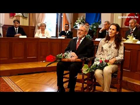 dr. erdész ádám a mezőberényi városháza dísztermében vette át az elismerést Siklósi István polgámestertől
