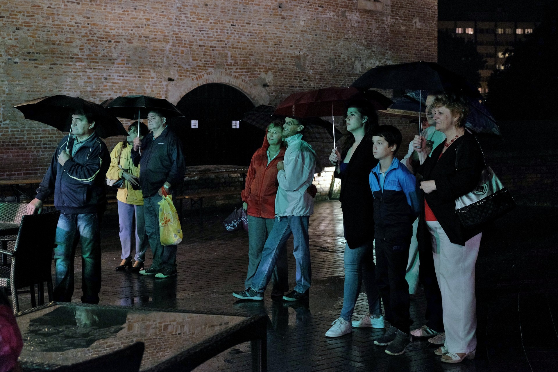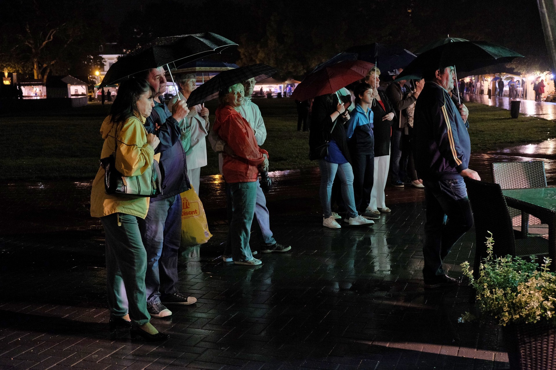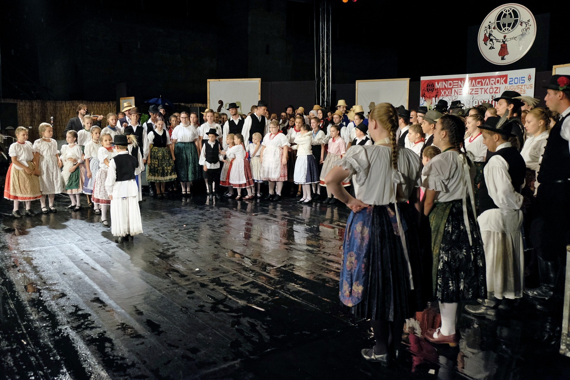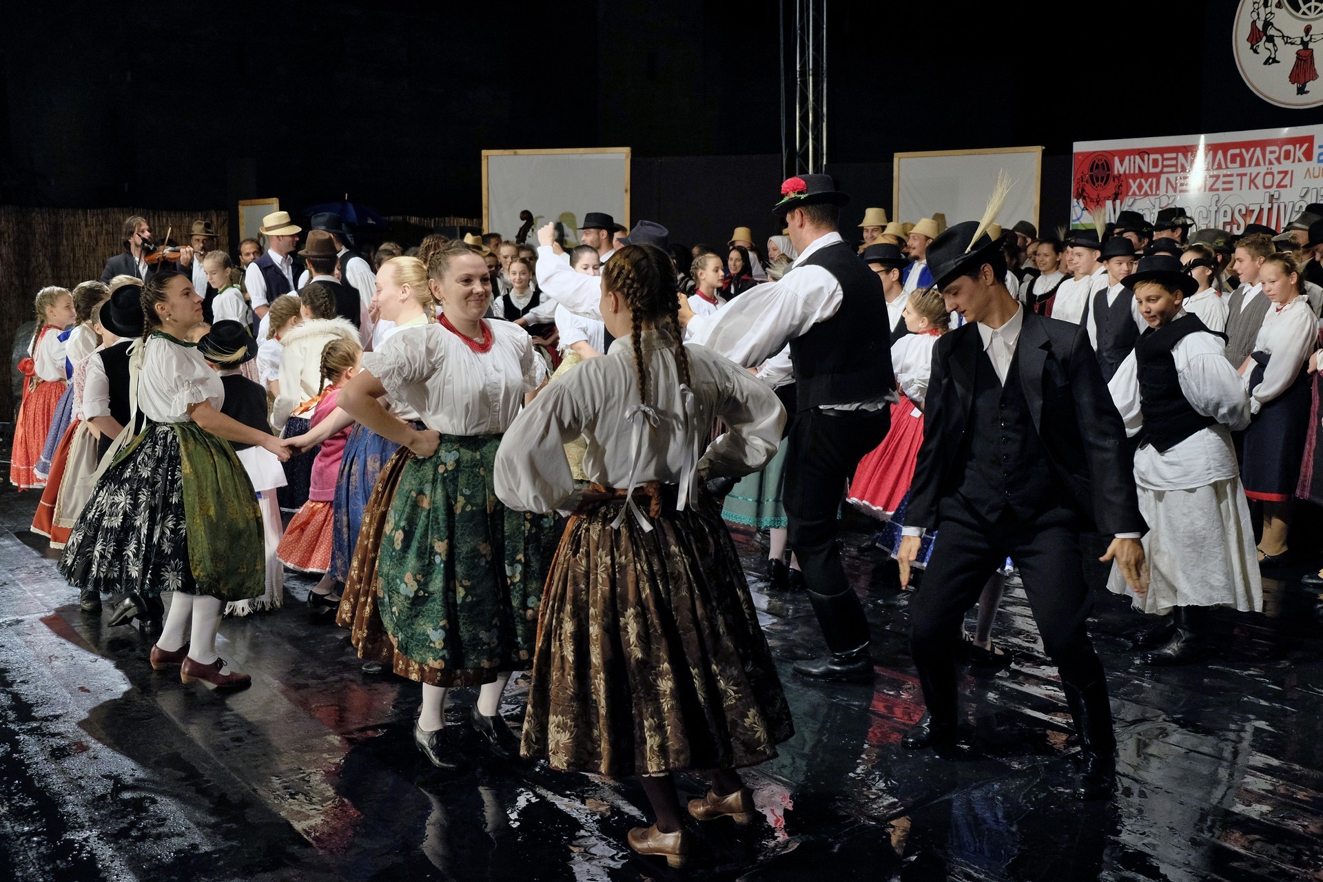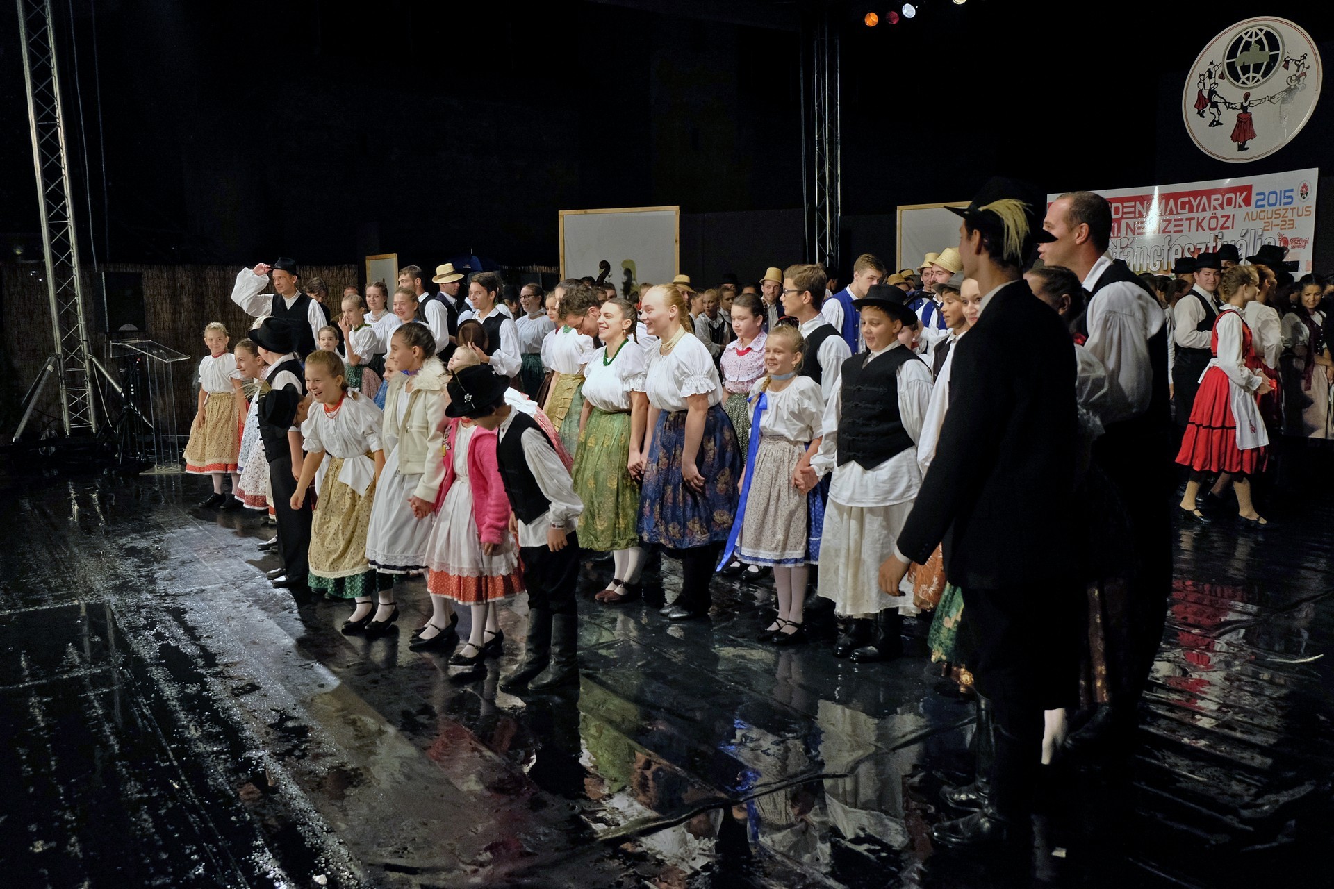 A tószínpadon zajló hivatalos megnyitó alatt sűrűn szemerkélő eső erős szitálásra váltott át, de a nézőtéren ülő és a partoldalban álldogáló, esernyőkkel és esőkabátokkal felszerelt több száznyi érdeklődő nem tágított, várta a táncokat. A színpad azonban hiába volt fedett, a zápor oldalról is támadott, és egyre több csordogáló patak és tócsa alakult ki a színteret betöltő, népviseletbe öltözött táncoshad lába alatt.