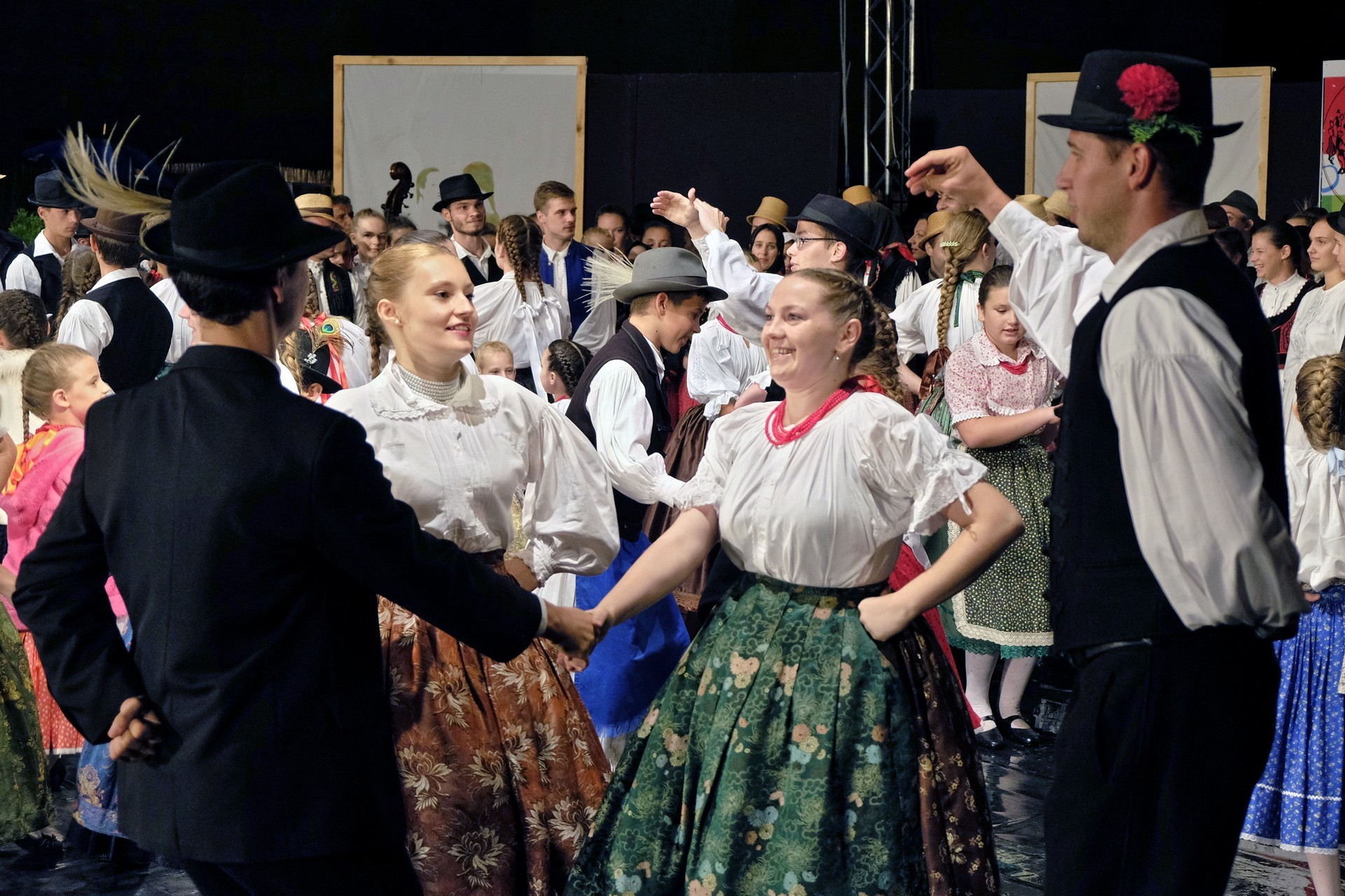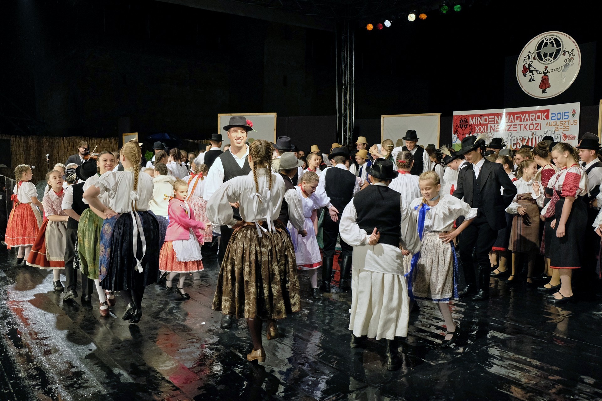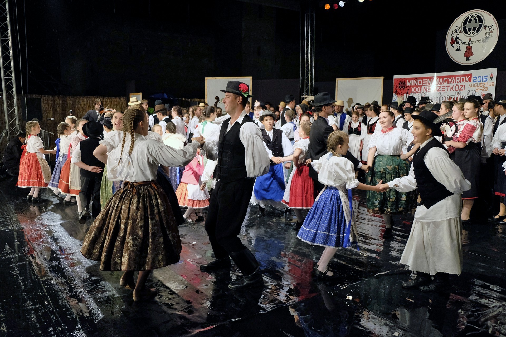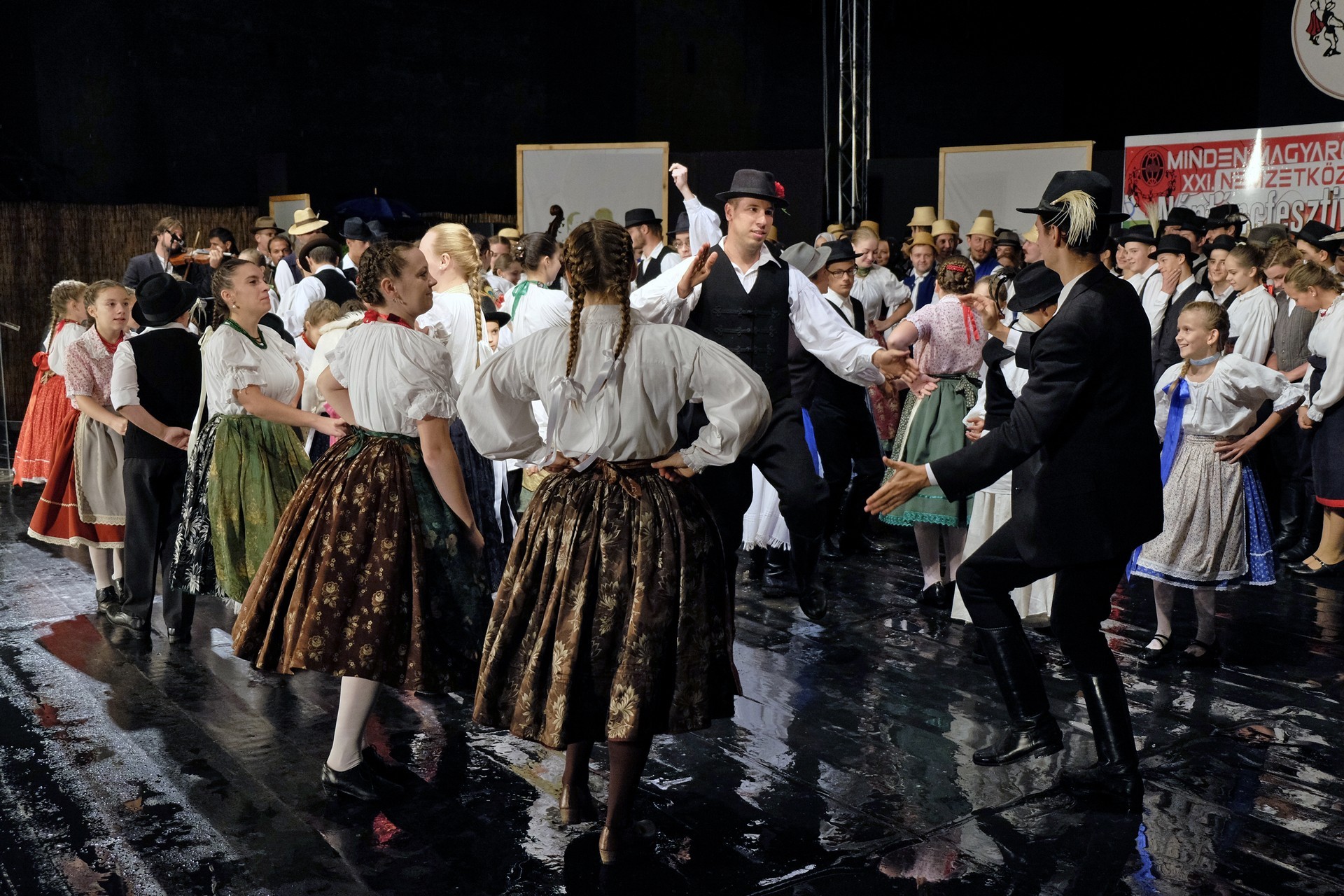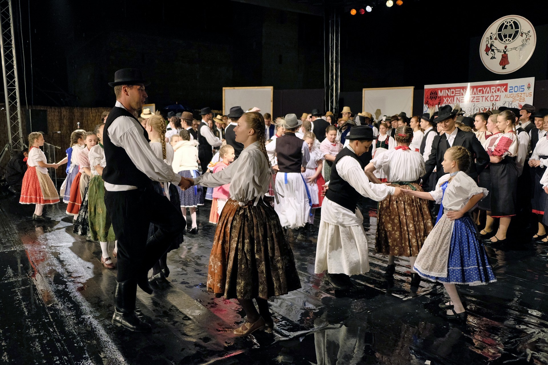 Táncház a részt vevő magyar táncegyüttesek közreműködésével. Helyszín: várkert